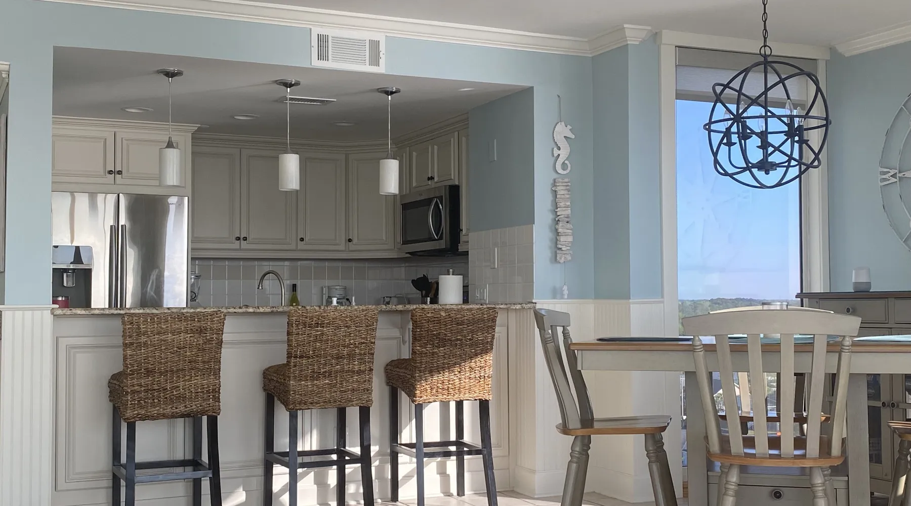 ONE OCEAN PLACE 1101! is a BeachFront Luxury condominium hi on the Grand Strand! It’s all about the view from the huge wraparound balcony on the north corner of this oceanfront condo. ONE OCEAN PLACE 1101! Is a completely updated luxurious beachfront condominium with a huge wrap around corner balcony for a panoramic unobstructed coastline view! Enjoy 60 miles of sandy beaches, 8 miles south of Myrtle Beach amusement and water parks, water sports, fishing and world class dining in the Seafood Capital of South Carolina. In addition to live entertainment theaters, exciting nightlife, outlet malls, specialty boutiques, flea markets and shops, play the best golf courses in the south, plus tour historic sites. Enjoy this large spacious oceanfront condo located between Garden City Pier to the south and Surfside Pier to the north. The large family room of ONE OCEAN PLACE 1101! has a huge 65” HD Smart TV, plenty of room for family gatherings, sofa converts to queen bed, ample seating for 9 in dining area. Each of the 3 master bedrooms in ONE OCEAN PLACE 1101! have super comfortable mattresses, bedding and en suite bath! The oceanfront master has a new plush pillow top king mattress, 42” HD Smart TV with sliding door access to the huge wraparound balcony. Wake up to the sights and sounds of the ocean! This master has a large en suite bath with walk in closet, plenty of cabinets for storage, tiled shower, double sink vanity and granite countertop. The second master has a queen bed, bright updated new bedding, Large 50” HD Smart TV, tiled tub/shower combination en suite bath with large granite top vanity. The third master suite has a queen bed, with fun beachy bedding, 42” HD Smart TV, huge tiled shower en suite bath with large granite top vanity. ONE OCEAN PLACE 1101! is the perfect destination for your family vacation- 2 pools, 2 hot tubs, covered parking, GATED ENTRANCE, with 24 hour Security. The beach is just 12 steps away off the pool deck! The GRAND family room of ONE OCEAN PLACE 1101! has 2 walls of FLOOR to CEILING TINTED WINDOWS to capture the spectacular panoramic view of the Atlantic Ocean (north to south). It opens with multiple doors to a GRAND balcony equipped with a dining table and outdoor seating. The kitchen has high end stainless appliances, granite countertops, large family size refrigerator. Plus the kitchen is stocked with plenty of cooking gadgets for those nights when you want to stay in. In addition, the laundry closet has a full size Samsung front load washer and dryer. Murrells Inlet is the seafood capital of South Carolina as well as a laid back family friendly beach community. Enjoy the updates and high end finishes we have in our beach home, ONE OCEAN PLACE 1101!, our home can be your home at the beach! Bed Linens, bath towels, WiFi and 2 parking passes for the secure gated parking garage are provided to our guest as a courtesy at no additional charge. Guest are also provided with a starter pack of toilet tissue, additional paper products and toiletries are guest responsibility. One Ocean Place is an oceanfront residential condominium building in a family friendly neighborhood, we are a great destination for a generational family vacation. Groups of unrelated singles are subject to owner approval. ONE OCEAN PLACE 1101! requires a completed signed rental agreement, copy of current photo ID and refundable security deposit. All booking request will receive an electronic rental agreement sent to the email address listed. Rental request expire and subject to cancellation of booking request after 48 hours without completed rental agreement, refundable security deposit and current photo ID presented. We suggest guest purchase travel insurance for any unforeseen circumstances as host is not a licensed insurance provider. The One Ocean Place property has cameras in various outside locations on the property and inside locked supply closet. Dismantling cameras or related camera equipment will result in loss of all monies and immediately vacating property. Vrbo is now using AI technology which may add amenities to the property that are available not on the property but in the general area. We have worked diligently to make this listing as accurate as possible, therefore we continually monitor the listing as is necessary for discrepancies. The nightly rate for One Ocean Place 1101! displayed by VRBO includes VRBO's guest service fee as part of their "up front pricing" initiative. VRBO's guest service fee is a dynamic percentage of the reservation averaging approximately 14% of the nightly rate and cleaning fee. Hosts cannot waive or reduce VRBO's service fee. This service fee is collected by VRBO and retained in full by VRBO and is not set by hosts. If you choose to book One Ocean Place 1101! on VRBO, then VRBO will collect their service fee on your reservation. Like One Ocean Place 1101 on Facebook Follow @oneoceanplace1101 on Instagram