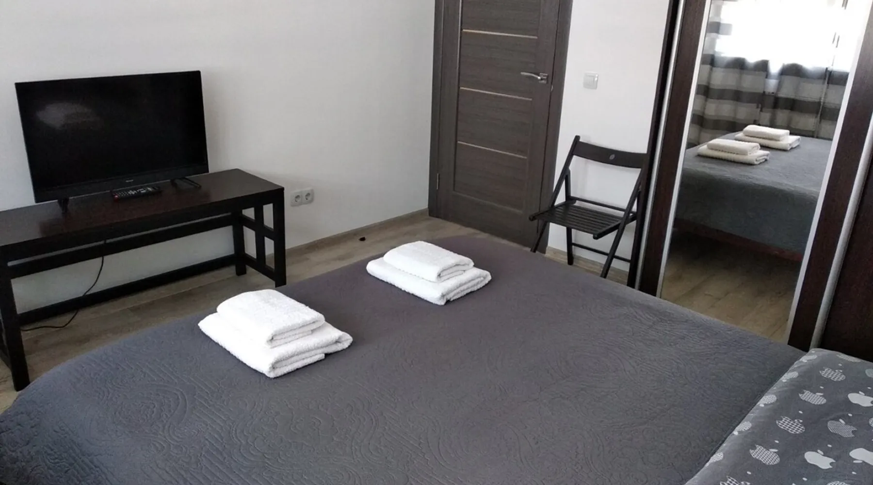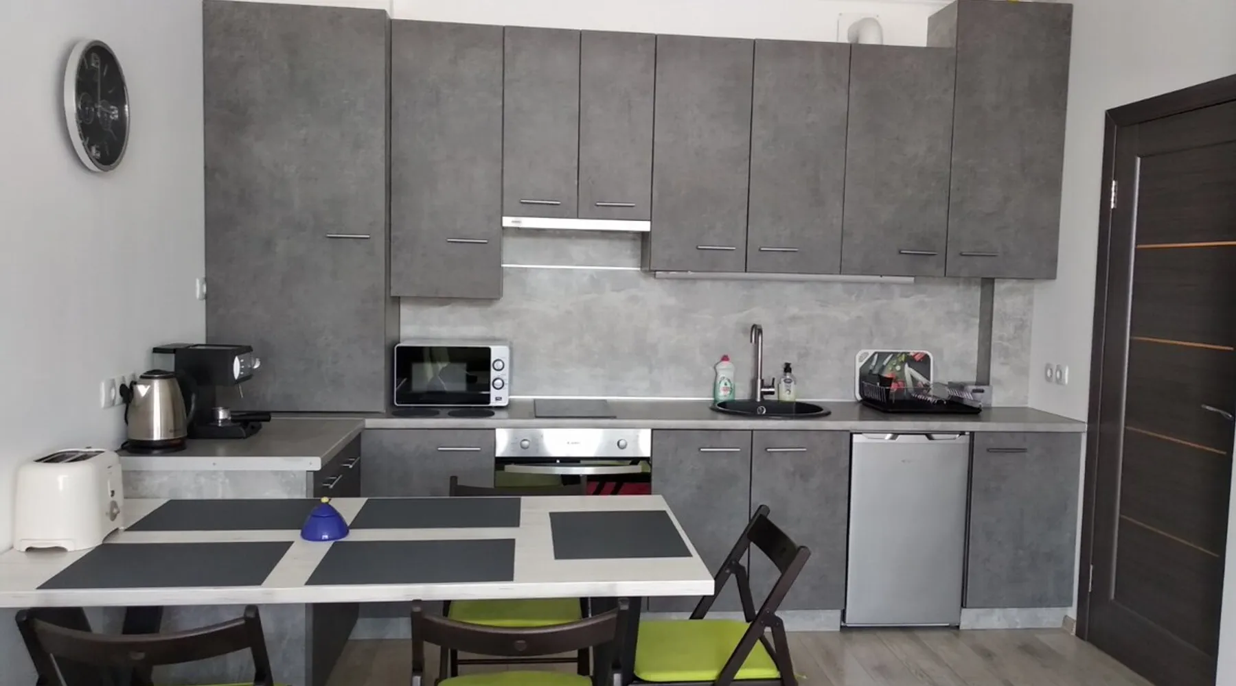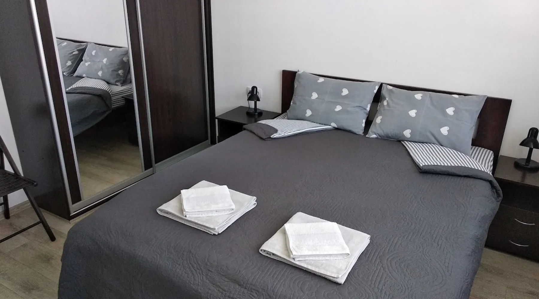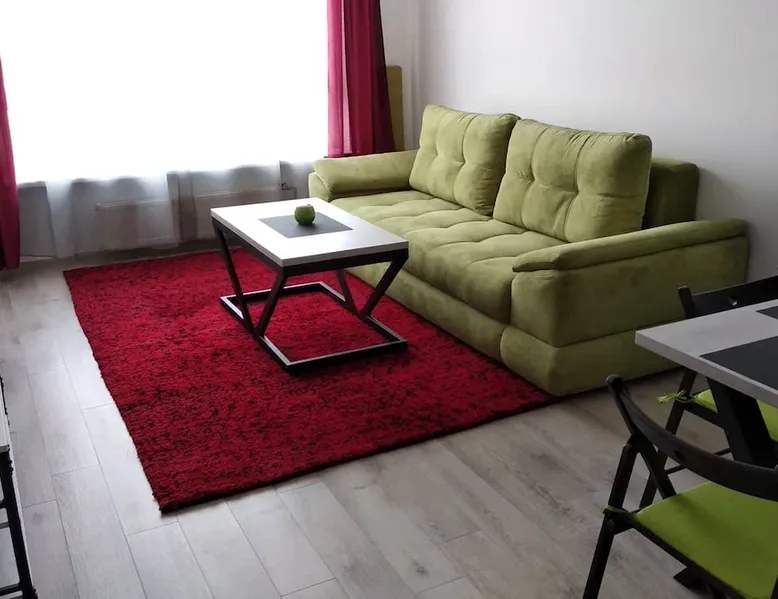 Cozy apartment Fly Up Home is located in the city of Boryspil , 7 km from the international airport of Boryspil,in a prestigious complex with a protected area. On the territory there is a children's playground. Nearby there is a 24-hour supermarket,pizzeria,coffee shop. The staff speaks Bulgarian, English, Russian and Ukrainian languages. Kiev is 34 km from Fly Up Home. We speak your language! The space Fresh renovation 2019,apartment consists of 1 bedroom, living room and bathroom . It has a dining area with a fully equipped kitchen ( stove, oven, microwave,fridge,coffee machine). There is also free wifi and IPTV. Comfortable apartment for 1 to 4 people. You can additionally order a transfer to the airport.