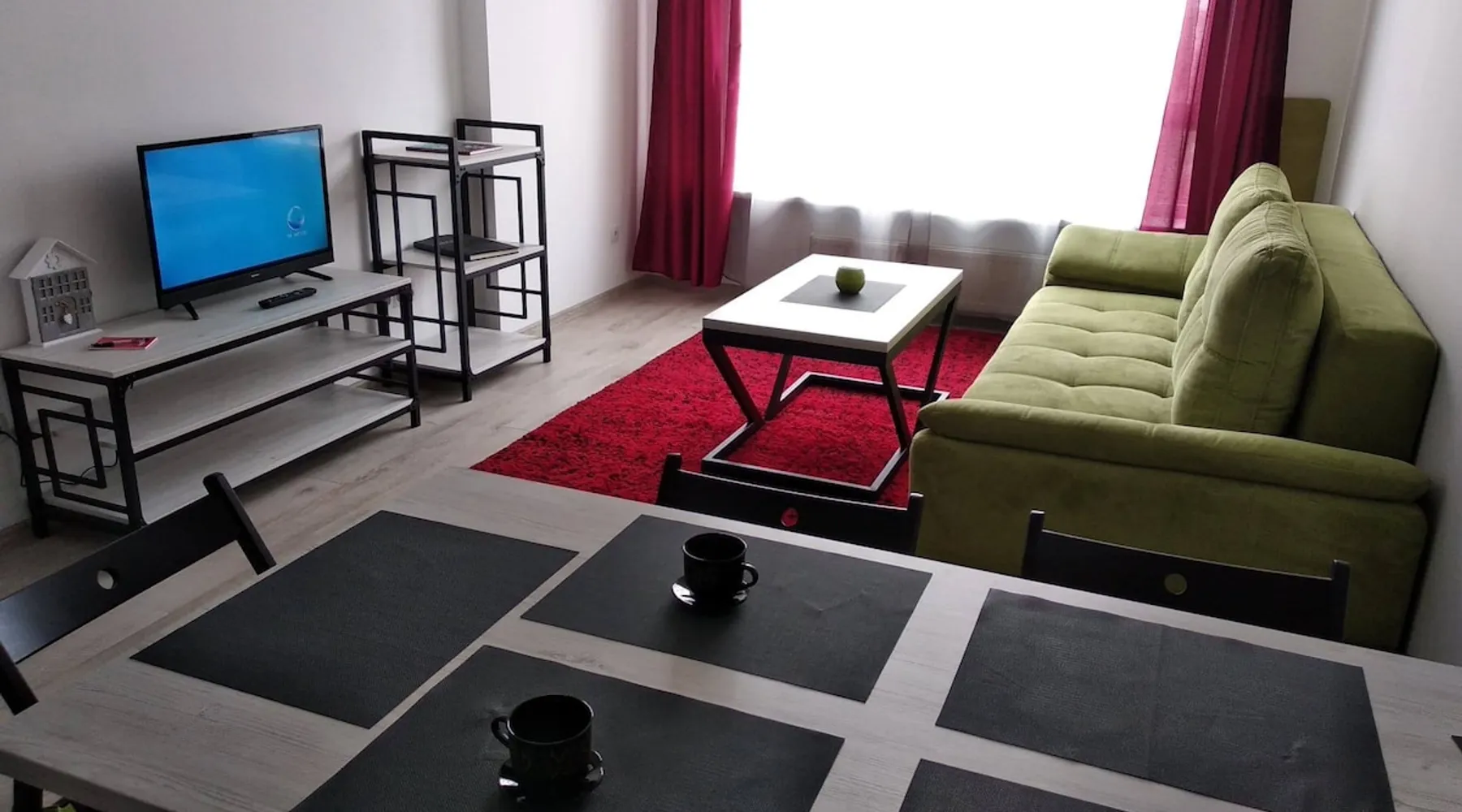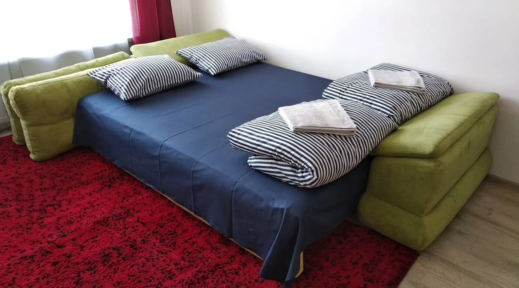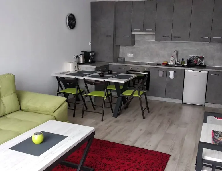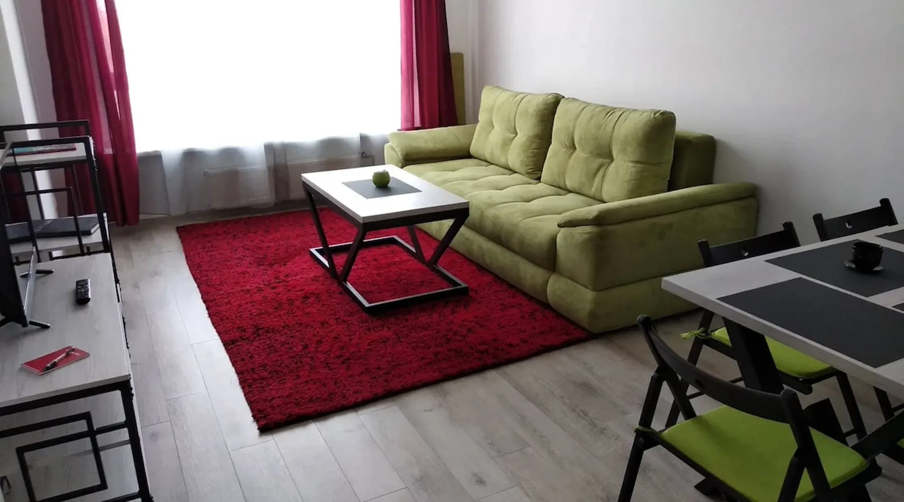 Cozy apartment Fly Up Home is located in the city of Boryspil , 7 km from the international airport of Boryspil,in a prestigious complex with a protected area. On the territory there is a children's playground. Nearby there is a 24-hour supermarket,pizzeria,coffee shop. The staff speaks Bulgarian, English, Russian and Ukrainian languages. Kiev is 34 km from Fly Up Home. We speak your language! The space Fresh renovation 2019,apartment consists of 1 bedroom, living room and bathroom . It has a dining area with a fully equipped kitchen ( stove, oven, microwave,fridge,coffee machine). There is also free wifi and IPTV. Comfortable apartment for 1 to 4 people. You can additionally order a transfer to the airport.