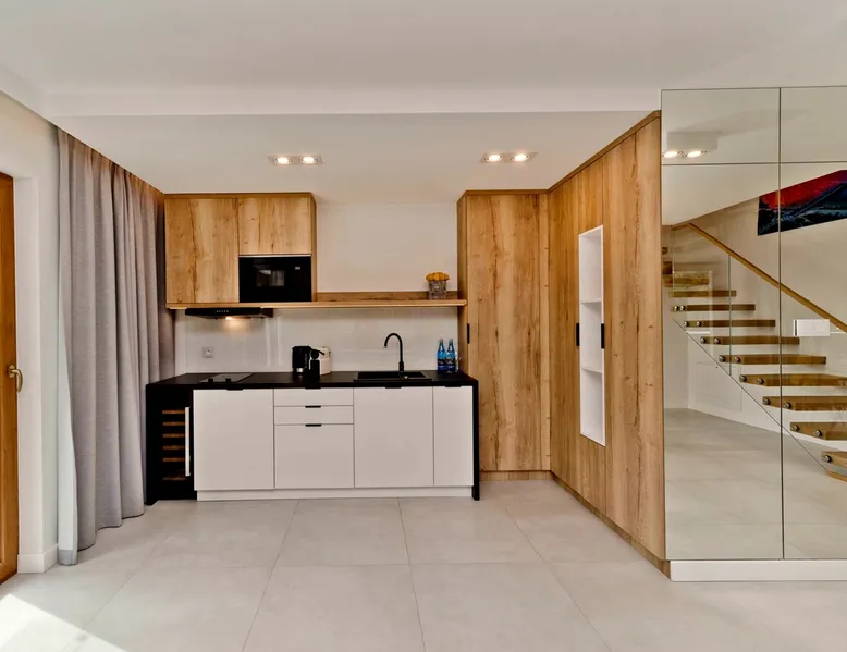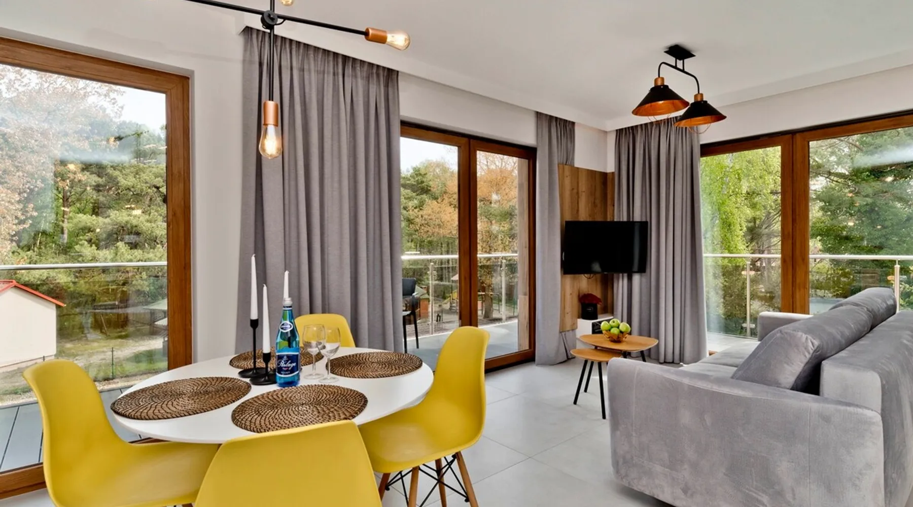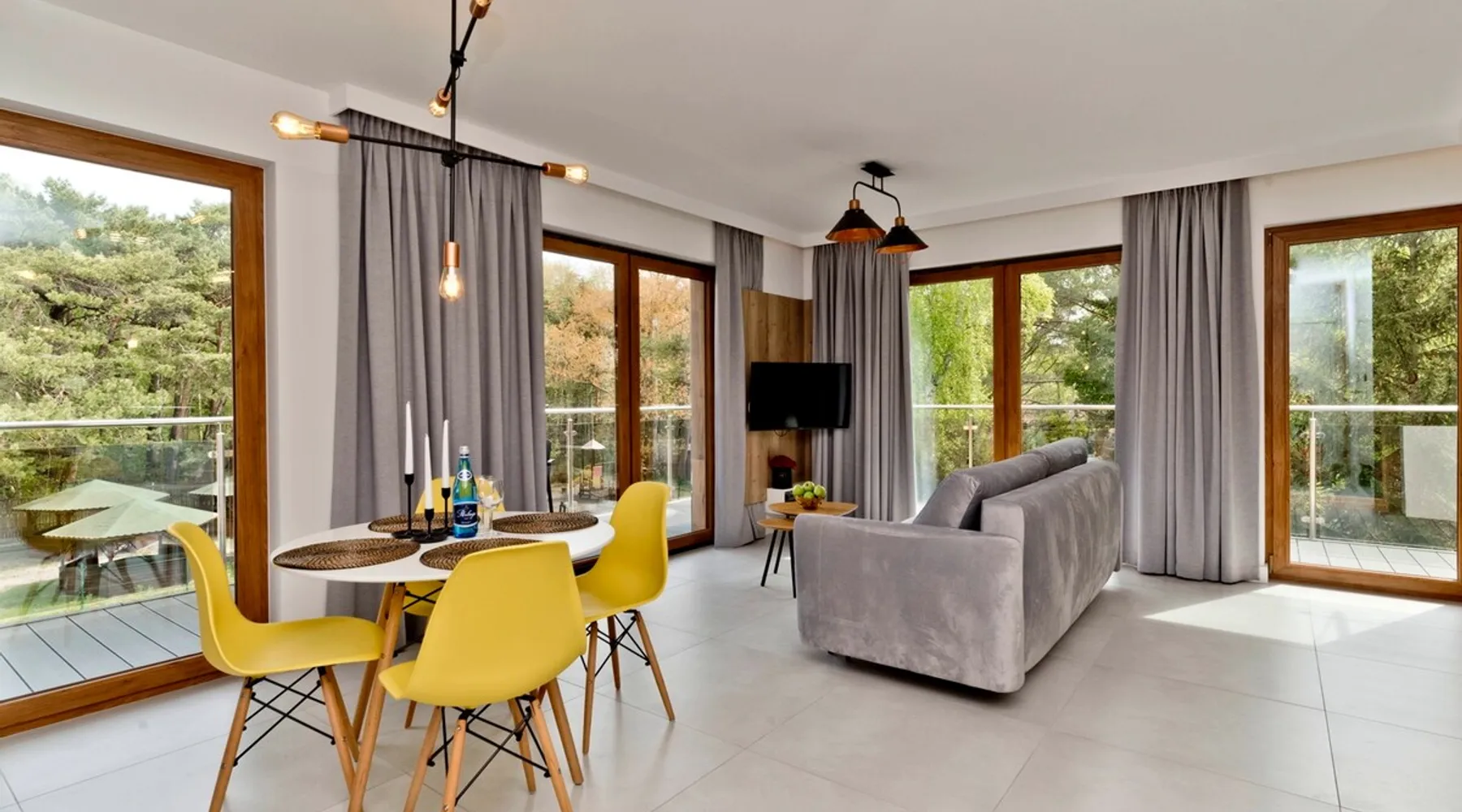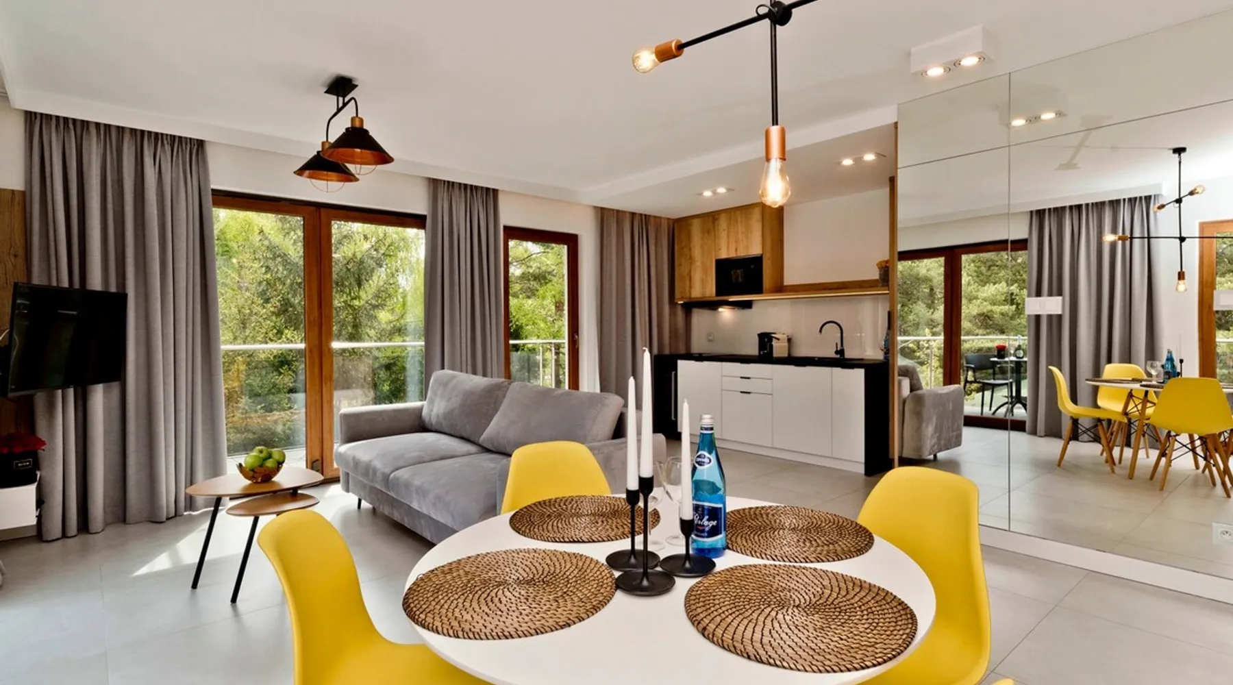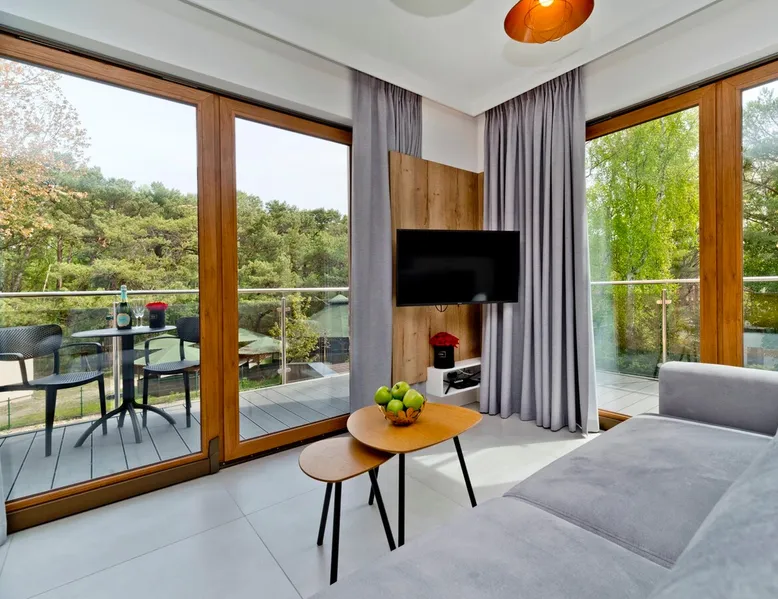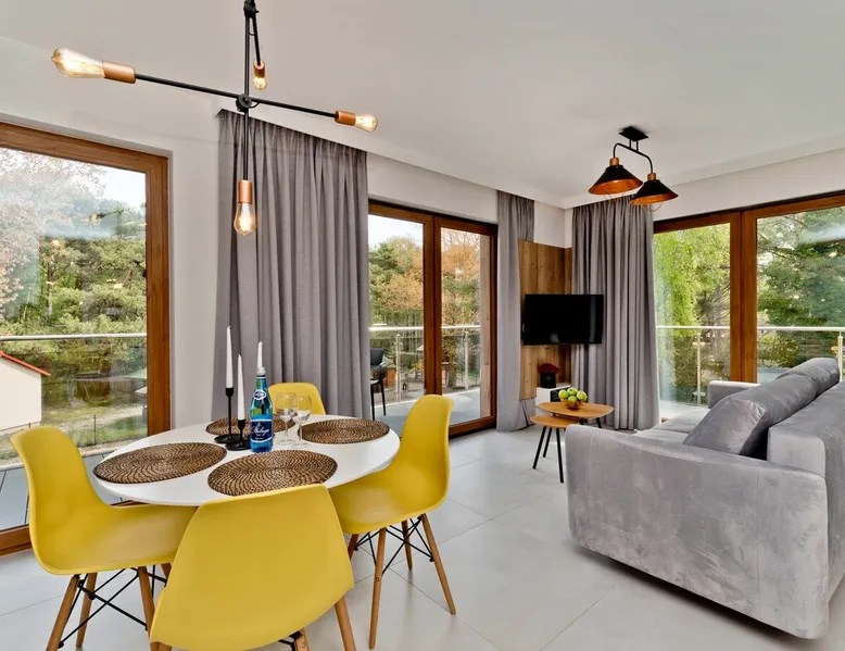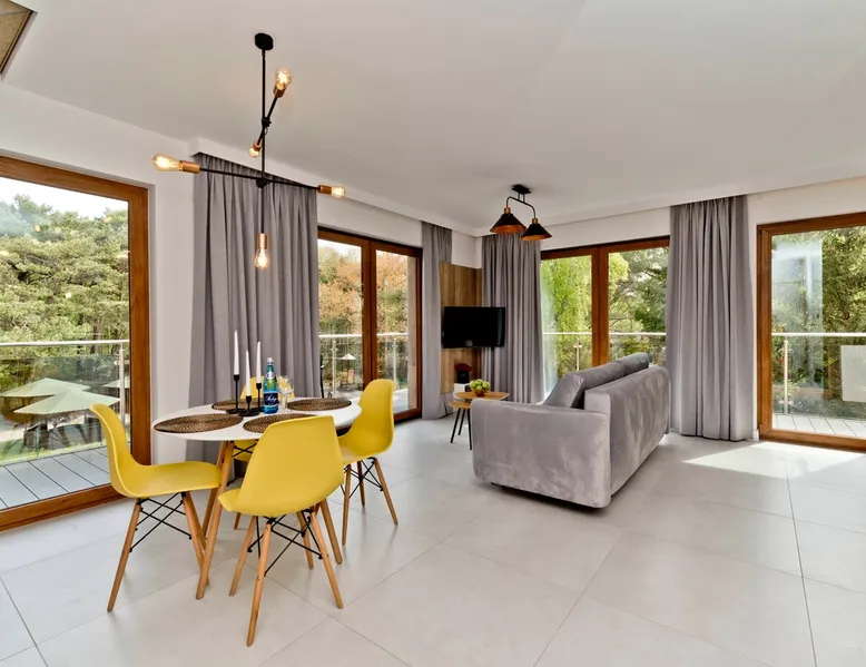 A luxury apartment in Jastarnia, where the unique atmosphere of a seaside town is intertwined with modernity. Just 300 meters from the beach, the apartment is a great base for the most popular tourist attractions in Hel. Mickiewicza 130 is a memorable address and undoubtedly the best choice for people who love to relax by the sea. The space The luxury apartment is for up to 6 people to live. The space of the apartment consists of a spacious living room and two bedrooms. In the climatically furnished bedrooms there are double beds and a large wardrobe. We will find in their interior an extremely intimate and romantic atmosphere thanks to a meticulous finish with attention to detail. The living room has a comfortable sofa with sleeping options for two people, which, when unfolded, turns into a wide and comfortable bed. Tasteful extras that are worthy of a nautical style, the interiors have a unique and luxurious character reflecting the atmosphere of the Hel Spit. There is a fully equipped kitchen with a microwave and an additional wine fridge. The entire layout is complemented by two modernly finished bathrooms with showers. The apartment also includes all necessary appliances such as a washer, dryer, coffee maker, iron, vacuum cleaner and beach equipment. An additional advantage is the air conditioning unit, which will allow you to cool the living space on the warmest days. The apartment's business card is an atmospheric terrace with a set of outdoor furniture. Every moment spent in such a setting allows you to fully feel the real seaside atmosphere and experience the surrounding nature apartment. The Apartland Residence investment is definitely distinguished from the facilities in the immediate vicinity. Great location, functionality and proximity to the beach make it an ideal place for people looking for undisturbed rest in the most beautiful seaside town in Poland. The price also includes one parking space and wireless internet access. Other things to note Check-in after 8pm has a surcharge: - 20-21 = 50zł - 21-23 = 100zł Key collection takes place at: Jastarnia ul. Portowa 43/4
