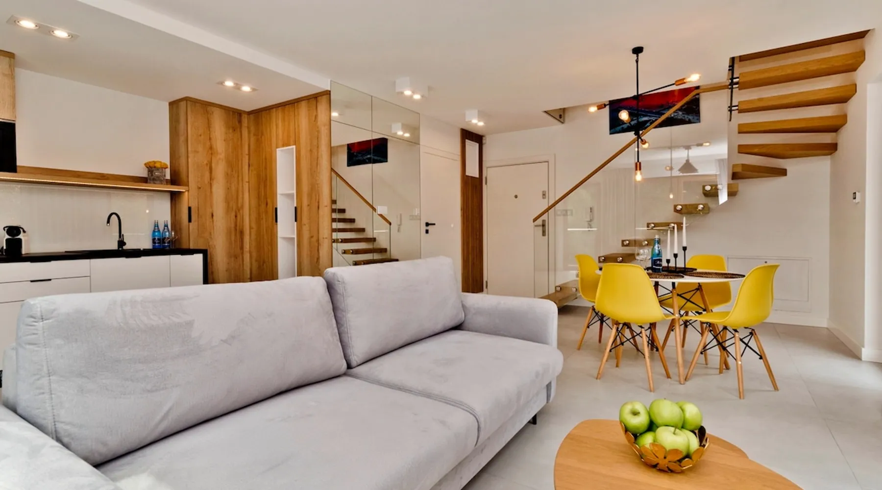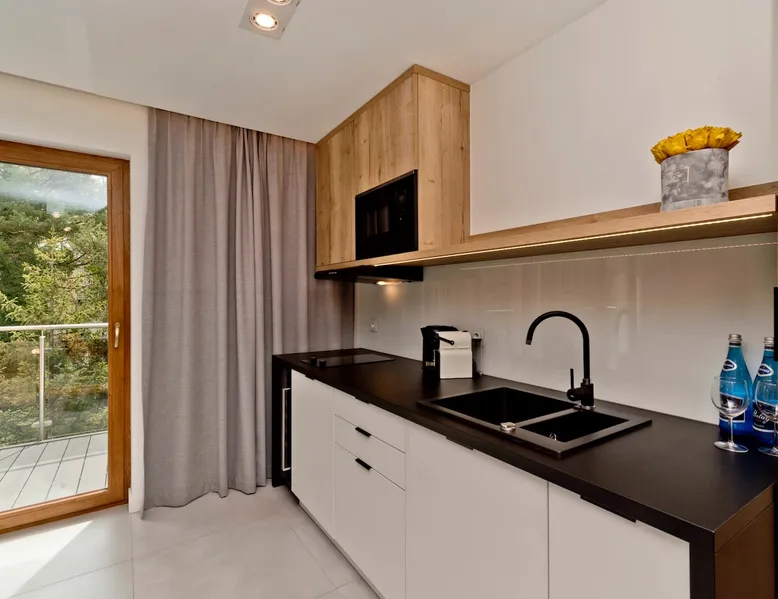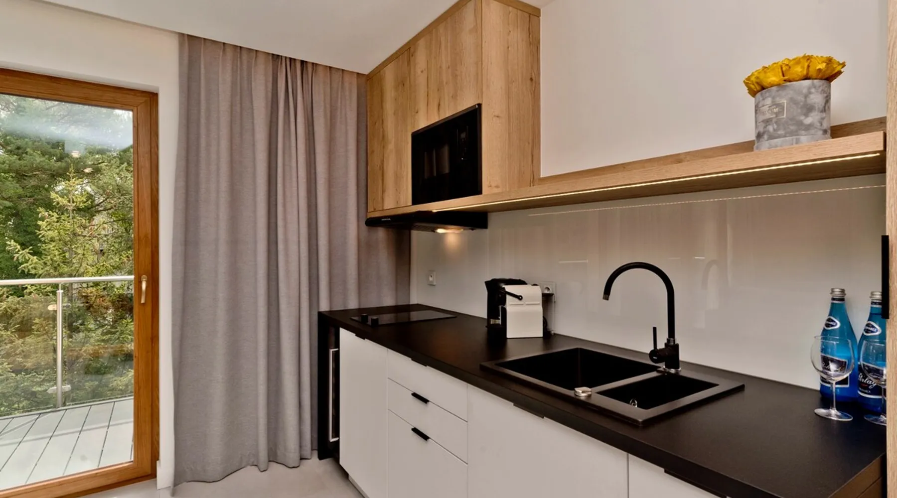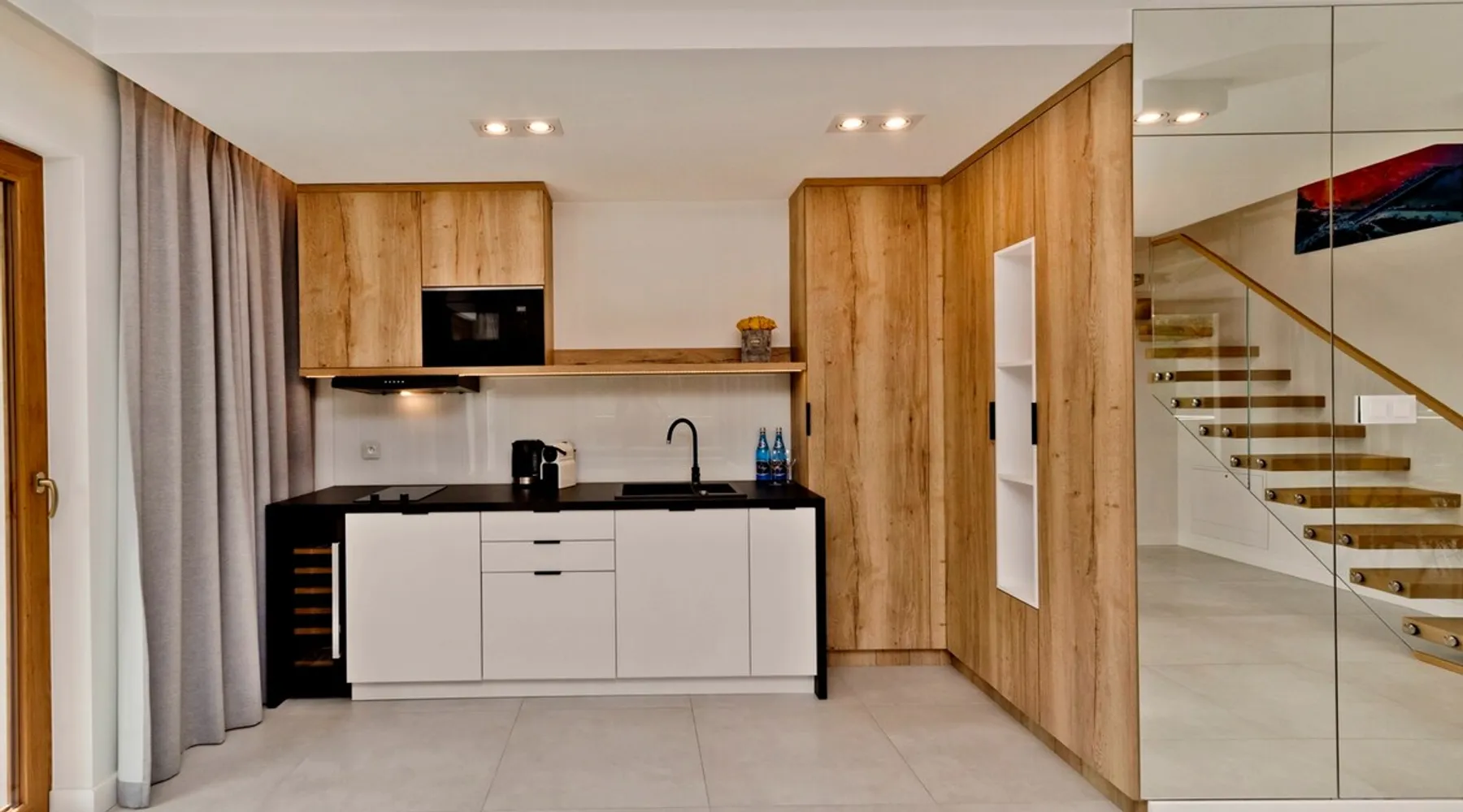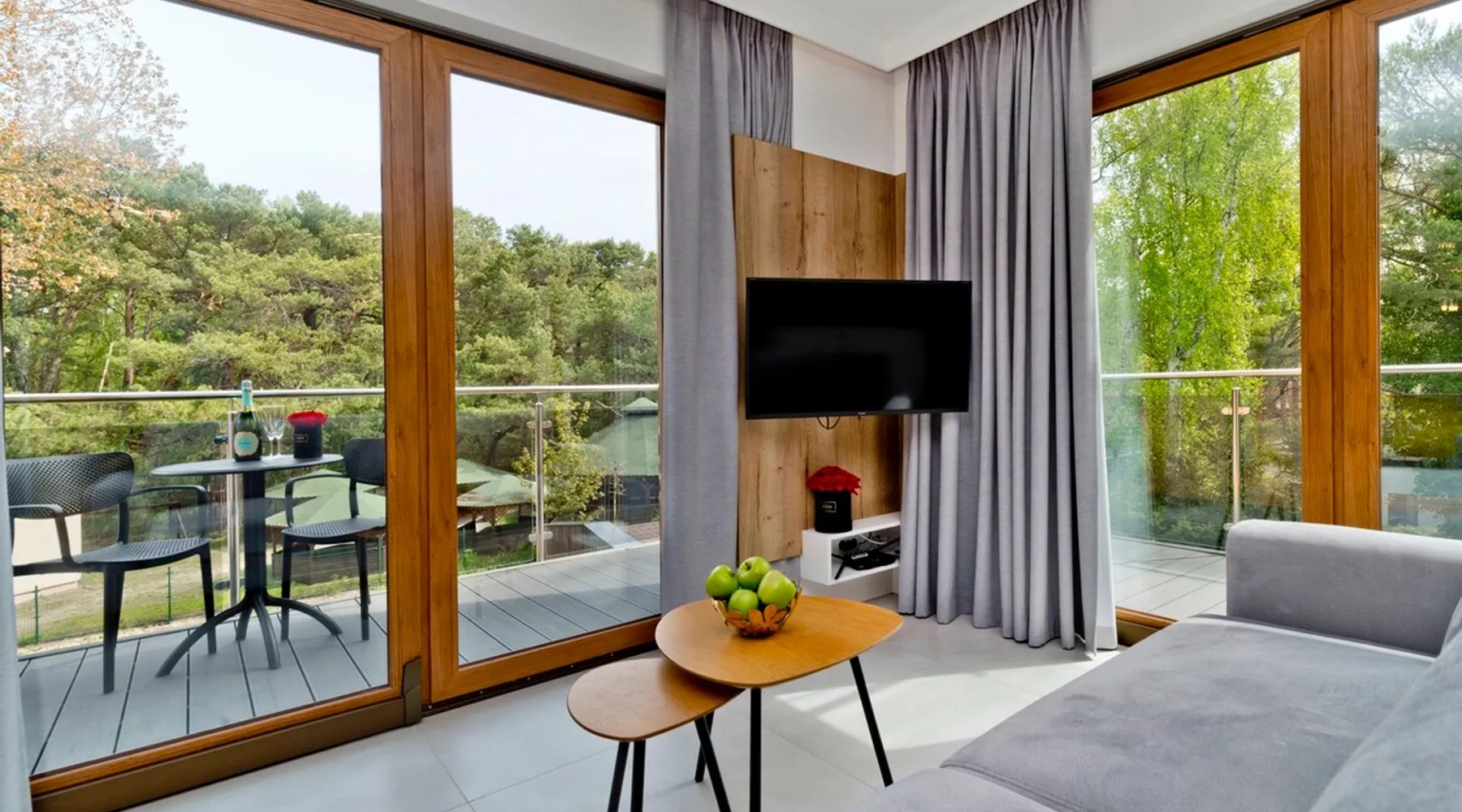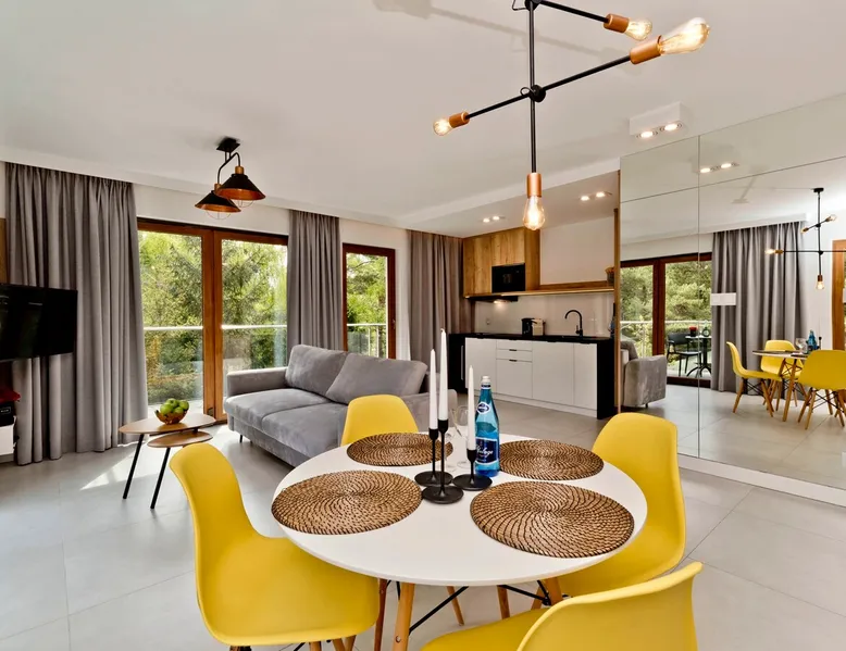 A luxury apartment in Jastarnia, where the unique atmosphere of a seaside town is intertwined with modernity. Just 300 meters from the beach, the apartment is a great base for the most popular tourist attractions in Hel. Mickiewicza 130 is a memorable address and undoubtedly the best choice for people who love to relax by the sea. The space The luxury apartment is for up to 6 people to live. The space of the apartment consists of a spacious living room and two bedrooms. In the climatically furnished bedrooms there are double beds and a large wardrobe. We will find in their interior an extremely intimate and romantic atmosphere thanks to a meticulous finish with attention to detail. The living room has a comfortable sofa with sleeping options for two people, which, when unfolded, turns into a wide and comfortable bed. Tasteful extras that are worthy of a nautical style, the interiors have a unique and luxurious character reflecting the atmosphere of the Hel Spit. There is a fully equipped kitchen with a microwave and an additional wine fridge. The entire layout is complemented by two modernly finished bathrooms with showers. The apartment also includes all necessary appliances such as a washer, dryer, coffee maker, iron, vacuum cleaner and beach equipment. An additional advantage is the air conditioning unit, which will allow you to cool the living space on the warmest days. The apartment's business card is an atmospheric terrace with a set of outdoor furniture. Every moment spent in such a setting allows you to fully feel the real seaside atmosphere and experience the surrounding nature apartment. The Apartland Residence investment is definitely distinguished from the facilities in the immediate vicinity. Great location, functionality and proximity to the beach make it an ideal place for people looking for undisturbed rest in the most beautiful seaside town in Poland. The price also includes one parking space and wireless internet access. Other things to note Check-in after 8pm has a surcharge: - 20-21 = 50zł - 21-23 = 100zł Key collection takes place at: Jastarnia ul. Portowa 43/4