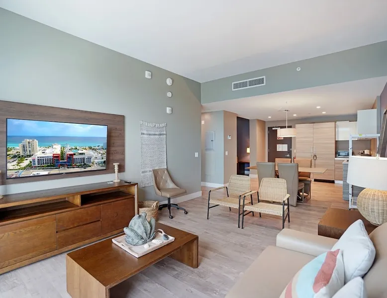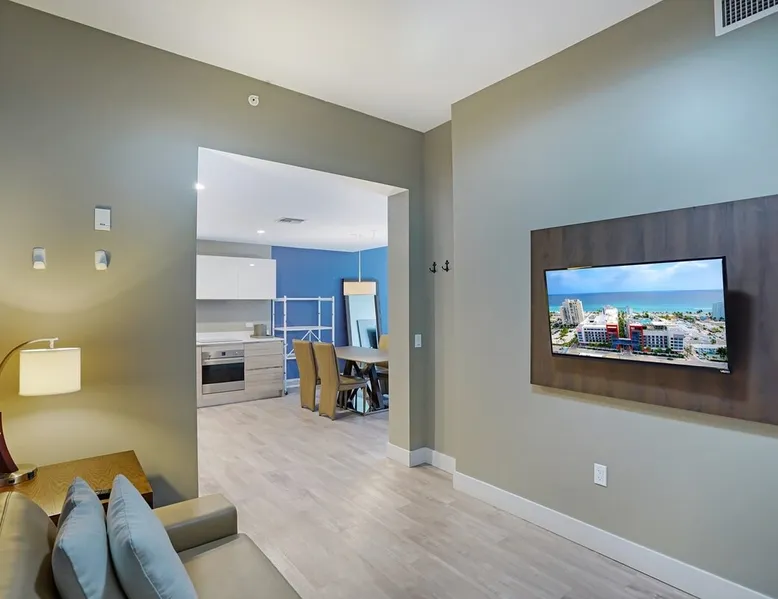 Modern 1-bedroom unit + Den at Costa Hollywood Beach Resort • Great for couples or solo travelers • King bed, Wi-Fi, and kitchenette • Steps from the beach and boardwalk • Rooftop pool, gym, and beach chairs • Walk to dining, shopping, and nightlife • Managed by Cielo Stays for a smooth stay The space This is Your Space • 818 sq. ft. modern Ocean View unit with Partial Ocean • Plush king-size bed for a restful night’s sleep • Comfortable sofa bed in the living room and the Den • Fully equipped kitchenette for your convenience • High-speed Wi-Fi, perfect for remote work • Ideal for couples, small families, or business travelers • 1 bedroom unit accommodating up to 5 guests Guest access Guest Experience • Enjoy full privacy – the entire apartment is yours • Front desk does not handle guest issues or requests • Contact us directly – we're here to ensure a smooth, enjoyable stay Other things to note Additional Fees (paid at check-in, not included in rate): MANDATORY * Administrative Fee: $56.50 (one-time) * Resort Fee: $45.20 per night * Building Hold: $100 (one-time, refundable) OPTIONAL * Pet Fee: $100 (one-time, per pet) * Valet Parking: $44.94 per night (regular) / $84.00 (large) Resort Amenities Included: -> Rooftop pool with ocean views -> Fitness center access -> Complimentary beach chairs (2) -> Pool and beach towels provided -> Yoga classes available -> Free 1-hour bicycle rental (up to 2 bikes) Good to Know: * Privately owned unit (no hotel services like housekeeping/room service). * Shared laundry rooms available ($2.50 per load). * Noise monitoring system in place (no cameras inside). * Vacation Rental Agreement required before check-in. Managed by Cielo Stays – License CND1621085