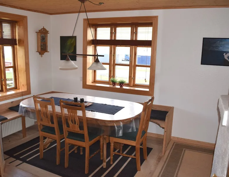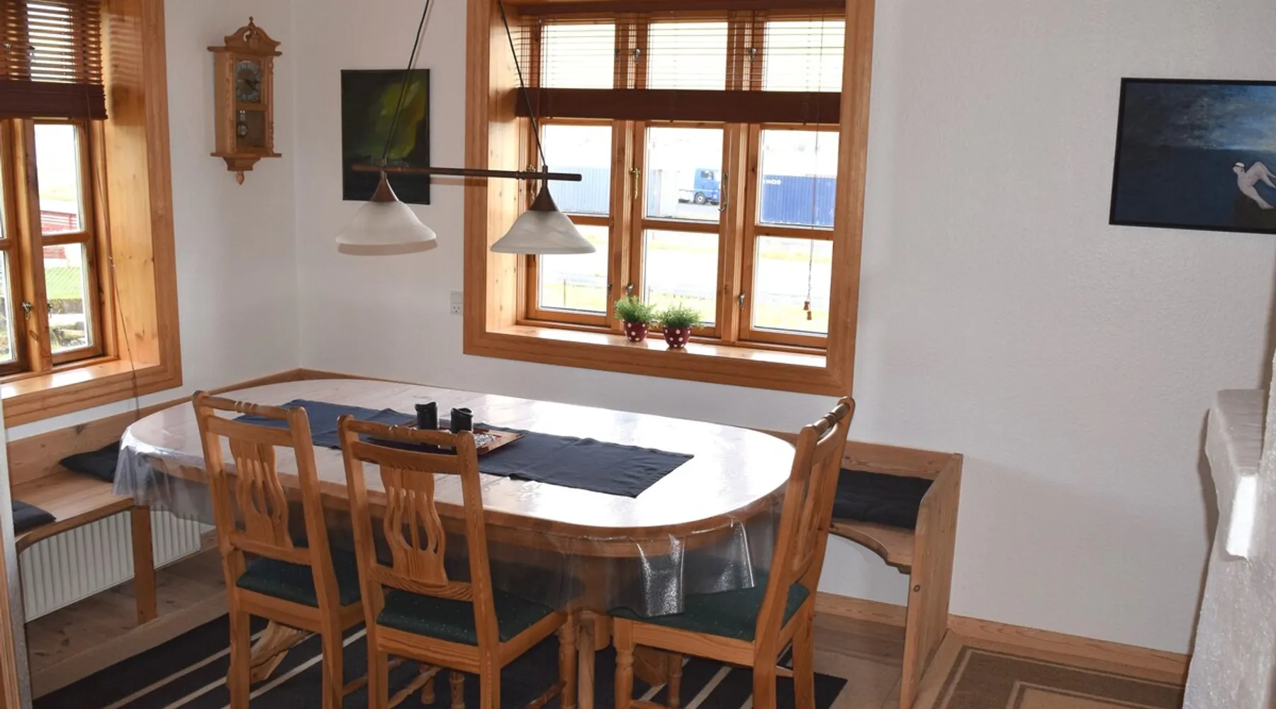 At the foot of Oyrnafjall lies this lovely cottage in beautiful surroundings overlooking Trangisvågsfjord. The house is completely renovated, with two bathrooms, kitchen and a cozy dining and living room with nice furniture’s. The space Historically and lovely holiday house built in the early 1900s and fully renovated in 2012. The famous Faroese artist Sigmund Petersen 1903 to 1974 entered its childhood shoes in this idyllic home. During the renovation popped a Historically findings up, which proved to be one of Sigmund Petersen first oil paintings, which were conducted behind a cover in the house's original living room. The house is completely renovated in 2012 where the stairs in the house has been preserved to maintain the historic atmosphere. The house appears bright and spacious after the renovation, and with good natural light from the many windows. The living room is equipped with comfortable furniture’s and so are the three bedrooms: 1 room with double bed, 1 room with bunk bed and 1 room with bunk bed and 2 single beds. The house has a total of 2 bathrooms with shower. Additional info on sigmundarstova dk Guest access Facilities - Washing machine - Dishwasher - Electric stove - Refrigerator with freezer - Microwave - Coffee maker - Wood stove - Wireless Internet - TV