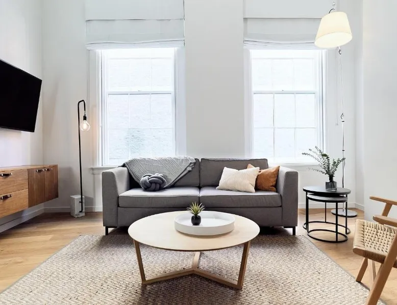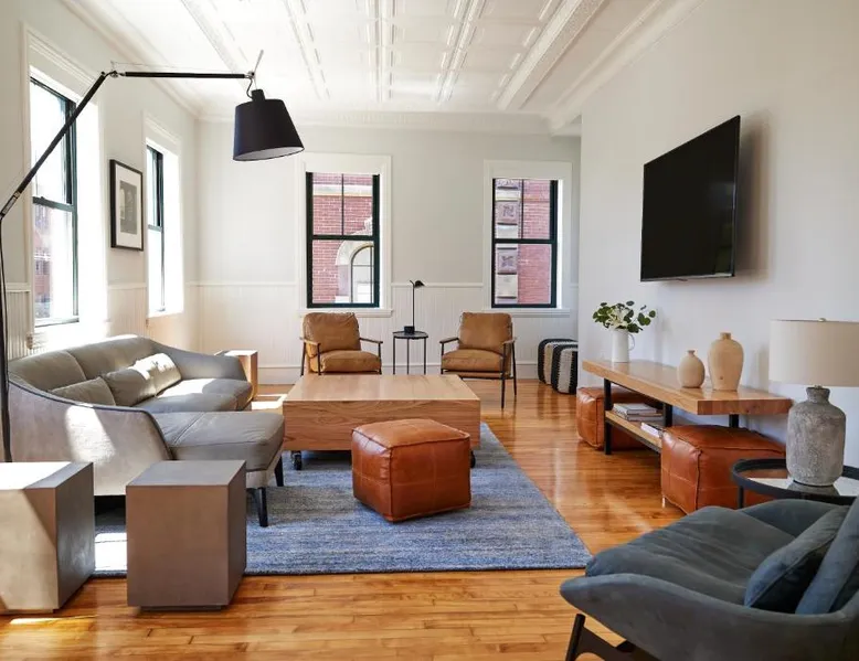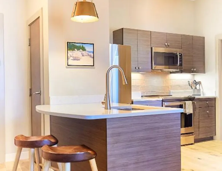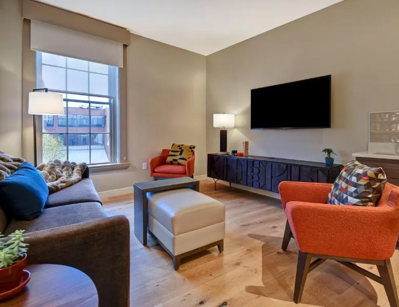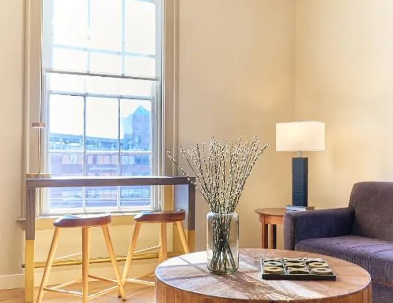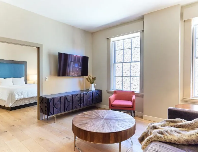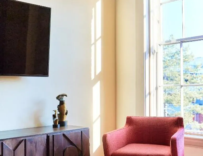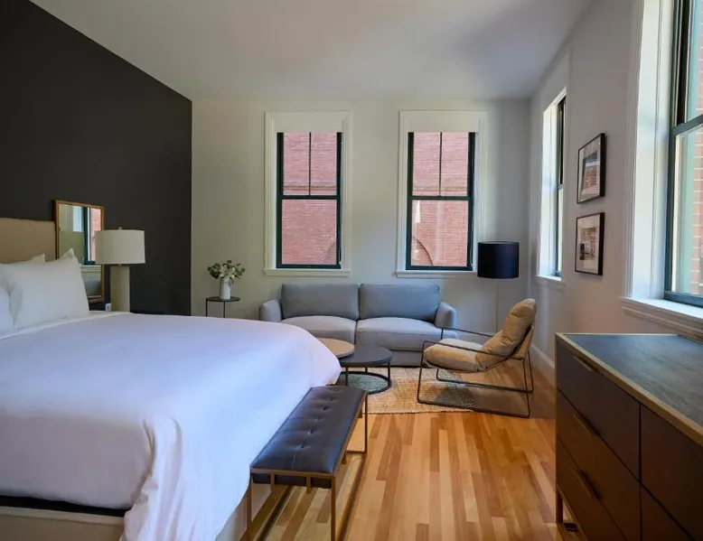 Historic Setting: The Docent's Collection in Portland offers a unique stay within a historic building. Guests enjoy free WiFi, air-conditioning, and private check-in and check-out services. Comfortable Accommodations: Rooms feature private bathrooms with walk-in showers, kitchen facilities, and modern amenities such as streaming services and soundproofing. Additional comforts include bathrobes, hypoallergenic bedding, and parquet floors. Convenient Location: Located 3.1 mi from Portland International Jetport, the aparthotel is near East End Beach (19-minute walk), Merrill Auditorium (1640 feet), and Portland Downtown Historic District (1312 feet). An ice-skating rink is also nearby. Guest Services: The property offers a 24-hour front desk, concierge service, and electric vehicle charging station. Paid on-site private parking is available. Highly rated for its convenient location and room comfort. This spacious apartment consists of 1 living room, 1 separate bedroom and 1 bathroom with a walk-in shower and free toiletries. The well-equipped kitchen has a stovetop, a refrigerator, a dishwasher and kitchenware. This wheelchair accessible apartment features air conditioning, a seating area with a flat-screen TV and a roll-in shower. The unit offers 2 beds.