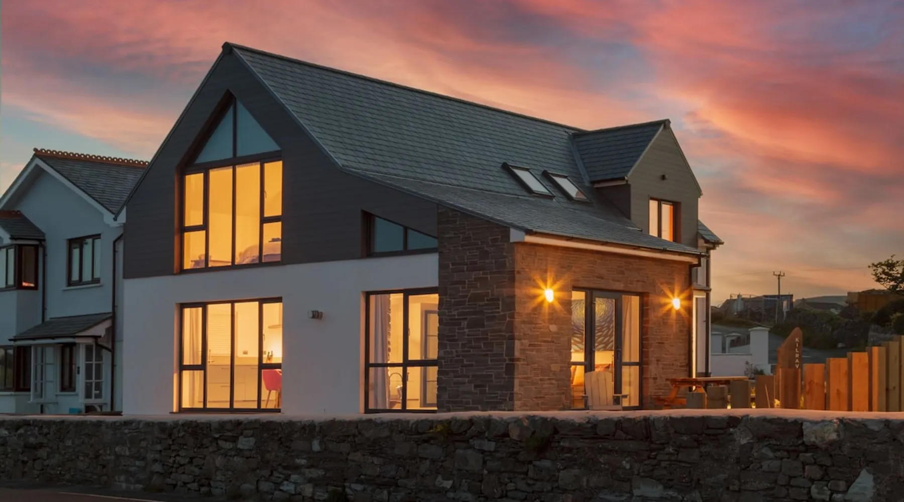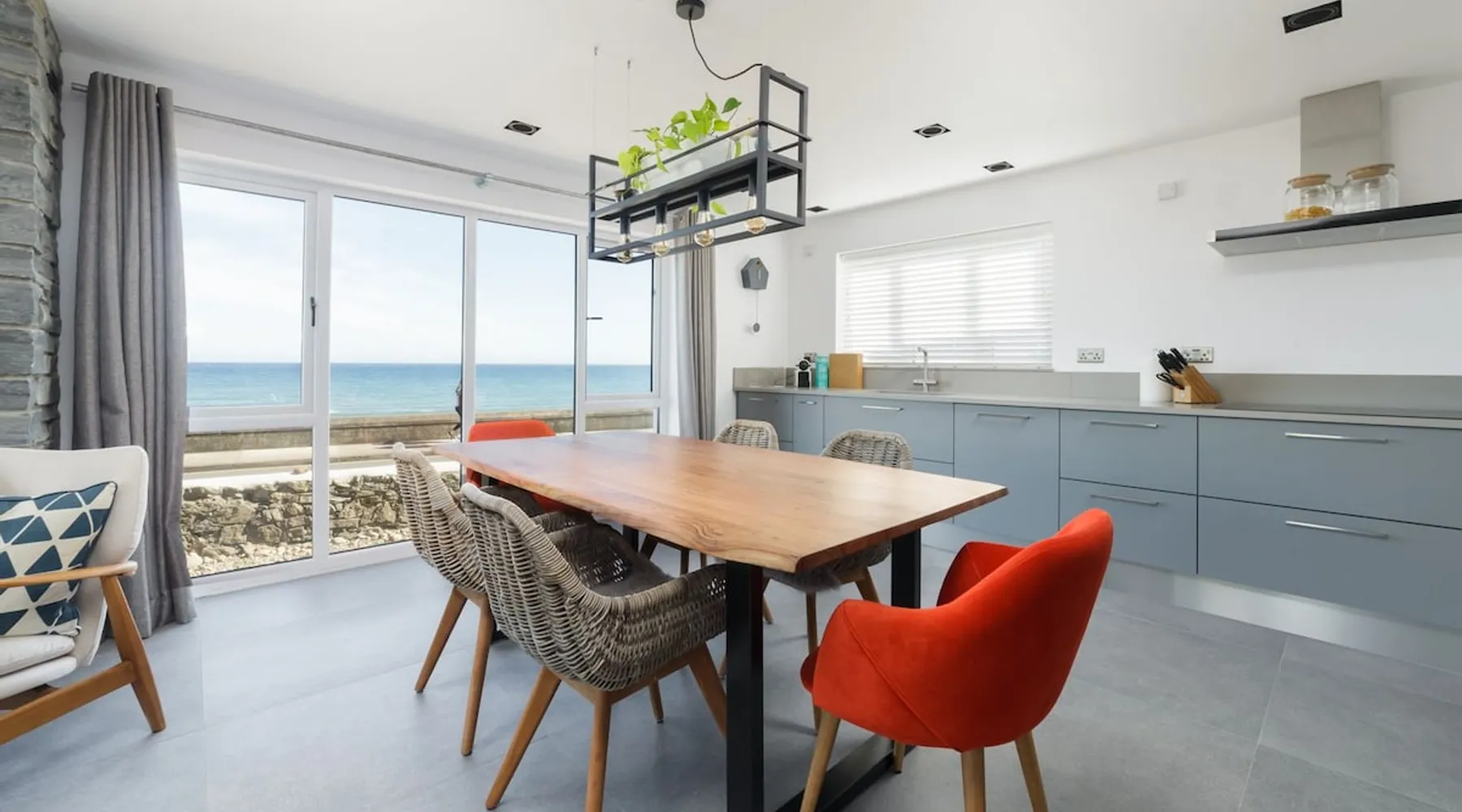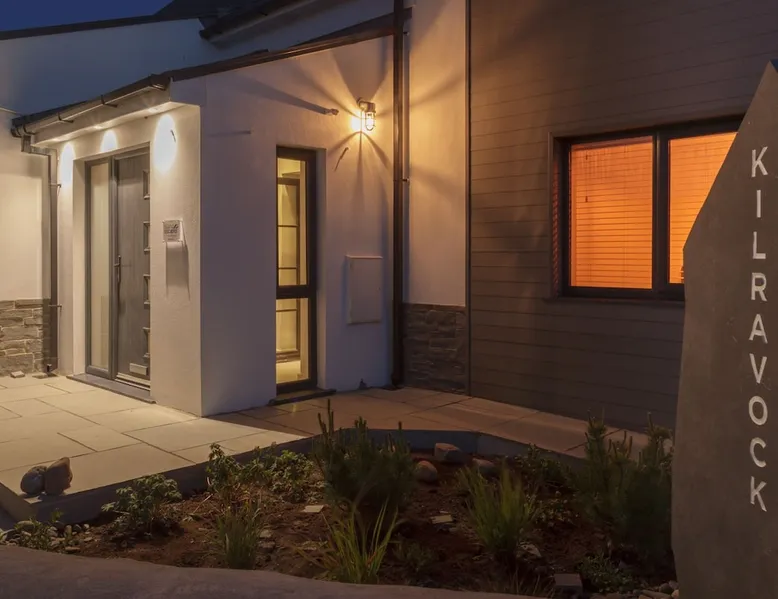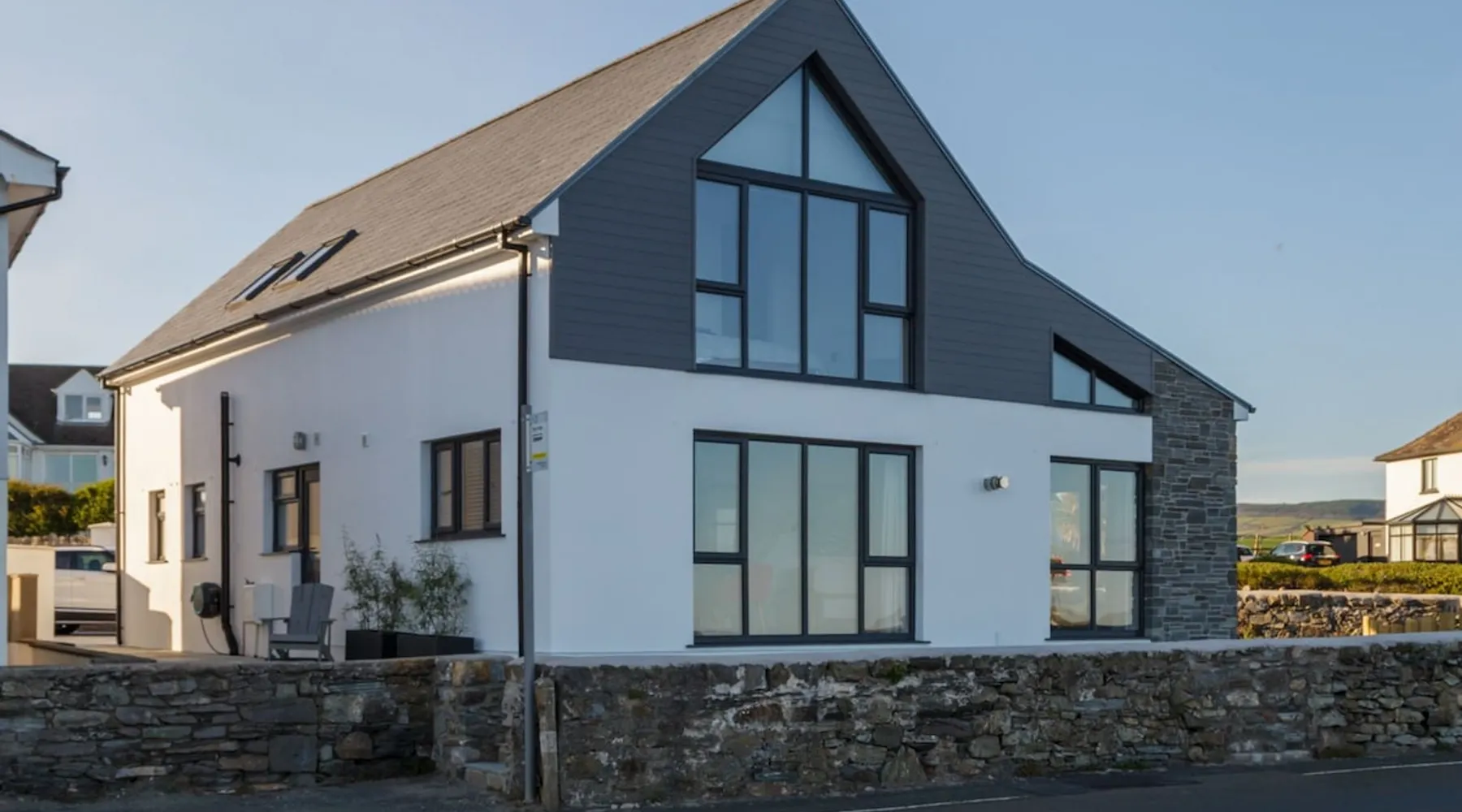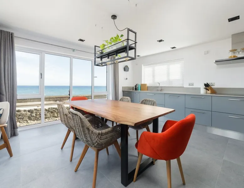 Kilravock is nothing short of a dream home beside the sea, built in 2021 this impressive house, on the sea front at Bay Ny Carrickey offers luxury accommodation for a group of 6 people. Enjoying panoramic sea views it is the perfect place to unwind in impressive surroundings. South facing, the sun shines on the property for much of the day, enjoy watching the world go by sitting in the outside garden area. The property is also pet friendly, with one well behaved dog welcome to stay downstairs. The space The open plan living, dining and kitchen area provides a fantastic social space, and the warm modern Gazco fire makes for a cosy evening setting as the nights draw in. As a modern build house, the property is naturally warm and enjoys many of the latest features. Ground Floor Kitchen/Dining area: Electric oven and combi microwave, electric hob, large fridge and freezer, dishwasher, dining table & six chairs Lounge: Gazco gas powered fire, sofa and comfortable seating, Smart TV, Zain bluetooth speaker system, coffee table. Utility room: Complete with sink and washing machine / dryer. Cloakroom: Downstairs w/c with wash hand basin. Bedroom 1: Ground Floor - Kingsize bed, bedside tables, shelving and clothes hanger. Ensuite: Walk in shower, w.c., basin and vanity unit Study: with desk, lamp and screen. First Floor Bedroom 2: Twin beds (extra long), bedside tables, clothes cabinets, chair Ensuite: Walk in shower, w.c., basin and vanity unit Bedroom 3: Master bedroom with Super King size bed, bedside tables, chest of drawers, hanging space and two chairs. Ensuite: Free standing copper bath, walk in shower, w.c., basin and vanity unit General Parking: Space for 2 vehicles on the driveway including a power point for electric vehicles. Changeover Day: Flexible - arrival 4:00pm - departure 10:00am Pets: 2 small well behaved dogs or 1 larger dog accepted downstairs Power & Heating: Gas & Electricity included Wifi: Free Wifi included (fibre broadband) Bedding & Linen: Bed linen and towels provided, please bring your own beach towels. Baby Equipment: Cot and High chair available to hire at additional cost. Shop: 0.6 ml Pub: 0.2 ml Damage: Important! We are committed to protecting our properties which is why we now take a £35 fee from each booking as a damage waiver. This is included in the price you pay and covers you for up to £500 worth of accidental damages to the property that could occur whilst you are staying. Registration Details 653922