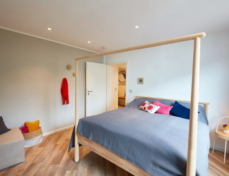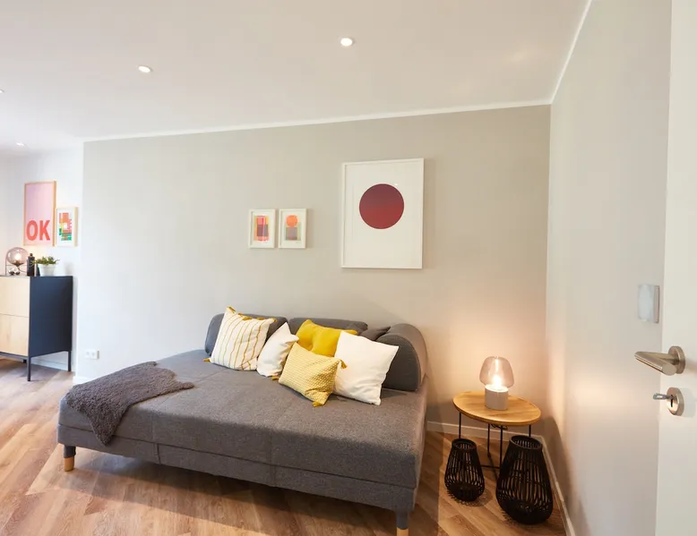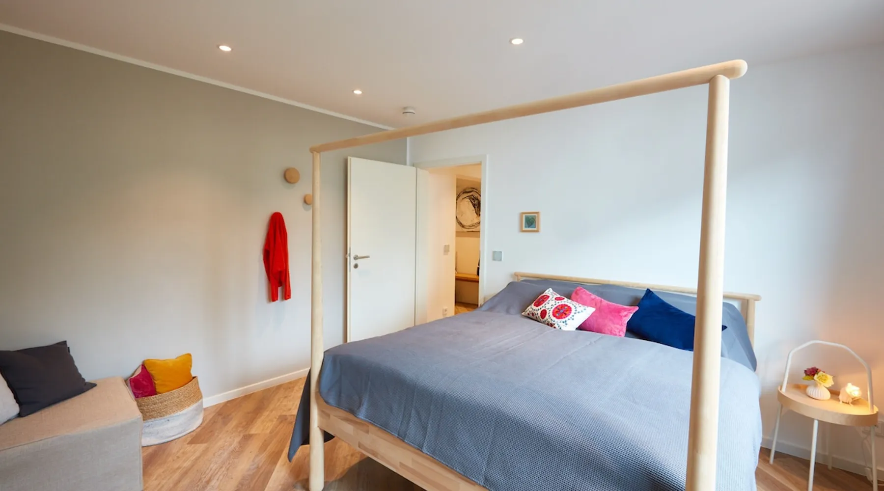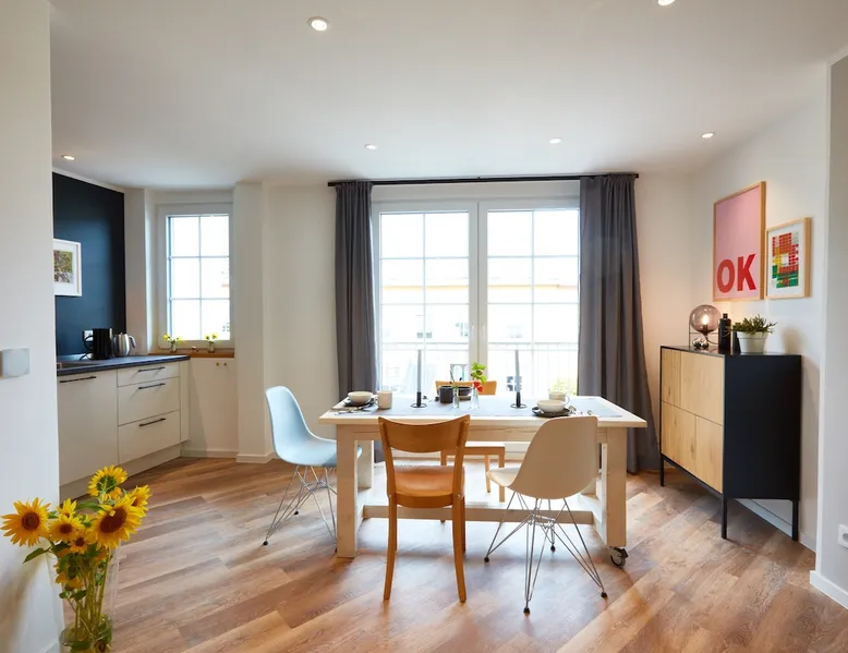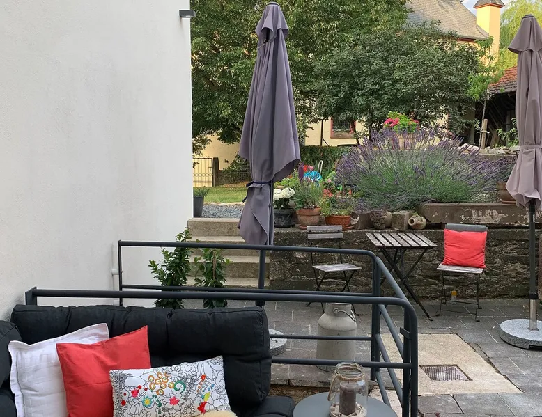 A 65 sqm, very cozy apartment with balcony, equipped with loving details and design highlights First occupancy September 2020 For 2 adults + 2 children Access Smart Home Code Underfloor heating Balcony Modern bathroom with walk-in rain shower Towels, shower gel, shampoo and hair dryer Modern kitchen Double bed 160 x 200 cm Comfortable sofa bed 120 x 200 cm in the living room Additional sofa bed in the bedroom Linens included No pets Non-smokers Final cleaning fee € 65 The space Deposit € 150 The price is for occupancy with 2 adults and children (up to 14 years free). Additional persons aged 15 and over will be charged €15.00 per person. The additional amount is payable on site On-site towel change on request for an extra charge of €5.00 per person. Use of washing machine and dryer, clothesline outside available. Breakfast service - breakfast basket - on site and by arrangement. In summer, it is possible - by arrangement - to use the gas grill. Also by arrangement for cozy evenings a fire bowl. Location: Magnificent views of the adjacent gardens, fields and the Eifelpark and its summer attraction the Freefall Tower "Graviator" and the "Jules Verne Tower" the chain carousel at 80 meters altitude. The entrance to the Eifelpark is just 900 m away and is within walking distance. We offer our guests with small children the opportunity to rent a handcart. Outdoors, cycling and hiking: The connection to the Kylltal bike trail is about 2 km away in the neighboring village of Hüttingen. Beautiful walks to the nearby quarry and into the forest can be taken immediately from the house. For children, there is a newly built playground about 300 meters away. Bakeries, restaurants & co. In the neighboring village of Dudeldorf, about 1.5 km away, there is a bakery, village shop, banks and restaurants (including delivery service). Public transportation: The nearest train stations with connections to the train lines to Trier or Cologne are also very close by in the neighboring towns of Hüttingen, Phillipsheim or Erdorf. The bus stop with daily connection to the nearest district town Bitburg is 20 meters from the house. Due to the current Covid 19 situation, there is a 2-day pause between 2 bookings/occupancy. Guests will also be provided with disinfectants. Guest access Garden access Access to the laundry room Other things to note Please, no noise after 10 pm Please store and hang hiking equipment in the wardrobe on the first floor Parking for bicycles can be arranged. Please ask on request.