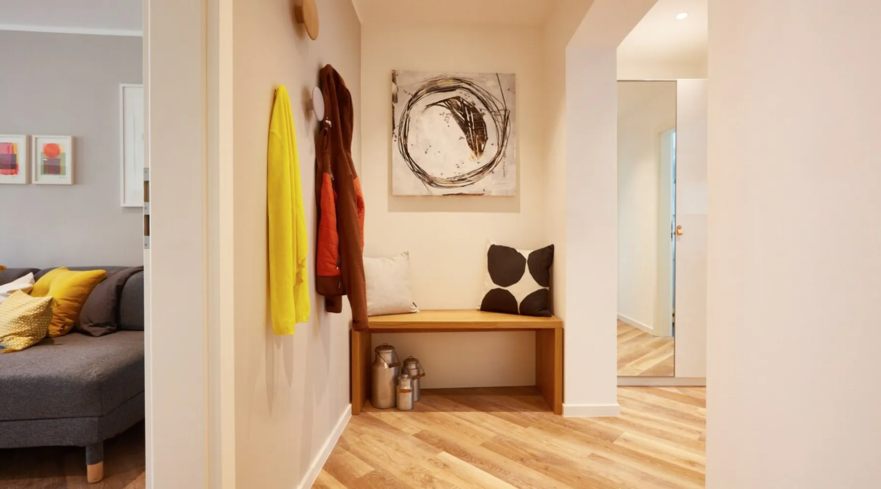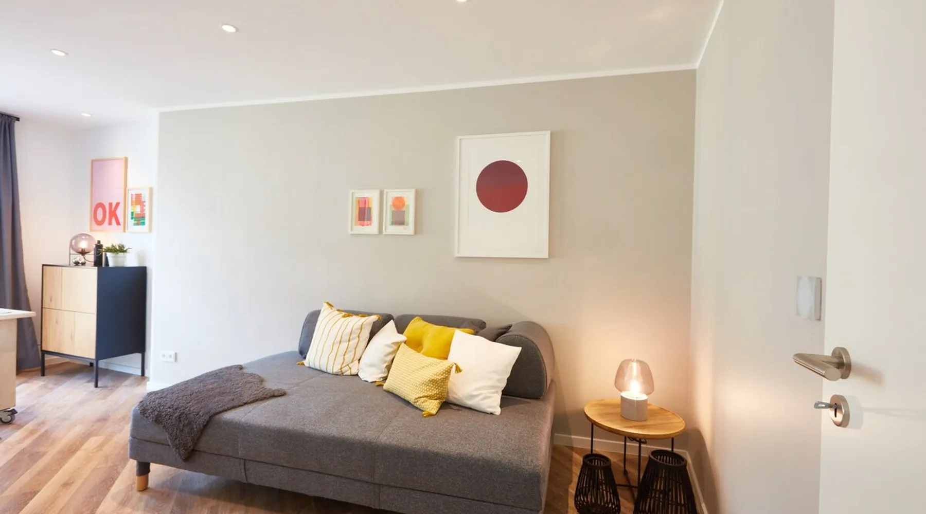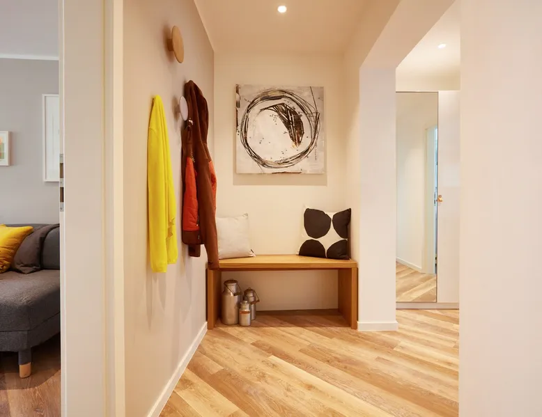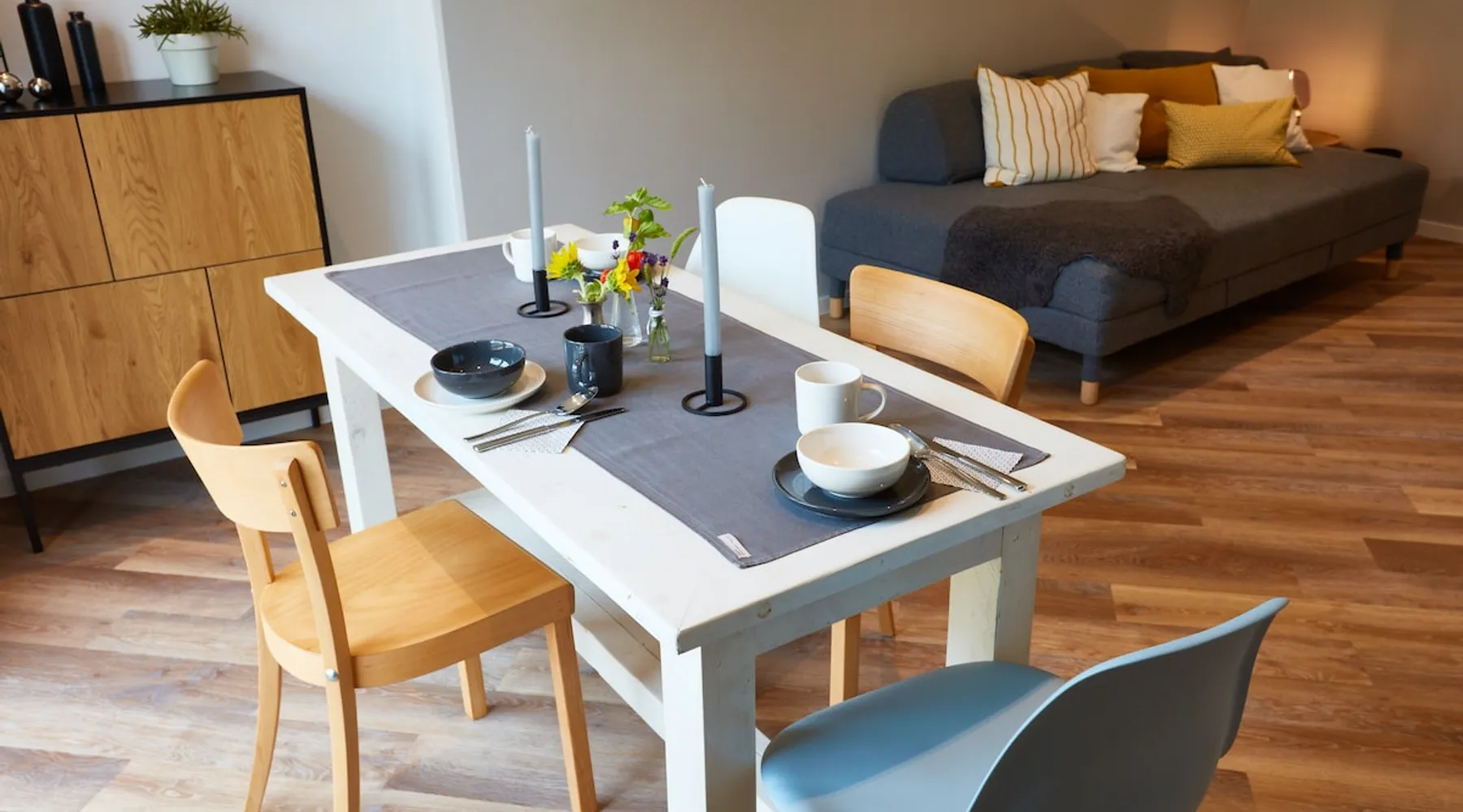 A 65 sqm, very cozy apartment with balcony, equipped with loving details and design highlights First occupancy September 2020 For 2 adults + 2 children Access Smart Home Code Underfloor heating Balcony Modern bathroom with walk-in rain shower Towels, shower gel, shampoo and hair dryer Modern kitchen Double bed 160 x 200 cm Comfortable sofa bed 120 x 200 cm in the living room Additional sofa bed in the bedroom Linens included No pets Non-smokers Final cleaning fee € 65 The space Deposit € 150 The price is for occupancy with 2 adults and children (up to 14 years free). Additional persons aged 15 and over will be charged €15.00 per person. The additional amount is payable on site On-site towel change on request for an extra charge of €5.00 per person. Use of washing machine and dryer, clothesline outside available. Breakfast service - breakfast basket - on site and by arrangement. In summer, it is possible - by arrangement - to use the gas grill. Also by arrangement for cozy evenings a fire bowl. Location: Magnificent views of the adjacent gardens, fields and the Eifelpark and its summer attraction the Freefall Tower "Graviator" and the "Jules Verne Tower" the chain carousel at 80 meters altitude. The entrance to the Eifelpark is just 900 m away and is within walking distance. We offer our guests with small children the opportunity to rent a handcart. Outdoors, cycling and hiking: The connection to the Kylltal bike trail is about 2 km away in the neighboring village of Hüttingen. Beautiful walks to the nearby quarry and into the forest can be taken immediately from the house. For children, there is a newly built playground about 300 meters away. Bakeries, restaurants & co. In the neighboring village of Dudeldorf, about 1.5 km away, there is a bakery, village shop, banks and restaurants (including delivery service). Public transportation: The nearest train stations with connections to the train lines to Trier or Cologne are also very close by in the neighboring towns of Hüttingen, Phillipsheim or Erdorf. The bus stop with daily connection to the nearest district town Bitburg is 20 meters from the house. Due to the current Covid 19 situation, there is a 2-day pause between 2 bookings/occupancy. Guests will also be provided with disinfectants. Guest access Garden access Access to the laundry room Other things to note Please, no noise after 10 pm Please store and hang hiking equipment in the wardrobe on the first floor Parking for bicycles can be arranged. Please ask on request.