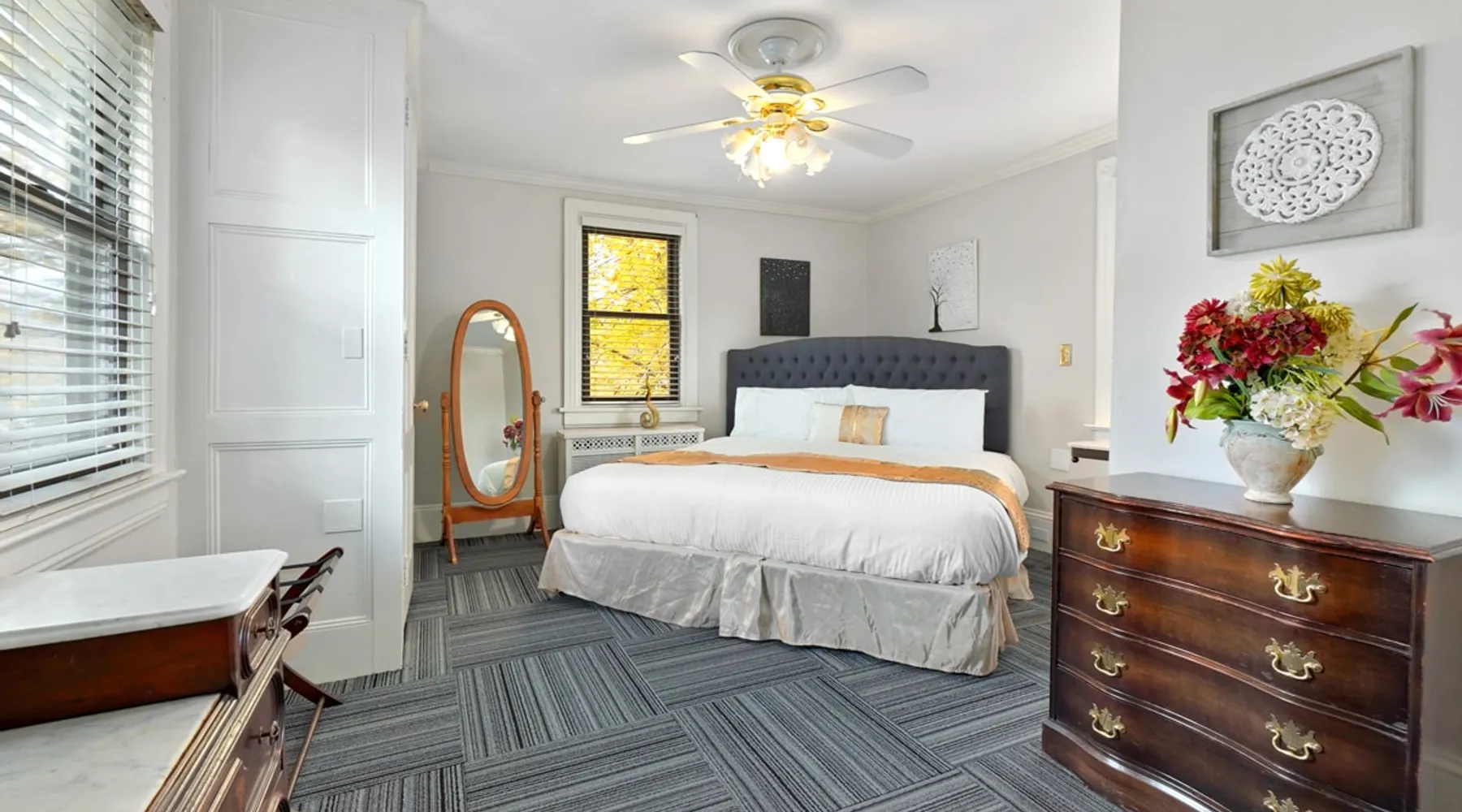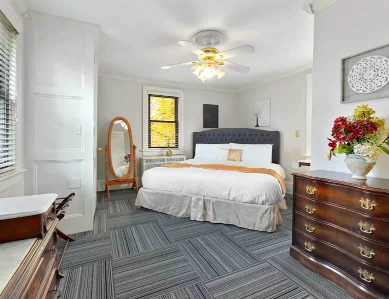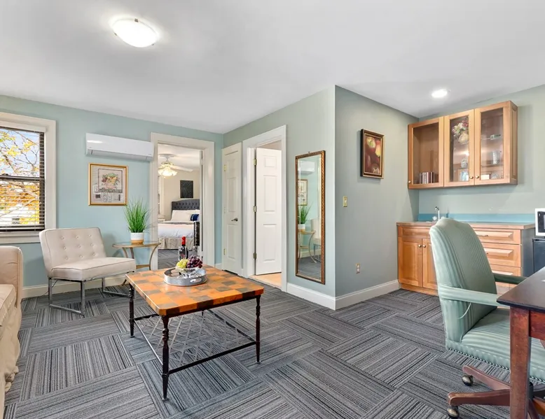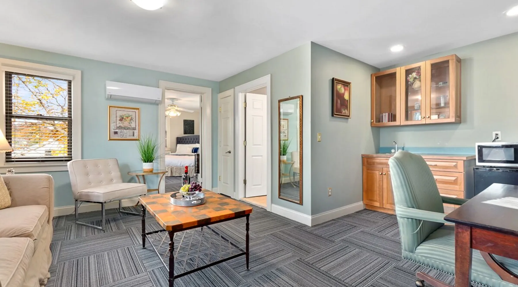 The Millennial Suite: Experience the newest addition to The DeBary Inn, our expansive, beautifully decorated Millennial Suite. This two-room suite has some exciting features, such as a large Samsung SmartTV, an iHome Lightening Docking Station, and a The space Experience the newest and largest addition to The DeBary Inn, our expansive, beautifully decorated Suite 17. This 3rd-floor two-room suite has some exciting features, such as a large Samsung SmartTV, and iHome Lightning docking station, desk, area and phone charging station. In addition to these technological comforts, the suite also has a king-sized bed and additional full size sleeper sofa, a wet bar, a mini-fridge, private bathroom with a stand-up shower, closet and dresser. Come enjoy our beautiful hotel suite in New Jersey, just minutes from downtown Summit and the Summit Train Station.