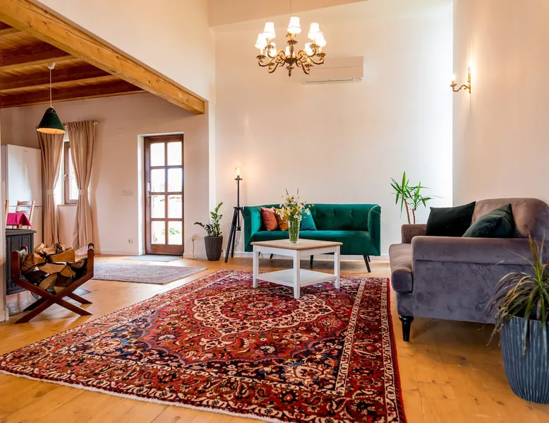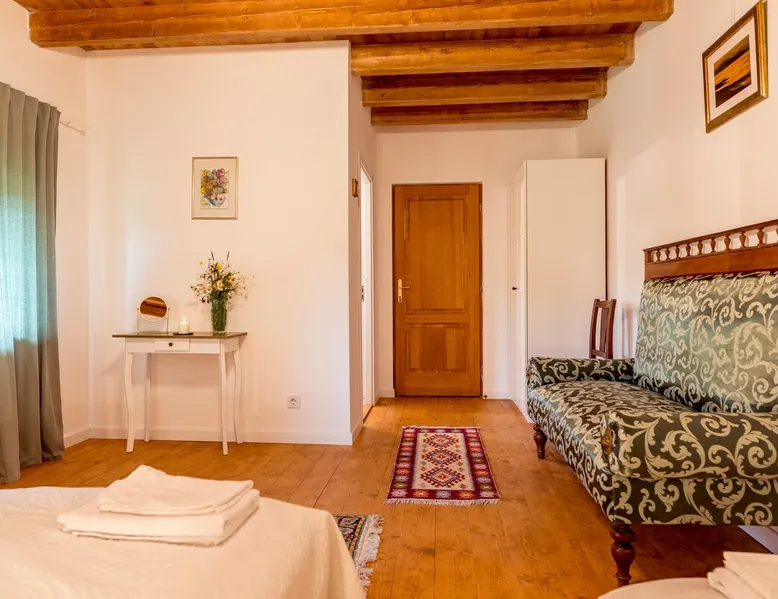 Our guesthouse is an old wooden barn transformed to a cozy guest house. Located in a silent Transilvanian village between endless mountains and forest. The building contains three bedrooms with separated bath, and a large common spaces. We have a huge garden to relax, do sports, walk. You have the possibility to use the hot tub with salt water.