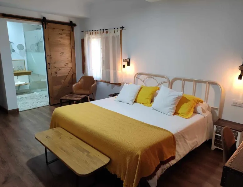 The space Book on a basis of accommodations and breakfast. This room has a wooden lining on one of its walls which will undoubtedly provide you with comfort and warmth in your stay that will cause the desire to stay in it. Next to all this, you can enjoy stunning views of the main garden from the room itself and the lush San Juan Bautista Parish Church. Having one of the most important features to highlight about this room. The style that has been used in this room has been the retro. Guest access We hope you find everything you need in our amenities list, if you have another special request do not hesitate to contact us! Tourist information. We keep your luggage for you! (toll-free) Daily room cleaning (in room reservations) Free Wi-Fi Smart TV on every room Mini-bar on all rooms (paid per consumption) Free buffet breakfast included in the price of all rooms ( in room reservations. When they book the entire home, the regime will only be accommodations.) A/C and heat pump in bedrooms and living room. Bookstore and board games in living room. Free crib (check availability) Possibility of an extra bed (90x190cm). Under 10 years old €15, Other things to note Buffet breakfast schedule 08.30 - 10.30 If you have any type of allergy or food intolerance, please contact us directly so that you can offer a breakfast that meets your needs. Registration Details Spain - National registration number ESFCTU00001001100013873700000000000000000TR-CC-003210 Extremadura - Regional registration number TR-CC-00321
