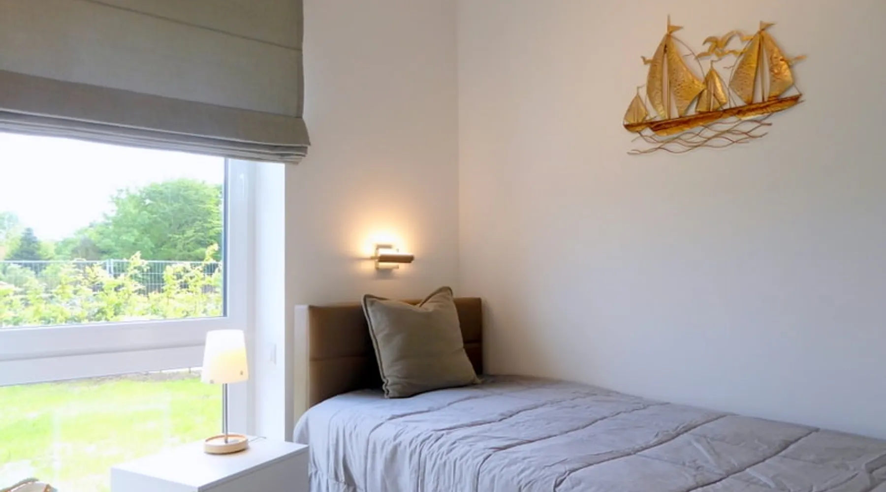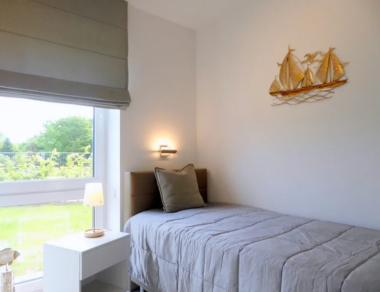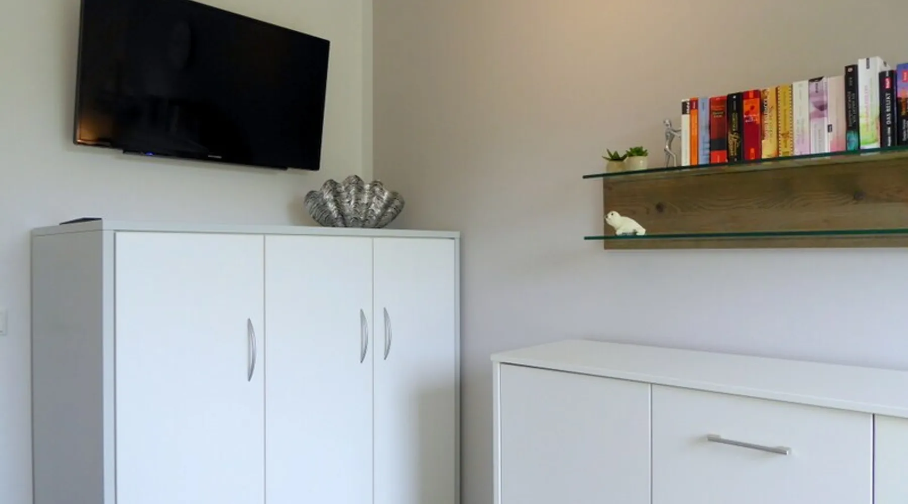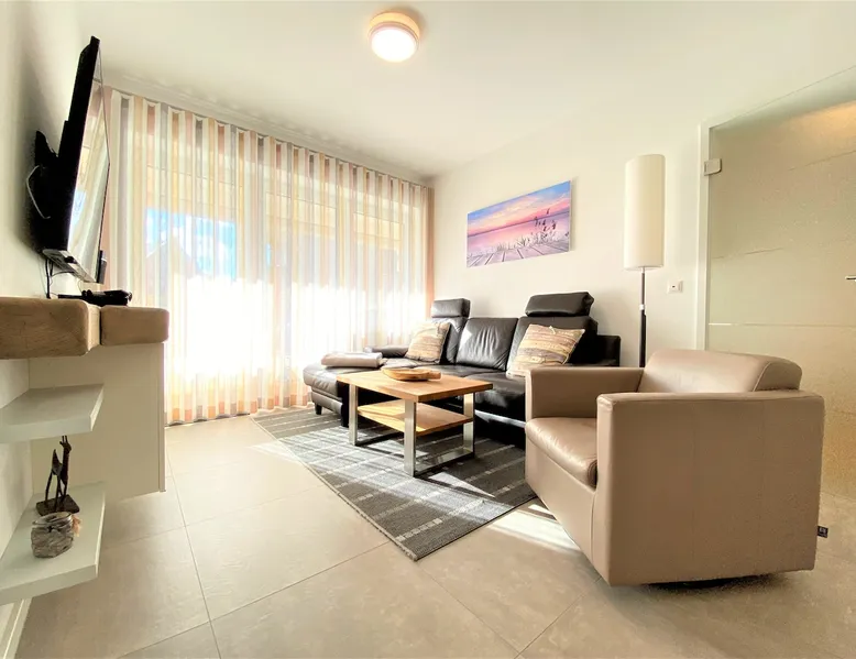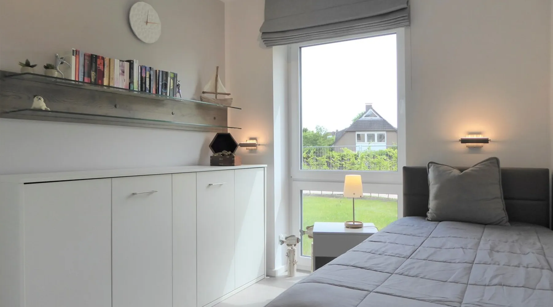 "Seal nest" – What is it? It is an artistic name for an artfully furnished apartment, which combines the seemingly incompatible - clear lines, state-of-the-art technical equipment and cohesive design, combined with a decent shot of comfort and a lot of nest warmth for 2 to max. 4 people. Other things to note Immerse yourself and enjoy the most beautiful time of the year in a stylish ambience with that certain something. Here you will find everything for a perfect holiday, from 55" 4K TVs to top kitchen designs, from box spring beds to state-of-the-art 3D electric fireplaces. From the entrance area with a special cloakroom, you go straight to the right into the stylish shower room with daylight and a large, walk-in summer rain shower. The heart of the apartment is the harmonious living-dining area with a fully equipped kitchen in a modern design, a dining table with elegant cantilever chairs and a living area that meets the highest standards. If a fresh North Sea breeze should blow outside, a state-of-the-art 3D electric fireplace, paired with an innovative wall-mounted infrared heater, ensures a cosy ambience for dreaming and falling in love at the touch of a button. From the living area, you can then access the large and covered south-facing terrace with four adjustable high-back chairs and an extendable teak table. Of course, a professional gas grill with turbo zone is also available for extensive barbecue evenings. You can sleep deeply and peacefully in the master bedroom with a double box spring bed at a comfortable height. The large wardrobe has plenty of storage space for your luggage. The second bedroom, like the entire ensemble of the Robbennest, offers a lot of sophistication! A single box spring bed and a high-quality wall folding bed ensure optimal use of space with more freedom of movement during the day and sweet dreams at night. Elegant storage areas and the highboard also create enough storage space here. A full HD flat-screen TV with a second Blu-ray player leaves room for separate entertainment. Entire apartment is equipped with fixed fly screens. If you arrive with your dog, there are extra costs of €8.00 per day. Let yourself be surprised by well thought-out details in every corner of the apartment and you will of course also find our little seal! Looking forward to seeing you soon! Dates and facts Additional services available at an additional cost: Towels (1 shower towel + 2 towels) and bed linen on request, intermediate cleaning, towel/bed linen change The accessible 3-room apartment is equipped with underfloor heating, Wi-Fi and smart lighting throughout. Children's travel cot and high chair are provided. For your bikes and e-bikes, there is a bicycle cellar available in the neighboring house. General: 3-room apartment approx. 62 m2, ground floor with large garden, max. 4 people, underfloor heating, Wi-Fi, non-smoking apartment, pets allowed Living room: upholstered furniture with high-quality leather cover and ottoman, leather armchair with swivel function, exclusive 3D electric fireplace with crackling effect, wall panel with integrated infrared heating, Bose soundbar incl. Wi-Fi and Bluetooth, 4K flat-screen TV 55 inches, Blu-ray/DVD player 1st bedroom: double box spring bed in comfort height, large built-in wardrobe, folding suitcase stand, adjustable led reading lamps, cabinet safe with number combination. 2nd bedroom: single box spring bed at comfort height, full wall folding bed, full HD flat TV, Blue-Ray/DVD player, highboard, small library Kitchen: oven at standing height, 4-zone ceramic hob, refrigerator with freezer compartment, bevelled extractor hood, dishwasher, microwave, toaster, kettle, filter coffee machine and Senseo pad machine, branded dishes by Seltmann-Weiden and WMF, dining table with 4 swing chairs small laundry room: washing machine, dryer, shelves, vacuum cleaner, steam iron, ironing board, cleaning utensils, laundry rack, clips Bathroom: spacious bathroom with rain shower, integrated Wi-Fi radio, washbasin with illuminated mirror and high-quality LED cosmetic mirror, towel heating Hallway: Cloakroom with integrated bench and shoe rack Outside features: covered and wind-protected south-facing terrace, outdoor water connection for the "Watt feet", high-quality garden furniture with fleece blankets for cozy evenings on the terrace, gas grill with three burners, incl. Steak Turbozone and additional hob. Car parking space - located in the immediate vicinity of the house