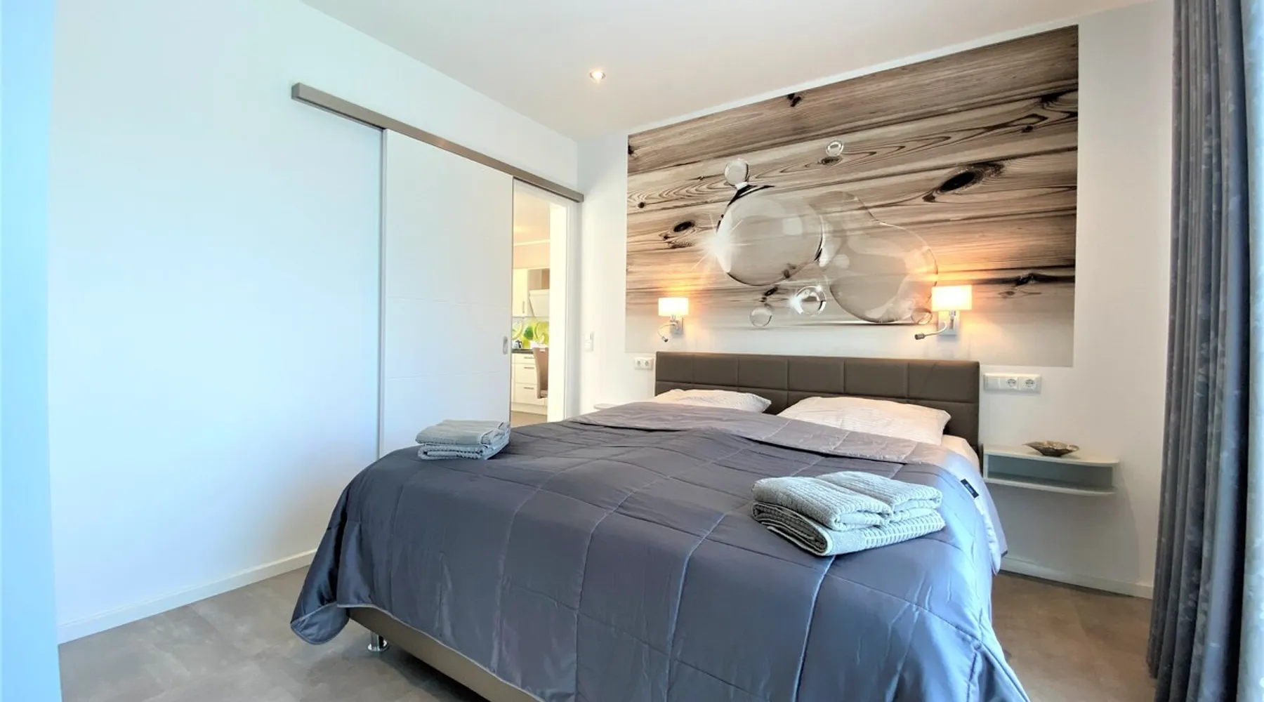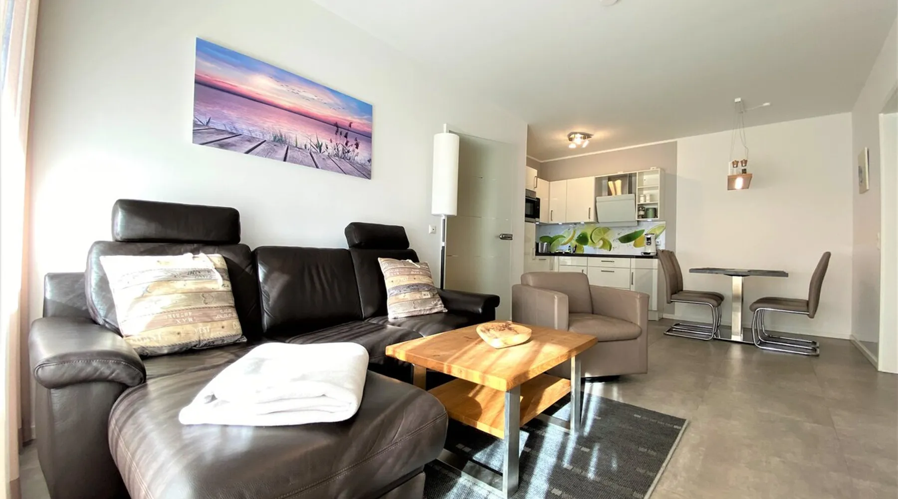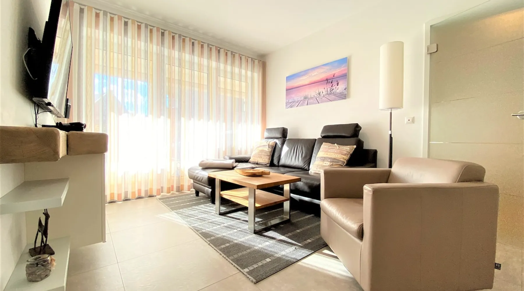 "Seal nest" – What is it? It is an artistic name for an artfully furnished apartment, which combines the seemingly incompatible - clear lines, state-of-the-art technical equipment and cohesive design, combined with a decent shot of comfort and a lot of nest warmth for 2 to max. 4 people. Other things to note Immerse yourself and enjoy the most beautiful time of the year in a stylish ambience with that certain something. Here you will find everything for a perfect holiday, from 55" 4K TVs to top kitchen designs, from box spring beds to state-of-the-art 3D electric fireplaces. From the entrance area with a special cloakroom, you go straight to the right into the stylish shower room with daylight and a large, walk-in summer rain shower. The heart of the apartment is the harmonious living-dining area with a fully equipped kitchen in a modern design, a dining table with elegant cantilever chairs and a living area that meets the highest standards. If a fresh North Sea breeze should blow outside, a state-of-the-art 3D electric fireplace, paired with an innovative wall-mounted infrared heater, ensures a cosy ambience for dreaming and falling in love at the touch of a button. From the living area, you can then access the large and covered south-facing terrace with four adjustable high-back chairs and an extendable teak table. Of course, a professional gas grill with turbo zone is also available for extensive barbecue evenings. You can sleep deeply and peacefully in the master bedroom with a double box spring bed at a comfortable height. The large wardrobe has plenty of storage space for your luggage. The second bedroom, like the entire ensemble of the Robbennest, offers a lot of sophistication! A single box spring bed and a high-quality wall folding bed ensure optimal use of space with more freedom of movement during the day and sweet dreams at night. Elegant storage areas and the highboard also create enough storage space here. A full HD flat-screen TV with a second Blu-ray player leaves room for separate entertainment. Entire apartment is equipped with fixed fly screens. If you arrive with your dog, there are extra costs of €8.00 per day. Let yourself be surprised by well thought-out details in every corner of the apartment and you will of course also find our little seal! Looking forward to seeing you soon! Dates and facts Additional services available at an additional cost: Towels (1 shower towel + 2 towels) and bed linen on request, intermediate cleaning, towel/bed linen change The accessible 3-room apartment is equipped with underfloor heating, Wi-Fi and smart lighting throughout. Children's travel cot and high chair are provided. For your bikes and e-bikes, there is a bicycle cellar available in the neighboring house. General: 3-room apartment approx. 62 m2, ground floor with large garden, max. 4 people, underfloor heating, Wi-Fi, non-smoking apartment, pets allowed Living room: upholstered furniture with high-quality leather cover and ottoman, leather armchair with swivel function, exclusive 3D electric fireplace with crackling effect, wall panel with integrated infrared heating, Bose soundbar incl. Wi-Fi and Bluetooth, 4K flat-screen TV 55 inches, Blu-ray/DVD player 1st bedroom: double box spring bed in comfort height, large built-in wardrobe, folding suitcase stand, adjustable led reading lamps, cabinet safe with number combination. 2nd bedroom: single box spring bed at comfort height, full wall folding bed, full HD flat TV, Blue-Ray/DVD player, highboard, small library Kitchen: oven at standing height, 4-zone ceramic hob, refrigerator with freezer compartment, bevelled extractor hood, dishwasher, microwave, toaster, kettle, filter coffee machine and Senseo pad machine, branded dishes by Seltmann-Weiden and WMF, dining table with 4 swing chairs small laundry room: washing machine, dryer, shelves, vacuum cleaner, steam iron, ironing board, cleaning utensils, laundry rack, clips Bathroom: spacious bathroom with rain shower, integrated Wi-Fi radio, washbasin with illuminated mirror and high-quality LED cosmetic mirror, towel heating Hallway: Cloakroom with integrated bench and shoe rack Outside features: covered and wind-protected south-facing terrace, outdoor water connection for the "Watt feet", high-quality garden furniture with fleece blankets for cozy evenings on the terrace, gas grill with three burners, incl. Steak Turbozone and additional hob. Car parking space - located in the immediate vicinity of the house