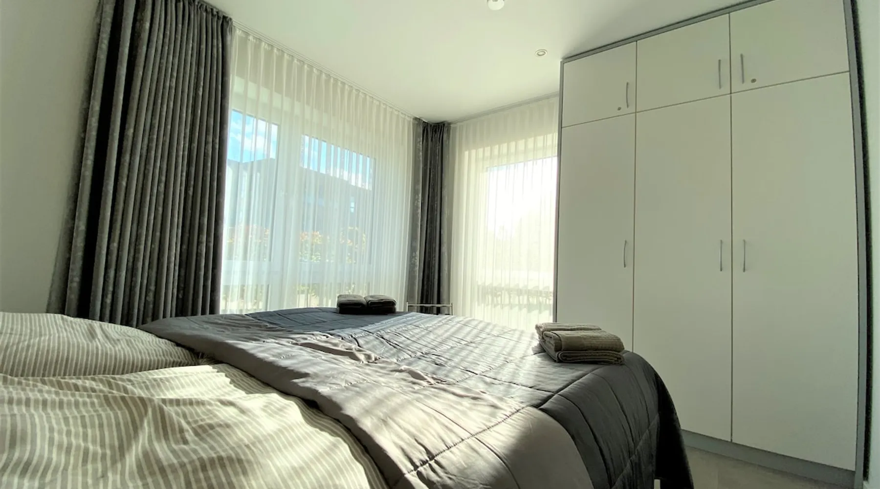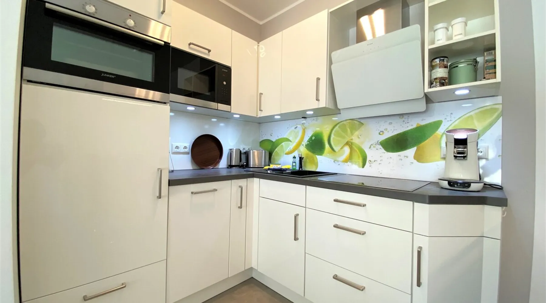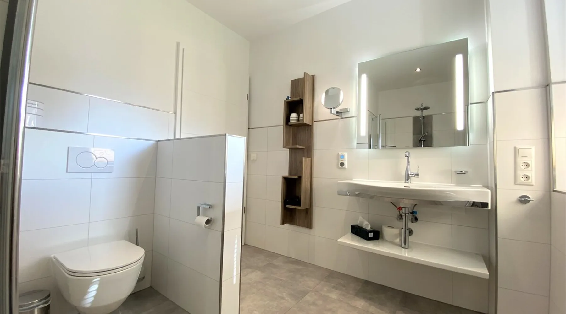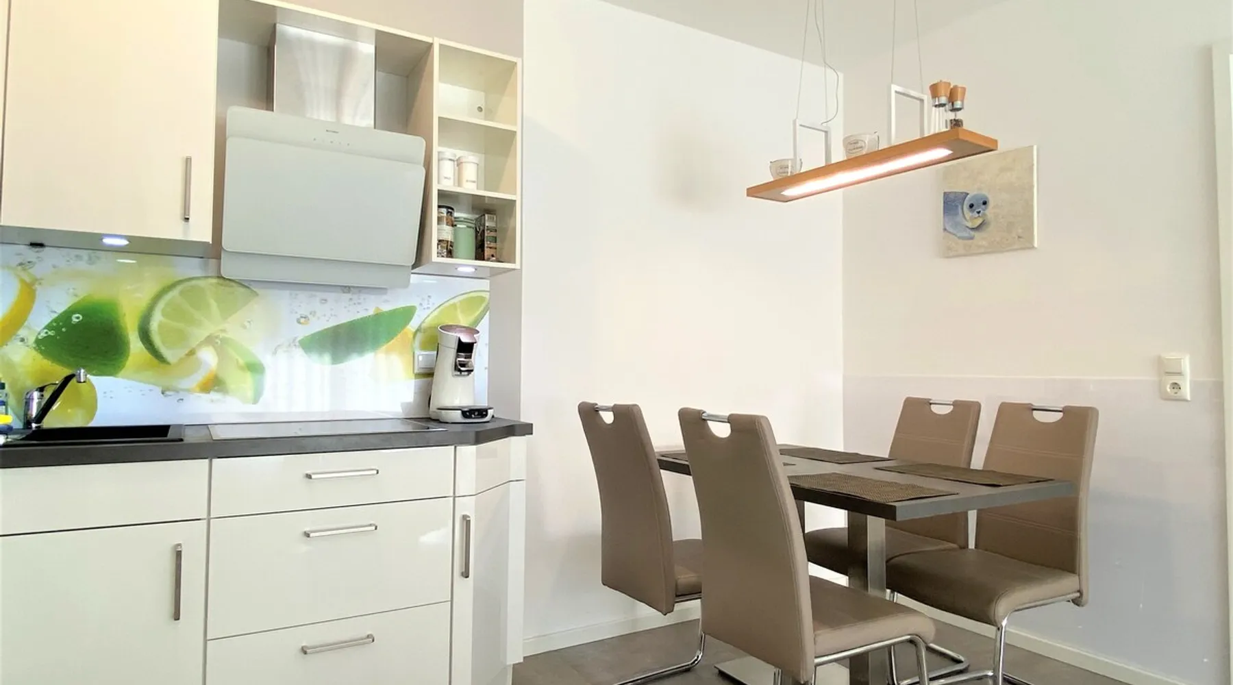 "Seal nest" – What is it? It is an artistic name for an artfully furnished apartment, which combines the seemingly incompatible - clear lines, state-of-the-art technical equipment and cohesive design, combined with a decent shot of comfort and a lot of nest warmth for 2 to max. 4 people. Other things to note Immerse yourself and enjoy the most beautiful time of the year in a stylish ambience with that certain something. Here you will find everything for a perfect holiday, from 55" 4K TVs to top kitchen designs, from box spring beds to state-of-the-art 3D electric fireplaces. From the entrance area with a special cloakroom, you go straight to the right into the stylish shower room with daylight and a large, walk-in summer rain shower. The heart of the apartment is the harmonious living-dining area with a fully equipped kitchen in a modern design, a dining table with elegant cantilever chairs and a living area that meets the highest standards. If a fresh North Sea breeze should blow outside, a state-of-the-art 3D electric fireplace, paired with an innovative wall-mounted infrared heater, ensures a cosy ambience for dreaming and falling in love at the touch of a button. From the living area, you can then access the large and covered south-facing terrace with four adjustable high-back chairs and an extendable teak table. Of course, a professional gas grill with turbo zone is also available for extensive barbecue evenings. You can sleep deeply and peacefully in the master bedroom with a double box spring bed at a comfortable height. The large wardrobe has plenty of storage space for your luggage. The second bedroom, like the entire ensemble of the Robbennest, offers a lot of sophistication! A single box spring bed and a high-quality wall folding bed ensure optimal use of space with more freedom of movement during the day and sweet dreams at night. Elegant storage areas and the highboard also create enough storage space here. A full HD flat-screen TV with a second Blu-ray player leaves room for separate entertainment. Entire apartment is equipped with fixed fly screens. If you arrive with your dog, there are extra costs of €8.00 per day. Let yourself be surprised by well thought-out details in every corner of the apartment and you will of course also find our little seal! Looking forward to seeing you soon! Dates and facts Additional services available at an additional cost: Towels (1 shower towel + 2 towels) and bed linen on request, intermediate cleaning, towel/bed linen change The accessible 3-room apartment is equipped with underfloor heating, Wi-Fi and smart lighting throughout. Children's travel cot and high chair are provided. For your bikes and e-bikes, there is a bicycle cellar available in the neighboring house. General: 3-room apartment approx. 62 m2, ground floor with large garden, max. 4 people, underfloor heating, Wi-Fi, non-smoking apartment, pets allowed Living room: upholstered furniture with high-quality leather cover and ottoman, leather armchair with swivel function, exclusive 3D electric fireplace with crackling effect, wall panel with integrated infrared heating, Bose soundbar incl. Wi-Fi and Bluetooth, 4K flat-screen TV 55 inches, Blu-ray/DVD player 1st bedroom: double box spring bed in comfort height, large built-in wardrobe, folding suitcase stand, adjustable led reading lamps, cabinet safe with number combination. 2nd bedroom: single box spring bed at comfort height, full wall folding bed, full HD flat TV, Blue-Ray/DVD player, highboard, small library Kitchen: oven at standing height, 4-zone ceramic hob, refrigerator with freezer compartment, bevelled extractor hood, dishwasher, microwave, toaster, kettle, filter coffee machine and Senseo pad machine, branded dishes by Seltmann-Weiden and WMF, dining table with 4 swing chairs small laundry room: washing machine, dryer, shelves, vacuum cleaner, steam iron, ironing board, cleaning utensils, laundry rack, clips Bathroom: spacious bathroom with rain shower, integrated Wi-Fi radio, washbasin with illuminated mirror and high-quality LED cosmetic mirror, towel heating Hallway: Cloakroom with integrated bench and shoe rack Outside features: covered and wind-protected south-facing terrace, outdoor water connection for the "Watt feet", high-quality garden furniture with fleece blankets for cozy evenings on the terrace, gas grill with three burners, incl. Steak Turbozone and additional hob. Car parking space - located in the immediate vicinity of the house