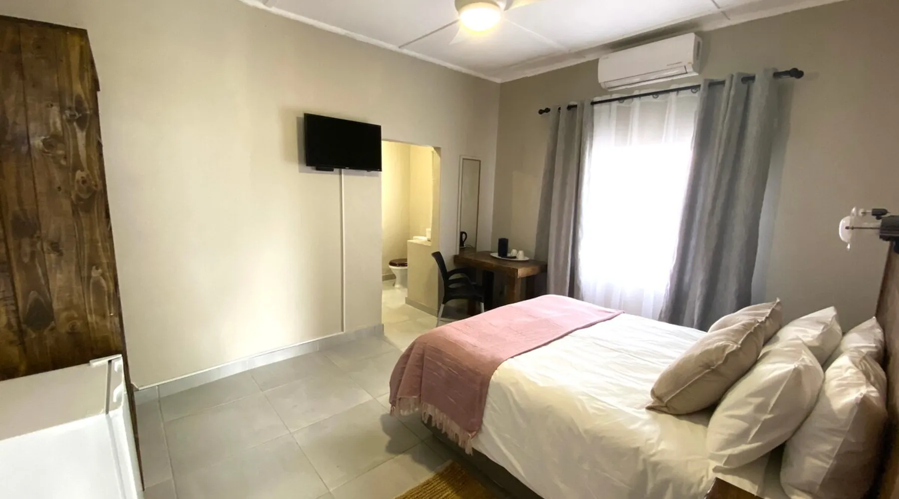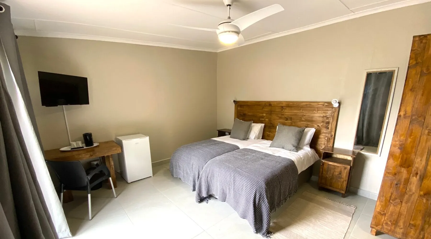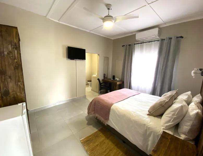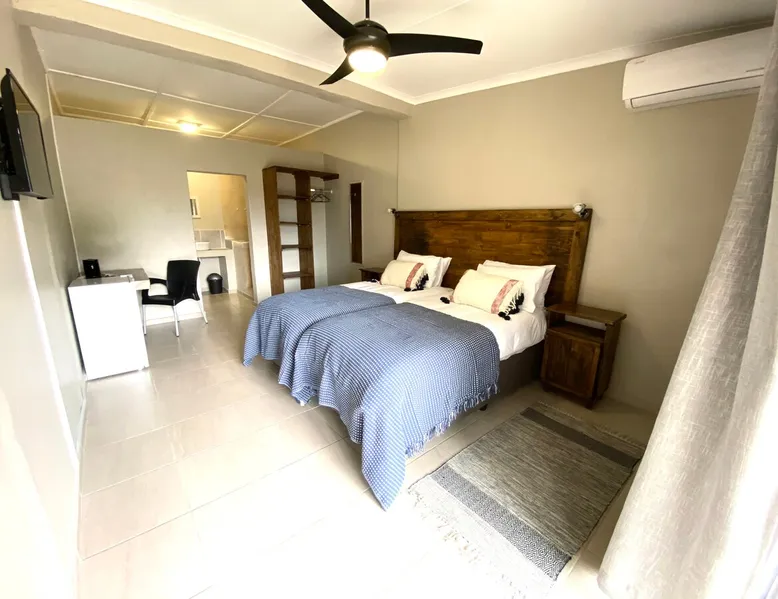 Kleinplaas Guesthouse is a peaceful guesthouse with a “farm” atmosphere. We are located near Pongola on the N2 road between Gauteng and KwaZulu-Natal. We have 7 private air-conditioned rooms with en-suite bathrooms, DSTV and bar fridge. Facilities available within a 6km includes restaurants and fuel stations, bird watching, conference centres, a nine-hole golf course, squash, bowls & tennis. This is an absolute must stay stop over to your next destination. The space Kleinplaas Guesthouse have big enough parking for trailers and caravans for your stop over to your holiday destination. Other things to note Located in Pongola, 8 km from Pongola Shopping Centre, Kleinplaas Guesthouse offers accommodation with free parking. The rooms come with air conditioning, a TV, a barfridge, a kettle, a shower and a wardrobe. We have a fully equipped kitchen available for the guest to use as well as a braai-area. Guests at the accommodation will be able to enjoy activities in and around Pongola, like cycling, fishing, golf and bird watching.