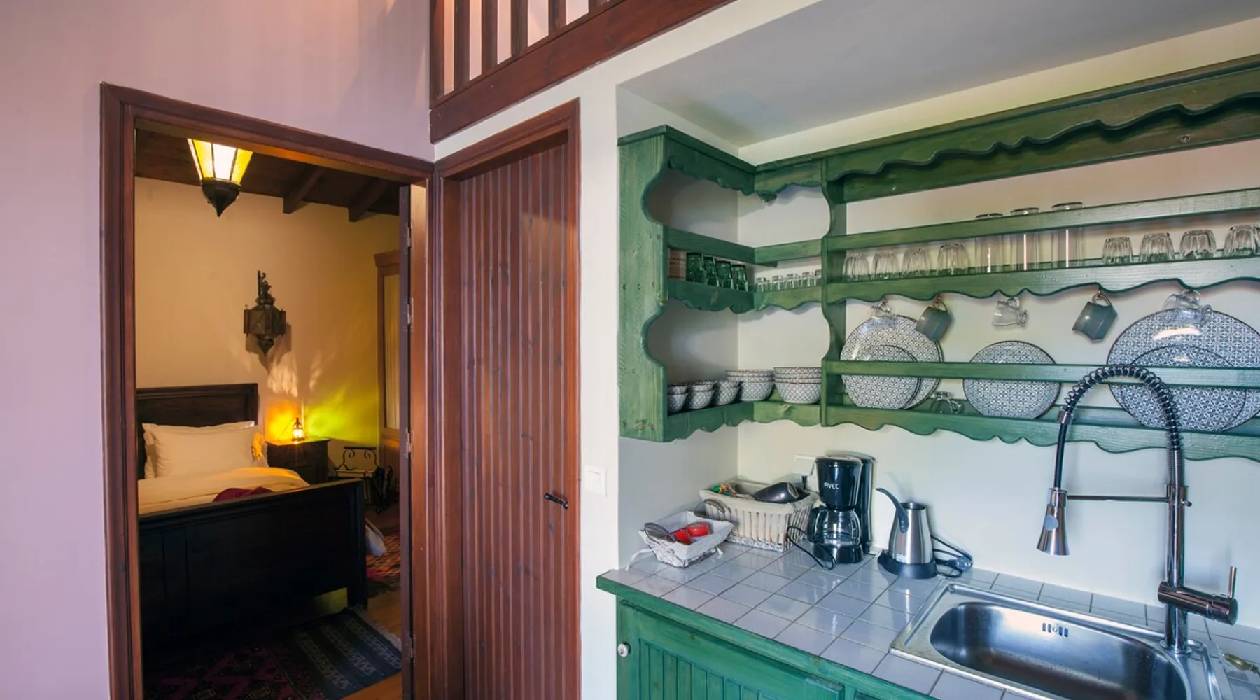 Welcome to Dandy Villas Amfiklia. A mountain full of myths, nymphs & fairies, mythical heroes & powerful personalities. Dandy on the Hill in Amfiklia, consists of 2 buildings: A two storey traditional residence of Roumeliotikos Mansion, Pasithea 150sqm & a separate self contained guesthouse 70sqm Dafni, on the same plot with communal garden.The large groups can combine the 2 buildings which can accommodate 9 persons in total or stay at Dafnis Passithea or Guesthouse. The space The Daphne guest house in the old days was the cellar and the wood oven of the house. Today it is a renovated autonomous home that can accommodate 3 people. It consists of a bedroom with a double bed, a bathroom with shower, a small traditional kitchenette that sits on a small loft where access is made by a staircase , there is a single bed that can accommodate one person. The kitchenette is fully equipped with all the necessary utensils and appliances so you can cook at home. In the same area there is the lounge area for warm moments with your friends by the fireplace. The guest house, while respecting the tradition and history of the place, has maintained the local finesse of the residences. With details in shades of red, green, plaid, woven, handmade carpets, kitchen utensils hanging in the kitchen reminiscent of a nostalgic season. Inside the courtyard but also inside the houses. The guest get in touch with the tradition and culture of the area, seeing utensils - tools of the Roumeliotiki daily routine in the 18th, 19th and early 20th centuries. The courtyard area of 300 square meters is an open-air garden with trees, various plants and herbs that thrive in the area of Parnassos. Among other things is a rock garden that illuminates when the sun falls creating a warm atmosphere. Exploring the garden you will find a pomegranate. There they say that the fairy of the house is hiding. Grab a pomegranate and make a wish. The oracle says it will happen. If you are lucky you can taste its fruits. In the open air there are benches of tree trunks intended for you that you like "inside" but you are "outside" as well. All season the garden is a small gem in the house. Other things to note The house consists of 2 buildings which can be rented individually. Only then can the courtyard be shared with other visitors. In any other case the space is private. Registration Details 00001131660