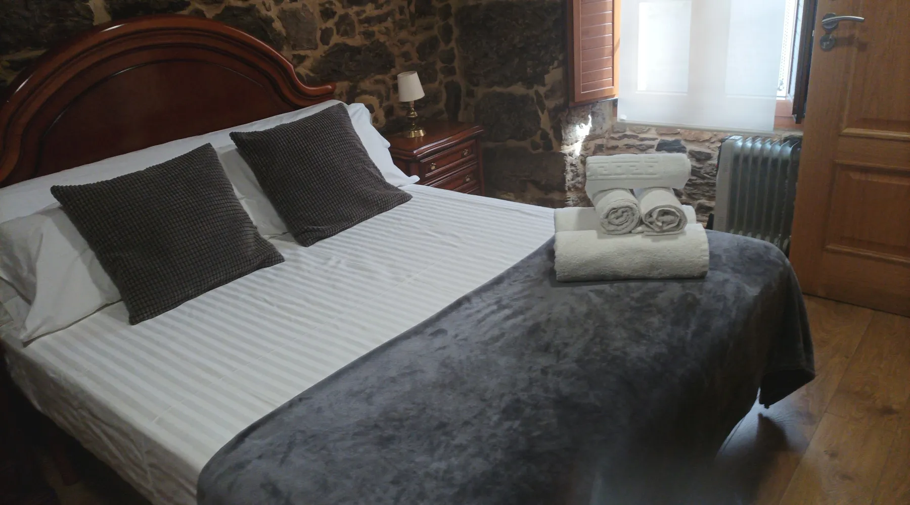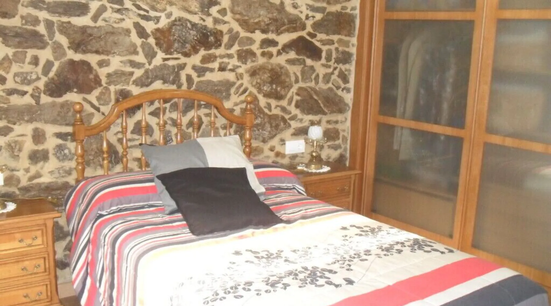 Stone cottage view, the entire property is rented. The main access door is common for the house on the second floor (private). FIRST FLOOR BEDROOM 1, 1.50 x 1.90 bed with full and independent bathroom in the hallway, next door to the bedroom. BEDROOM 2, 1.50 x 1.90 bed, with full and independent bathroom inside the bedroom. As an annex to BEDROOM 2, living room of 20 M2, with a sofa bed of 1.40 x 1.90. BEDROOM 3, 1.50 x 1.90 bed, with full and independent bathroom and located on the GROUND FLOOR. Fully equipped kitchen, utensils, microwave, dishwasher, refrigerator, washing machine, iron, dryer, and dining room of 90 M2, It also has a garden, barbecue, swimming pool.