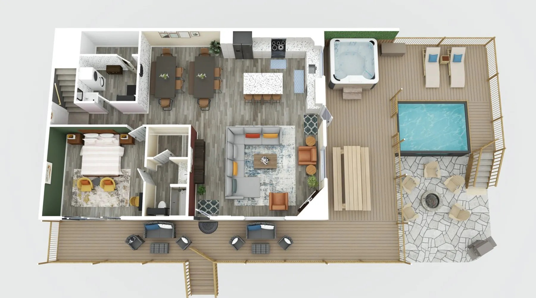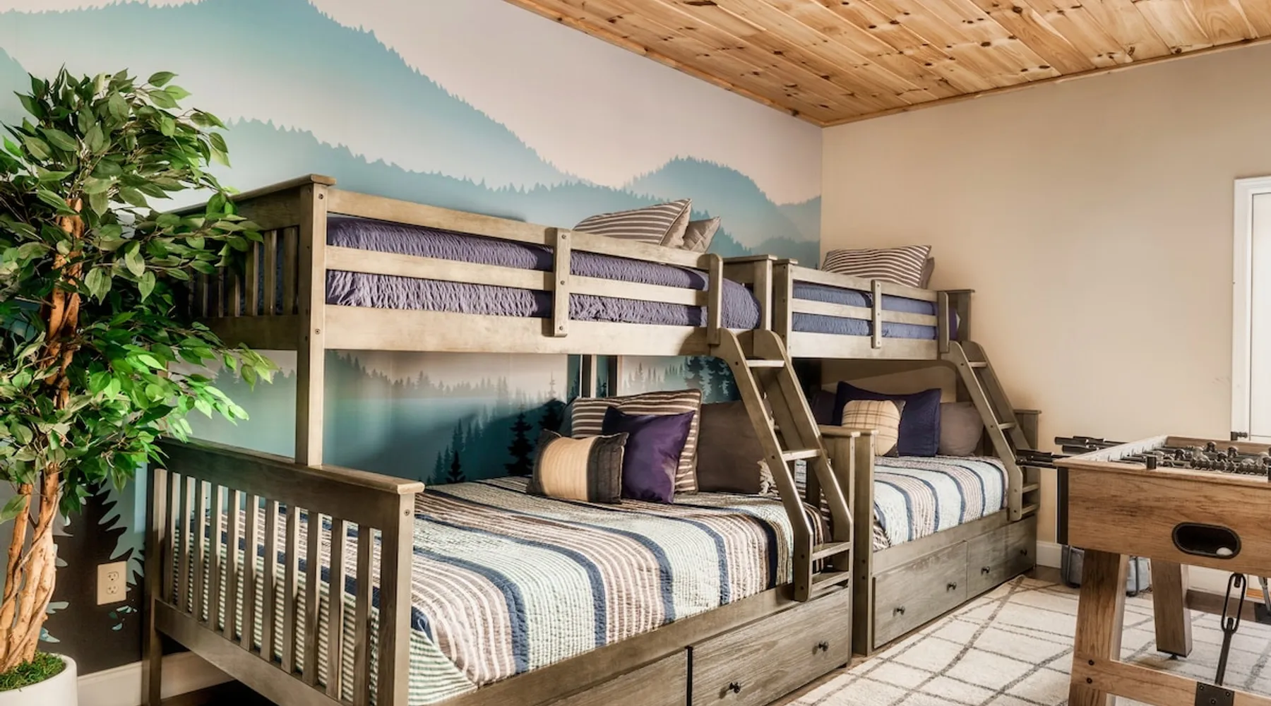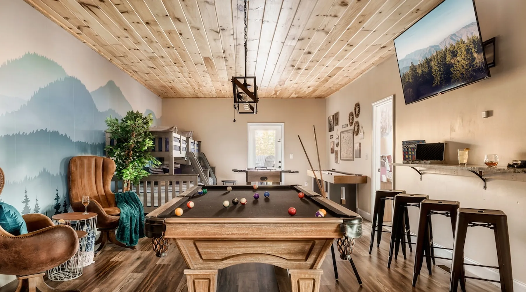 Welcome to Chalet Vista, your Smoky Mountain Headquarters! ⛰️ Spectacular 180-degree Smoky Mountain Views 🏊 Private Heated Pool with Free pool heating! 🎱 Game Room (Pool Table, Foosball, Shuffleboard, Pinball) 🔌 220v EV Charger Outlet (please bring your own adapters) 🛜 Ultra-Fast 1gb Internet Plan 🚗 10 min to Gatlinburg Strip & Anakeesta 🥾 15 min to National Park entrance 🎡 20 min to Dollywood ❤️ Click the Heart in the top right to add to your favorites! The space Welcome to Chalet Vista – Your Smoky Mountain Retreat ---Overview--- Experience an unforgettable getaway to the Smoky Mountains with Chalet Vista, a luxurious 3-bedroom cabin in North Chalet Village. With its breathtaking mountain views, premium amenities, and proximity to downtown Gatlinburg, Chalet Vista offers the perfect retreat for families or groups of friends. Accommodating up to 12 guests, this property promises cherished memories in an unparalleled setting. ---Main Living Area--- The heart of Chalet Vista is its open-layout great room. Here, you’ll find: Living Room: Relax on the oversized sectional sofa in front of the electric fireplace. Large windows frame stunning mountain vistas. Kitchen: A fully stocked kitchen with newer appliances, a spacious island, and bar seating ensures all your culinary needs are met. Dining Area: Two dining tables provide ample space for meals or gatherings. Utility Room: Convenient laundry and a half-bathroom are located nearby. ---Outdoor Decks--- Main Level Deck: Step outside and immerse yourself in nature with these highlights: - Recessed Mod Pool - Large hot tub - Custom dining table with bench seating - Lounge chairs - Firepit for cozy evenings - Charcoal grill for barbecues - Bistro lights for a magical ambiance Upper-Level Deck: Elevate your outdoor experience with: - Expansive sectional sofa - Swivel chairs for panoramic views - High-top bar table with chairs - Access from Bedrooms 2 and 3 via sliding glass doors ---Bedrooms--- Each of Chalet Vista’s bedrooms offers: - King Bed: Luxurious comfort for restful nights - Ensuite Bathroom: Privacy and convenience - Mounted Roku TV: Entertainment at your fingertips - Sliding Glass Doors: Direct access to mountain views - Desk: For those pesky emails Bedroom Layout: - Bedroom 1: Located on the main level - Bedrooms 2 & 3: Situated on the second level, with deck access Additional sleeping arrangements include: - Two twin-over-full bunk beds (second level) - Sleeper sectional sofa in the living room ---Game Room--- The second floor boasts a game room packed with fun: - Pool table - Foosball table - Shuffleboard table - Digital pinball machine with hundreds of games - Granite bar top - Large TV ---Community Amenities--- Your stay includes access to Chalet Village’s three clubhouses: - Chalet Village North - Chalet Village Alpine - Chalet Village South Each clubhouse features unique amenities. Be sure to check their availability prior to your stay. ---Location--- Situated just minutes from downtown Gatlinburg, Chalet Vista places you close to: - The iconic Gatlinburg strip - Scenic hiking trails - Popular restaurants and nightlife - Nearby attractions in Pigeon Forge (The Island and Dollywood), Sevierville, The Arts and Crafts District, and Wears Valley Book Your Stay today! Don’t miss out on your dream Smoky Mountain vacation. Reserve your stay at Chalet Vista today and create memories to last a lifetime! Guest access Guest have access to the entire home and the driveway. We have a private driveway for 3-4 cars. Other things to note We do recommend vehicles with all-wheel drive during the Winter months!