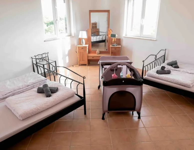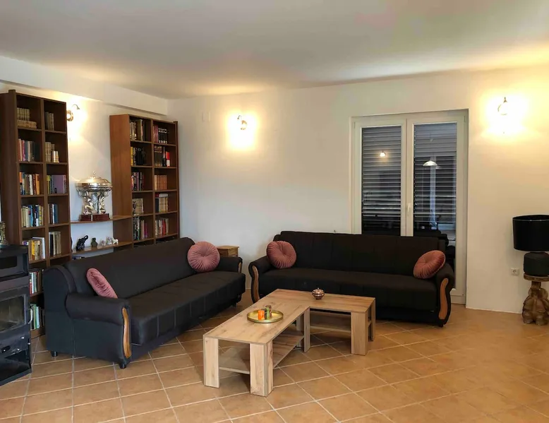 Large villa with adjacent beautiful olive grove. The entire property is almost 3000sqm. The large wine cellar invites you to great social evenings. An exit leads to the large terrace with pool and barbecue. The bedrooms and bathrooms are currently being renovated. You are looking for peace and relaxation then you have come to the right place with us. The space The villa, with garden and olive grove are completely available for use Guest access The complete villa with outdoor area