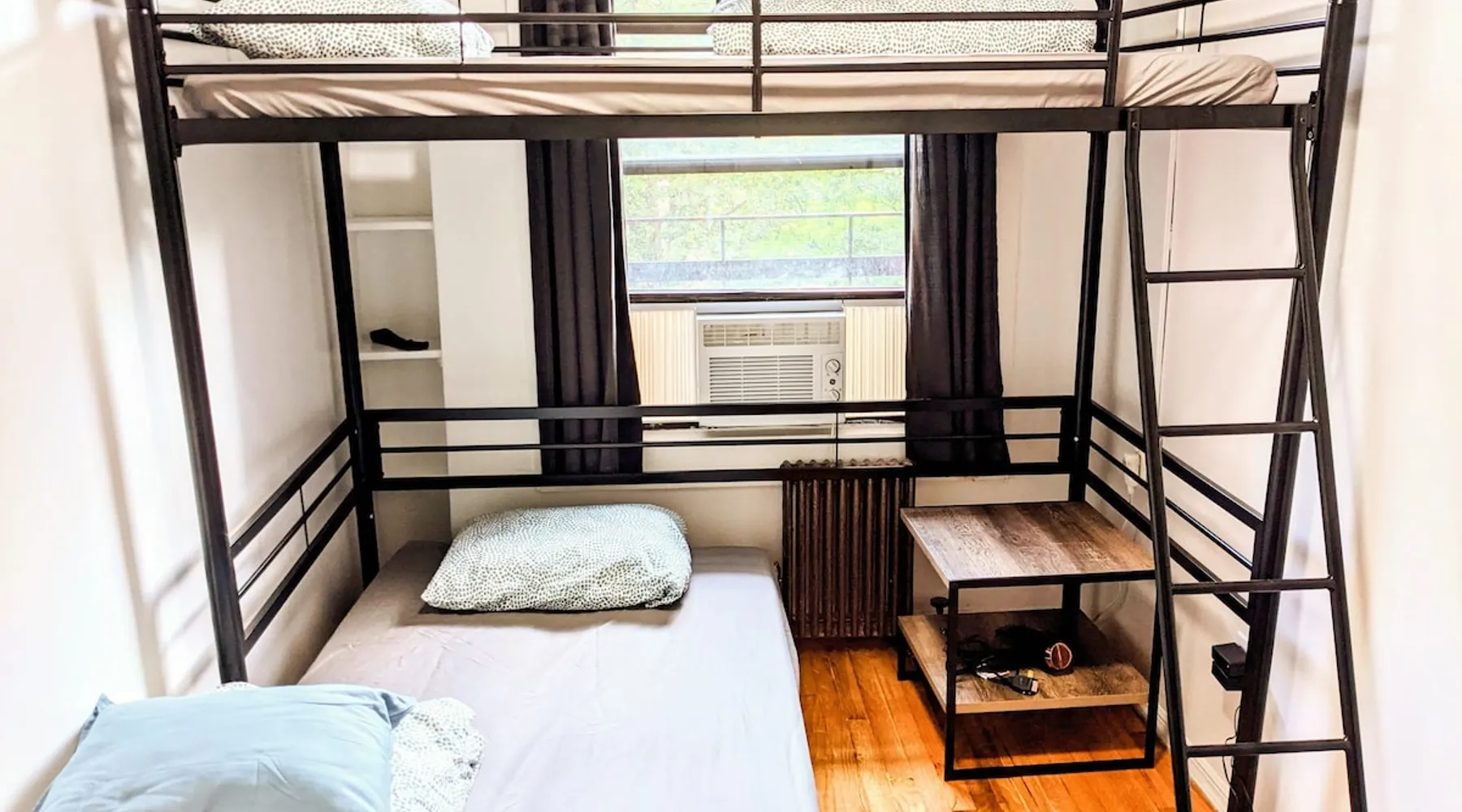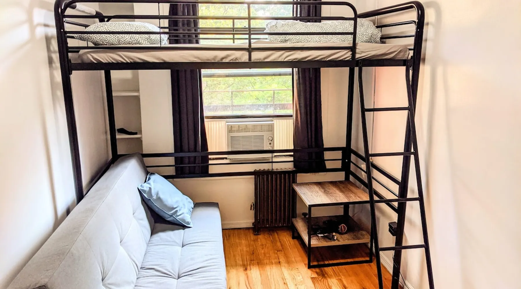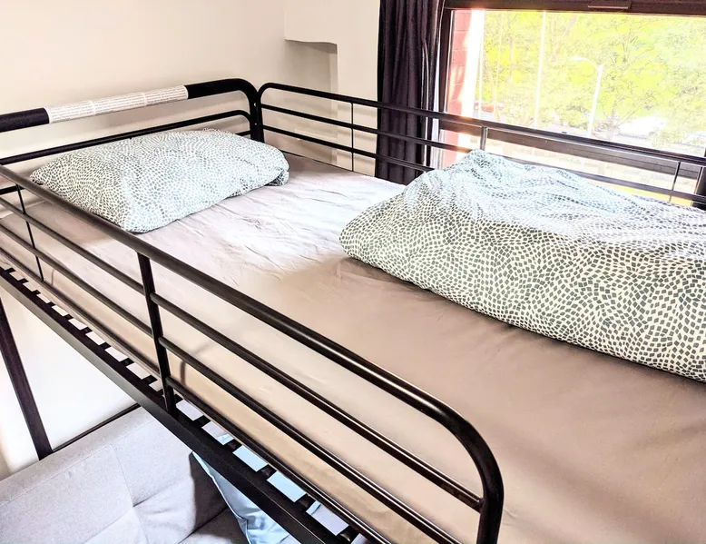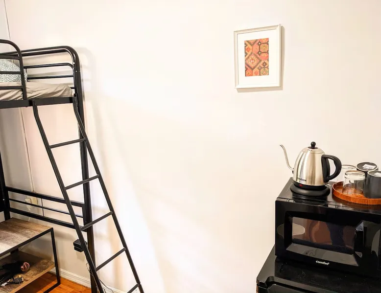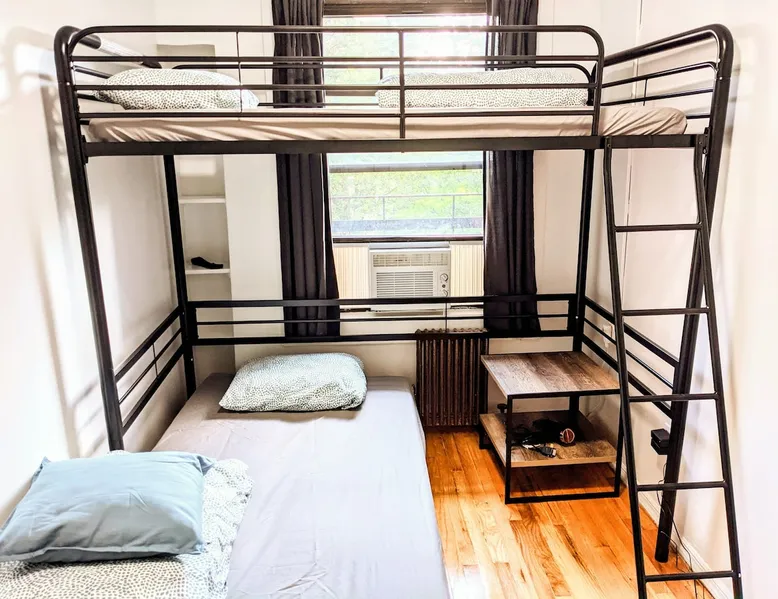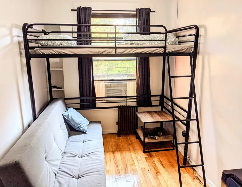 Thank you for your interest. I am able to provide services because my guests keep the room quiet, clean, and get along well with other guests, which keeps operating costs low. Who do you recommend? What kind of room? See below! The space --Room-- •Twin over twin bunkbed • Bedrooms are private • Linens, bath towels, hairdryer available. • The shower and toilet are in a shared hallway • Stairs only (Rooms are on the 4th floor) • Please prepare your own shampoo, conditioner, and toothbrush. • Self check-in. • Free street parking is allowed (Except Mondays and Thursdays from 11am-12:30pm) If you book this room for one person, the sofa bed will be prepared as a sofa. If you prefer to sleep on the sofa bed, we will prepare the sofa bed as a bed as well, so please let us know in advance. --My other listings-- https://www.airbnb.com/users/408979935/listings If you have any questions, please feel free to contact me:) Guest access #From Stations -Penn Station (The A, C, E, 1, 2, 3 Lines) : 7 minutes walk -28th St Station (The 1 Line) : 5 minute walk #From Airports -LaGuardia Airport : About 50 minutes by subway and bus -JFK Airport : 50 minutes to 1 hour by subway and Airtrain -Newark Liberty Airport : About 1 hour by train or bus from (30~40 minutes by Taxi from each airport. Depends on road congestion) #From Bus terminal -Port Authority Bus Terminal : Around 10 minutes by bus or subway. 13 minutes on foot. #Parking -Free street parking is allowed (Except Mondays and Thursdays from 11am-12:30pm) Registration details Exempt