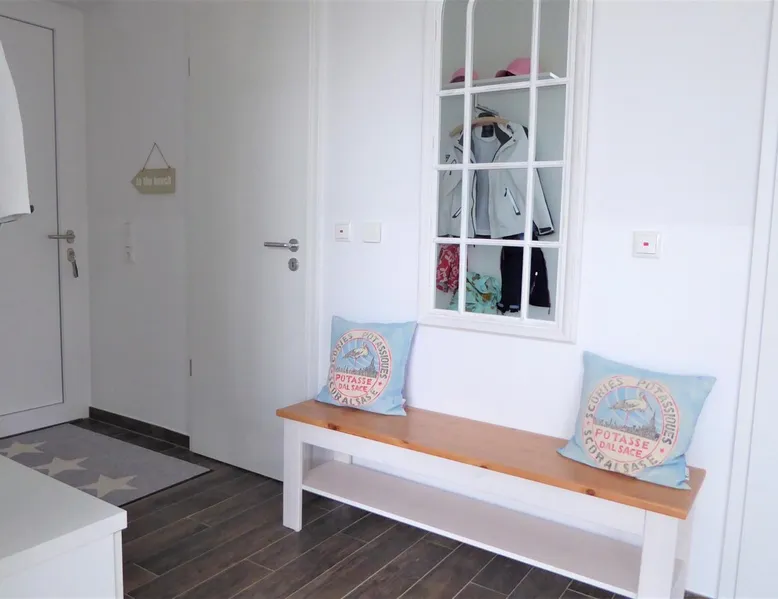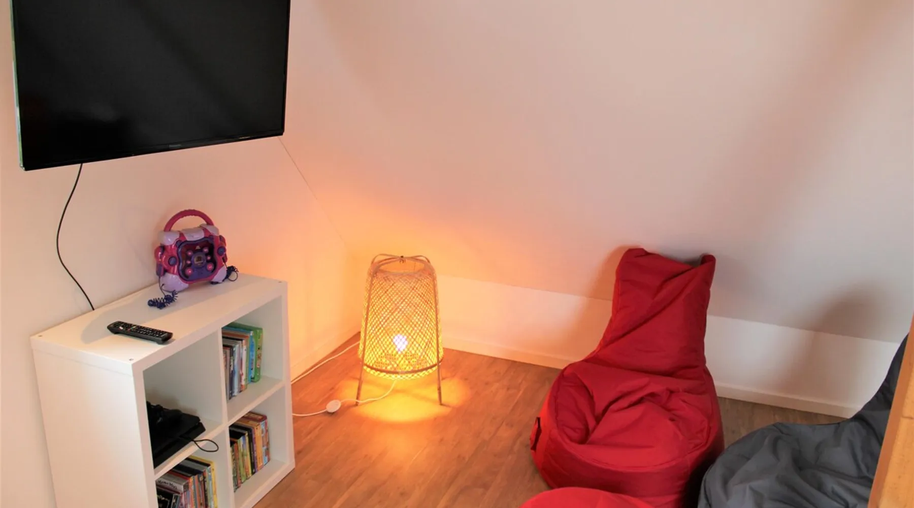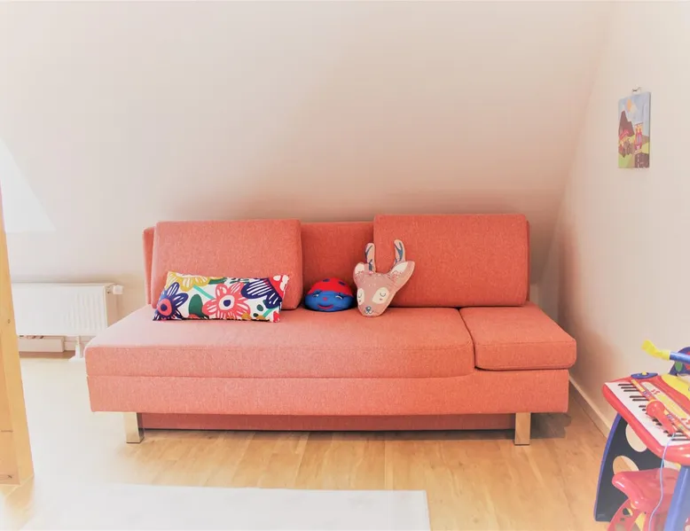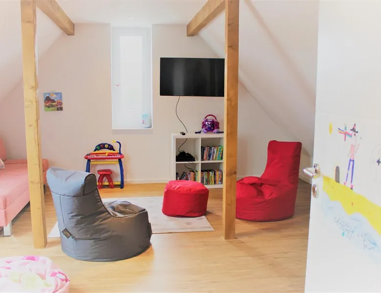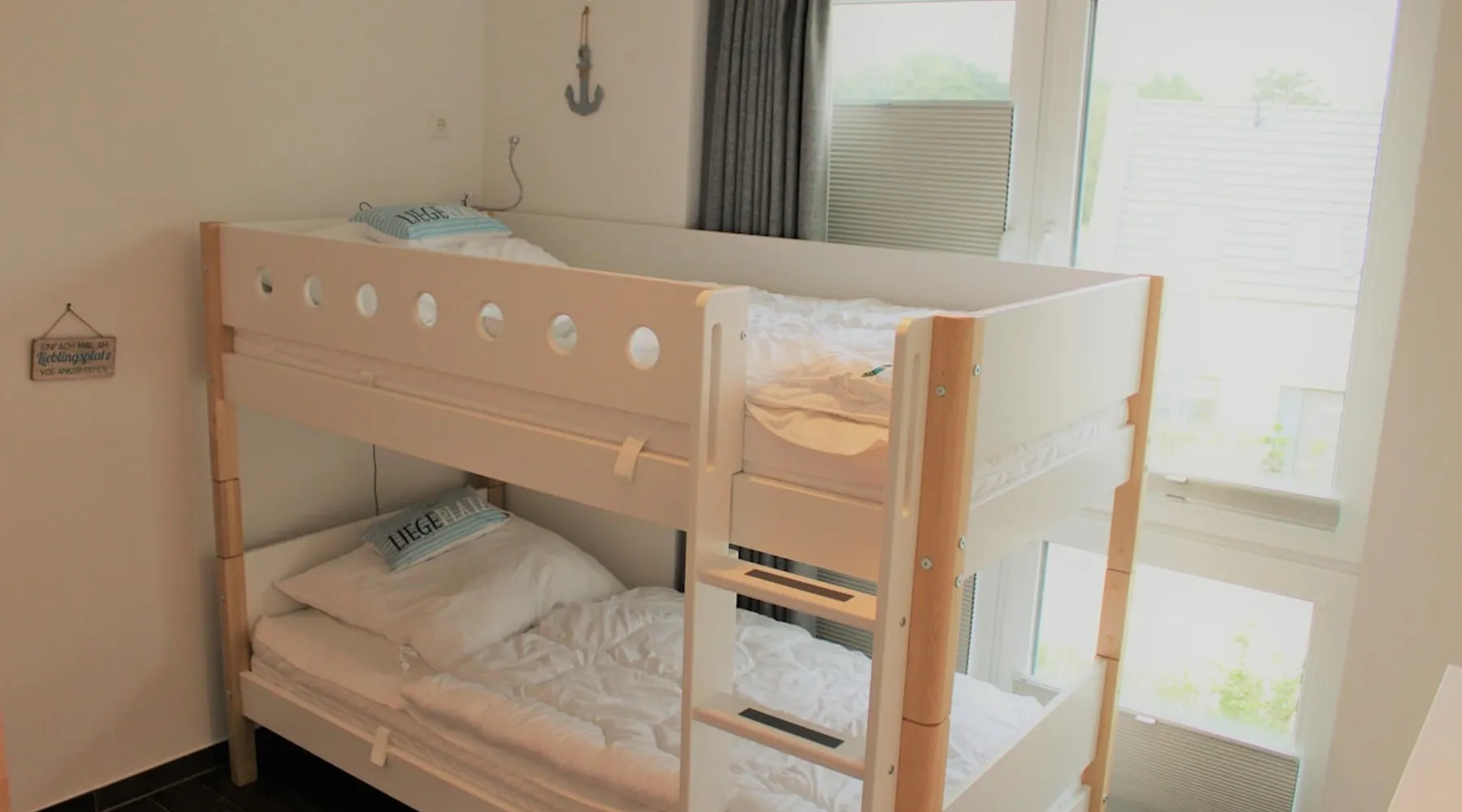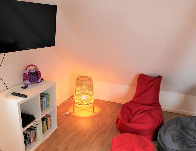 Enjoy our cozy, family-friendly fehnhuus on the beautiful Wadden Sea! Other things to note We, family Dirks, wish you a wonderful, relaxing stay in Dangast. Make yourself at home and unwind! Spend a fantastic holiday for two in Fehnhuus, as a family or friends! We warmly welcome you to the North Sea Park Dangast. Dates and facts: General: house approx. 119 m², 6 people, free parking space, underfloor heating, Wi-Fi, private bicycle storage room, non-smoking apartment, animal-free, allergy-friendly Living-dining room: coach, armchairs, flat screen TV, reception of German-language TV programs (satellite system), gas fireplace Kitchen and household: Fitted kitchen, fridge/freezer, 4-zone ceramic hob, oven, oven, extractor hood, microwave, dishwasher, coffee maker, toaster, kettle, high-quality crockery and cutlery, radio Bedroom 1: double bed (dimensions: 180 x 200 cm),bedside tables, wardrobe, laundry basket, TV Bedroom 2: double bed (dimensions: 180 x 200 cm),bedside tables, closet, laundry basket, TV Bedroom 3: 1 bunk bed (dimensions: 90 x 200 cm, 120 x 200 cm), closet, toys plus stairs to the games room Play and lounge room in the attic: sofa bed for another two people, flat screen TV, PS4, various games, toys, various children's DVDs Additional children's equipment: children's travel cot and high chair, portable children's seat for the toilet Bathroom and plumbing on the 1st floor: floor-to-ceiling, accessible summer rain shower, bathtub, washbasin system with mirror, toilet, towel heater, hair dryer, towels on request Shower room on the ground floor: floor depth, accessible summer rain shower, vanity system with mirror, toilet Household: vacuum cleaner, various cleaning utensils, drying rack (in the storage room in the hallway), washing machine, dryer Exterior amenities: seating set with table, awning, parking space, barbecue Features: animal-free, child-friendly, smoking only allowed outside Split rooms: 1 living-dining area, 3 bedrooms, 2 bathrooms, 1 rooftop lounge, 1 terrace Additional services possible for an additional fee: Towels (1 shower towel + 2 towels) and bedding on request, intermediate cleaning, towel/linen change