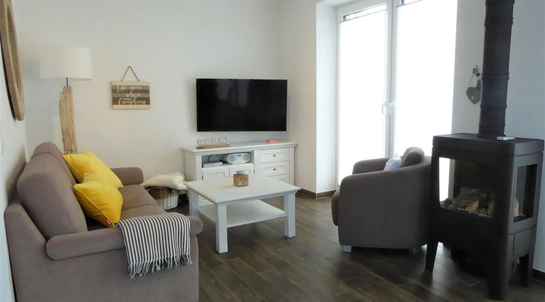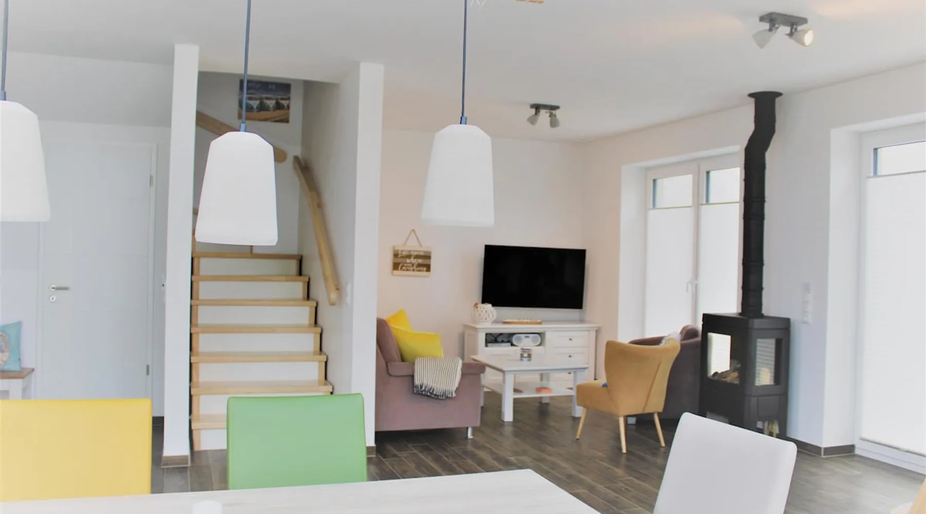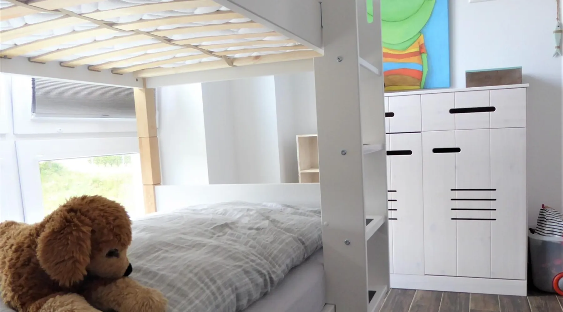 Enjoy our cozy, family-friendly fehnhuus on the beautiful Wadden Sea! Other things to note We, family Dirks, wish you a wonderful, relaxing stay in Dangast. Make yourself at home and unwind! Spend a fantastic holiday for two in Fehnhuus, as a family or friends! We warmly welcome you to the North Sea Park Dangast. Dates and facts: General: house approx. 119 m², 6 people, free parking space, underfloor heating, Wi-Fi, private bicycle storage room, non-smoking apartment, animal-free, allergy-friendly Living-dining room: coach, armchairs, flat screen TV, reception of German-language TV programs (satellite system), gas fireplace Kitchen and household: Fitted kitchen, fridge/freezer, 4-zone ceramic hob, oven, oven, extractor hood, microwave, dishwasher, coffee maker, toaster, kettle, high-quality crockery and cutlery, radio Bedroom 1: double bed (dimensions: 180 x 200 cm),bedside tables, wardrobe, laundry basket, TV Bedroom 2: double bed (dimensions: 180 x 200 cm),bedside tables, closet, laundry basket, TV Bedroom 3: 1 bunk bed (dimensions: 90 x 200 cm, 120 x 200 cm), closet, toys plus stairs to the games room Play and lounge room in the attic: sofa bed for another two people, flat screen TV, PS4, various games, toys, various children's DVDs Additional children's equipment: children's travel cot and high chair, portable children's seat for the toilet Bathroom and plumbing on the 1st floor: floor-to-ceiling, accessible summer rain shower, bathtub, washbasin system with mirror, toilet, towel heater, hair dryer, towels on request Shower room on the ground floor: floor depth, accessible summer rain shower, vanity system with mirror, toilet Household: vacuum cleaner, various cleaning utensils, drying rack (in the storage room in the hallway), washing machine, dryer Exterior amenities: seating set with table, awning, parking space, barbecue Features: animal-free, child-friendly, smoking only allowed outside Split rooms: 1 living-dining area, 3 bedrooms, 2 bathrooms, 1 rooftop lounge, 1 terrace Additional services possible for an additional fee: Towels (1 shower towel + 2 towels) and bedding on request, intermediate cleaning, towel/linen change