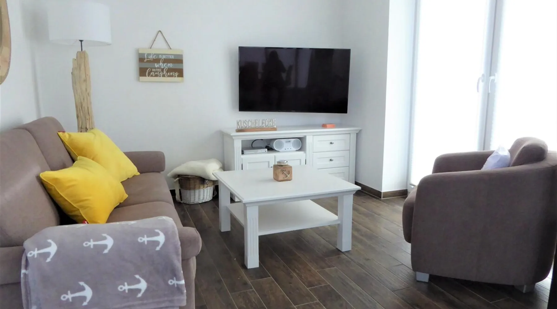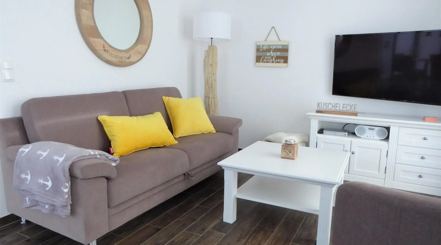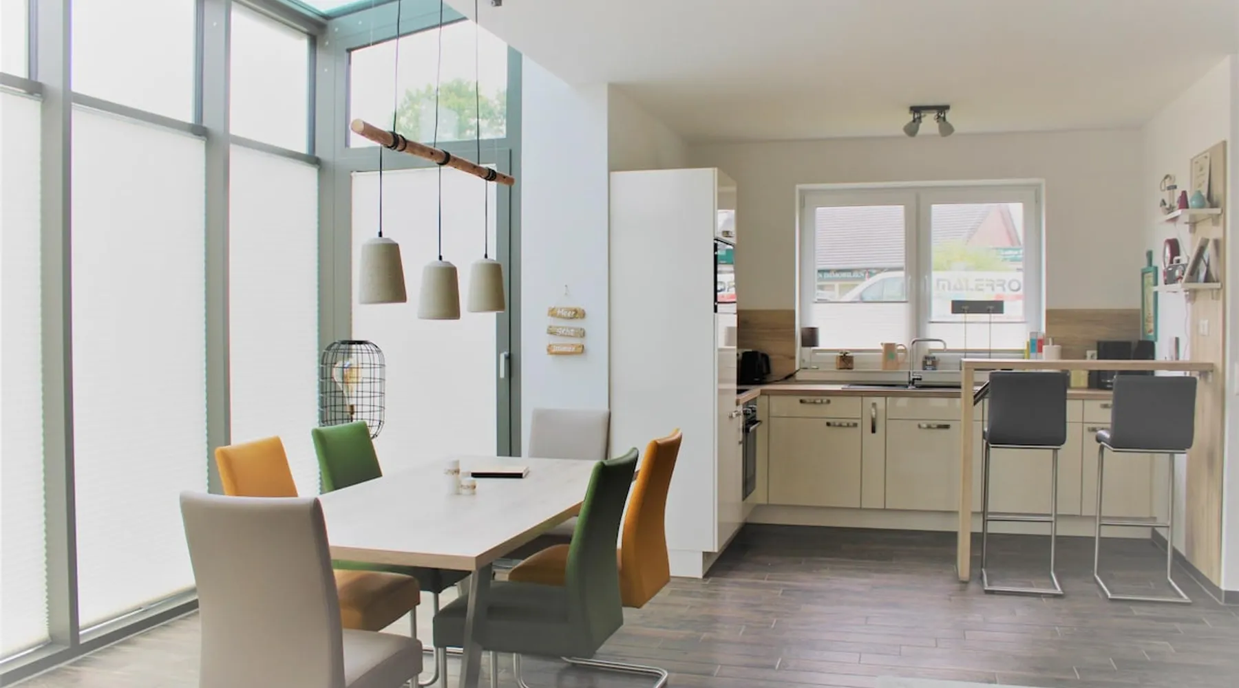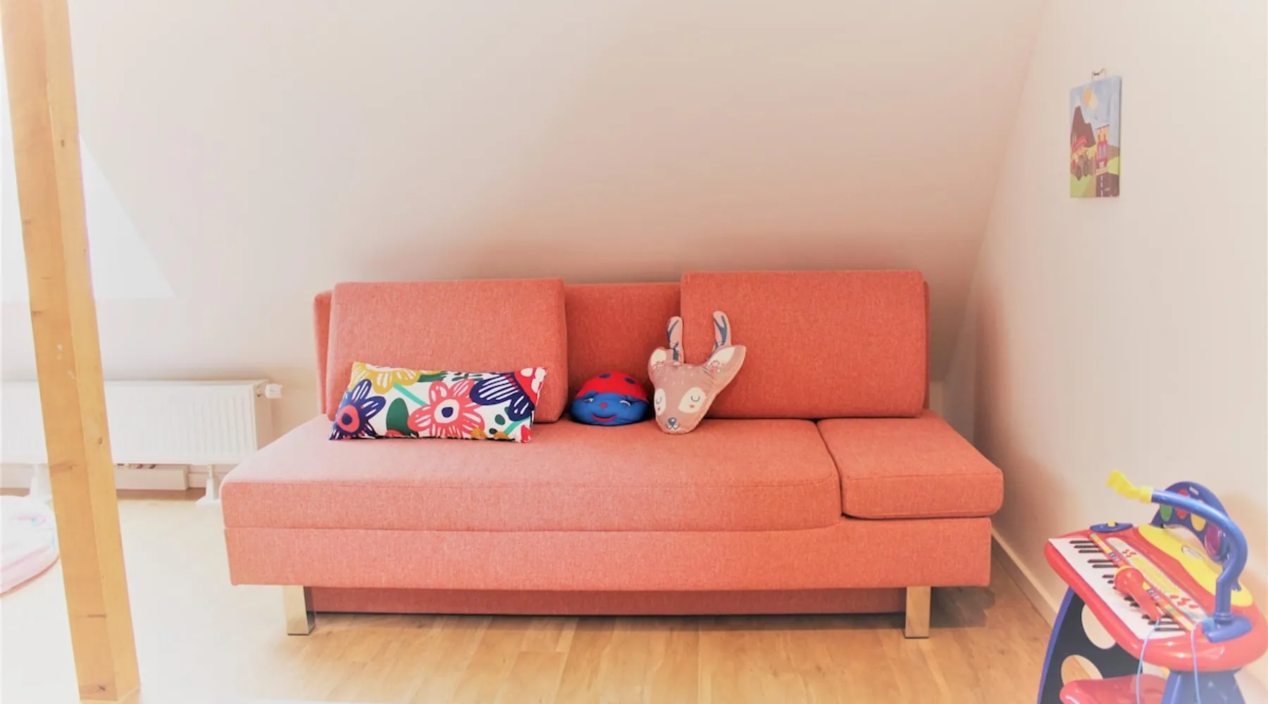 Enjoy our cozy, family-friendly fehnhuus on the beautiful Wadden Sea! Other things to note We, family Dirks, wish you a wonderful, relaxing stay in Dangast. Make yourself at home and unwind! Spend a fantastic holiday for two in Fehnhuus, as a family or friends! We warmly welcome you to the North Sea Park Dangast. Dates and facts: General: house approx. 119 m², 6 people, free parking space, underfloor heating, Wi-Fi, private bicycle storage room, non-smoking apartment, animal-free, allergy-friendly Living-dining room: coach, armchairs, flat screen TV, reception of German-language TV programs (satellite system), gas fireplace Kitchen and household: Fitted kitchen, fridge/freezer, 4-zone ceramic hob, oven, oven, extractor hood, microwave, dishwasher, coffee maker, toaster, kettle, high-quality crockery and cutlery, radio Bedroom 1: double bed (dimensions: 180 x 200 cm),bedside tables, wardrobe, laundry basket, TV Bedroom 2: double bed (dimensions: 180 x 200 cm),bedside tables, closet, laundry basket, TV Bedroom 3: 1 bunk bed (dimensions: 90 x 200 cm, 120 x 200 cm), closet, toys plus stairs to the games room Play and lounge room in the attic: sofa bed for another two people, flat screen TV, PS4, various games, toys, various children's DVDs Additional children's equipment: children's travel cot and high chair, portable children's seat for the toilet Bathroom and plumbing on the 1st floor: floor-to-ceiling, accessible summer rain shower, bathtub, washbasin system with mirror, toilet, towel heater, hair dryer, towels on request Shower room on the ground floor: floor depth, accessible summer rain shower, vanity system with mirror, toilet Household: vacuum cleaner, various cleaning utensils, drying rack (in the storage room in the hallway), washing machine, dryer Exterior amenities: seating set with table, awning, parking space, barbecue Features: animal-free, child-friendly, smoking only allowed outside Split rooms: 1 living-dining area, 3 bedrooms, 2 bathrooms, 1 rooftop lounge, 1 terrace Additional services possible for an additional fee: Towels (1 shower towel + 2 towels) and bedding on request, intermediate cleaning, towel/linen change