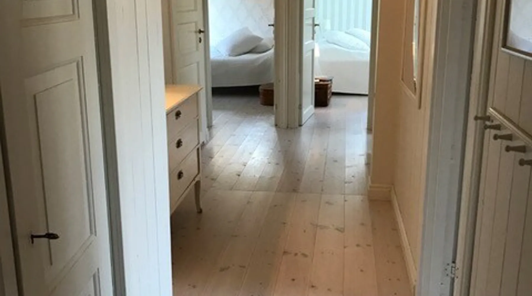 Charming cottage from the early 1900s. Large secluded garden. Living room with fireplace and two built-in beds. 4 bedrooms with 2 beds in each. 1.5 bathrooms. Outside shower with hot water. Small guest cabin with double bed. Veranda with infrared heating. Patio with barbecue. Small mountain at the back of the house overlooking the sea and islands. 30 min drive to Gothenburg and 20 min to Varberg. The space 400 meters to the beach with sand dunes and a marina. On the beach you find a volley ball net, a boule court, swings and a small kiosk. For children it is lots of fun fishing small crabs in the marina. Bicycles available. Bedlinen and towels are not included. An additional cost of 200 SEK/person if you want to add this.