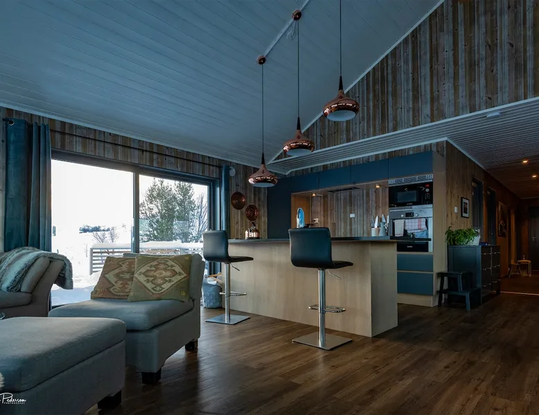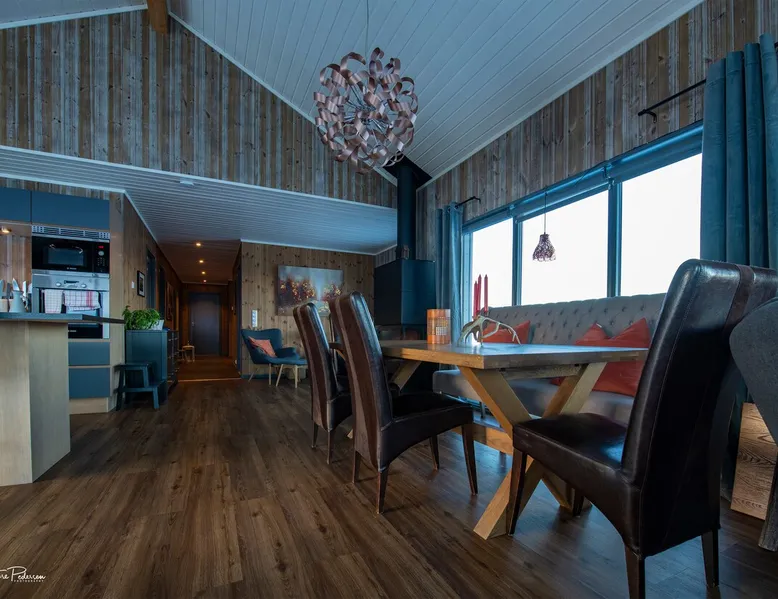 This is a luxurious outdoor experience in raw Finnmark nature or sit inside in the living room watching the northerns lights through the large windows. If you come from abroad, the easiest way to get here is to fly to Alta and rent a car. Getting from Alta to Kokelv is about 2 hours. You can access by car to the front of the entrance area. The house contains 2 bedrooms with king size beds, 1 bedroom with 4 bunk beds and a TV room with a double sofa bed. The space Kokelv has a fantastic nature. It is about 15 min walk from the cabin to the nearest fishing lake. Kokelva runs right outside with the opportunity to fish small trouts. It is 5 min walking distance to the sea. We can arrange boat rentals. For those who want to try their luck with salmon fishing, then Russelva, which is a salmon-carrying river is about 3 km from the cottage. Estimated driving time from nearby areas: Kvalsund - 1 hour Havøysund - 1 hour Lakselv - 1 hour and 20 minutes Hammerfest - 1 hour 30 minutes Honningsvåg - 1 hour and 40 minutes Alta Airport - 1 hour and 50 minutes Times are calculated using google maps. Guest access It is free to use the entire area. Other things to note There are king size beds (180 cm in width) on two of the bedrooms. In the third bedroom there are two family bunks (75/120 cm). The fourth room, which is used as a TV room, is a double sofa bed.