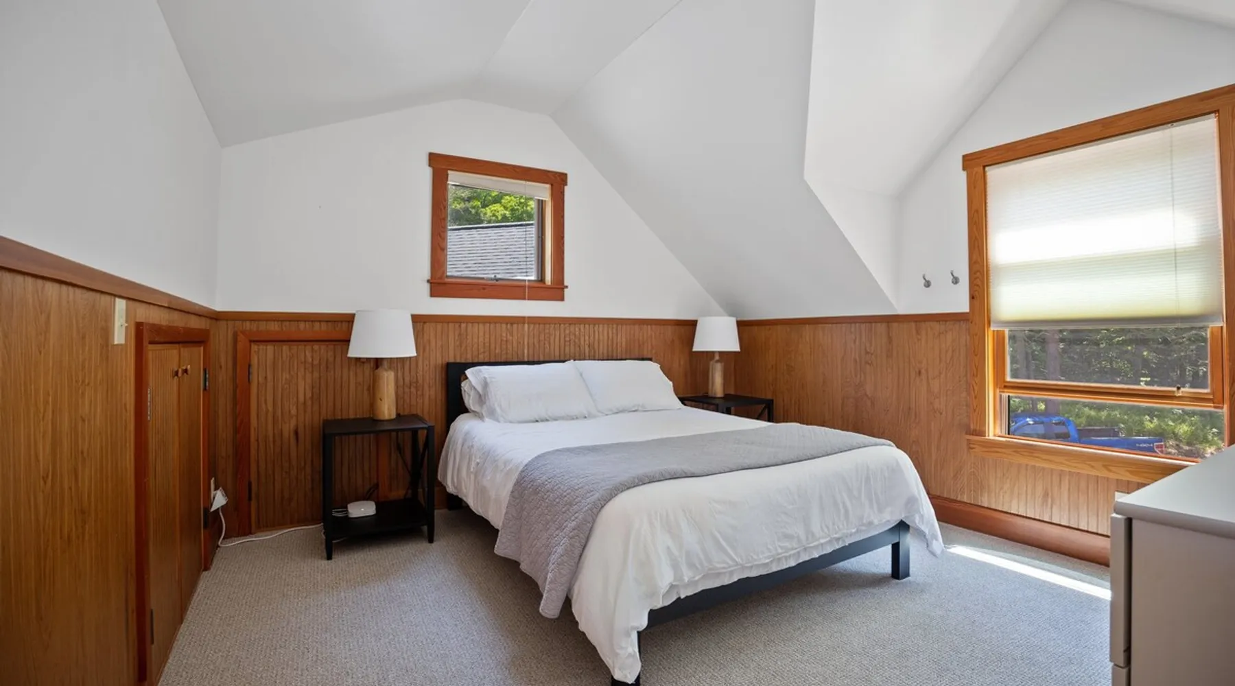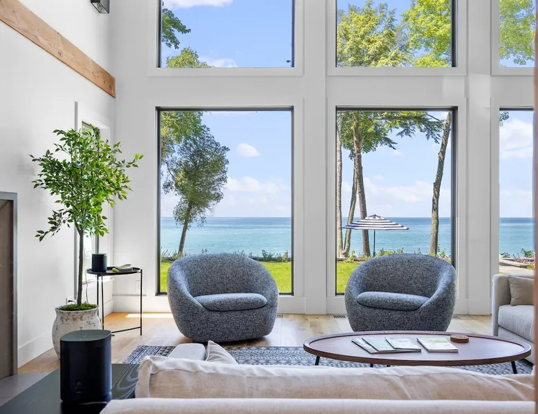 Relax at this beautiful 5-bedroom, 3-bathroom Lakehouse on the shores of Lake Michigan, a true “up north” escape. The main house includes four cozy bedrooms and all three bathrooms, with a spacious fifth bedroom in a private loft above the garage. Private beach access is just steps away, offering peaceful lakefront living. Whether you’re relaxing on the beach, gathered around the firepit, or enjoying the outdoors, our Lakehouse is the perfect retreat for making lasting memories together. The space Escape to this private Lake Michigan home, set along several hundred feet of private shoreline overlooking turquoise waters and direct beach access. This 4,200 SF custom home was fully renovated in 2022. The house features five comfortable bedrooms, a fully equipped kitchen with Miele appliances, a double height living room with a fireplace and oversized windows with panoramic views of Lake Michigan. On the second floor, there is a living room with views of the lake and a separate space to relax. The home has expansive outdoor spaces, including a large deck with a dining table and grill, leading to a large bluestone patio to sit and take in the natural beauty of the lake and surrounding nature. The patio also includes lounge chairs and a fire pit ideal for enjoying lake views or hanging out as a family in the evenings. A few steps will lead you down to a beach where you can swim in the water, walk for miles, or enjoy the paddle boards available to you during your stay. We are always looking to reduce our carbon footprint and find ways to protect the beautiful freshwater that makes Northern Michigan so special. If your car requires EV charging, there is a high speed EV charger in the garage for complimentary use.