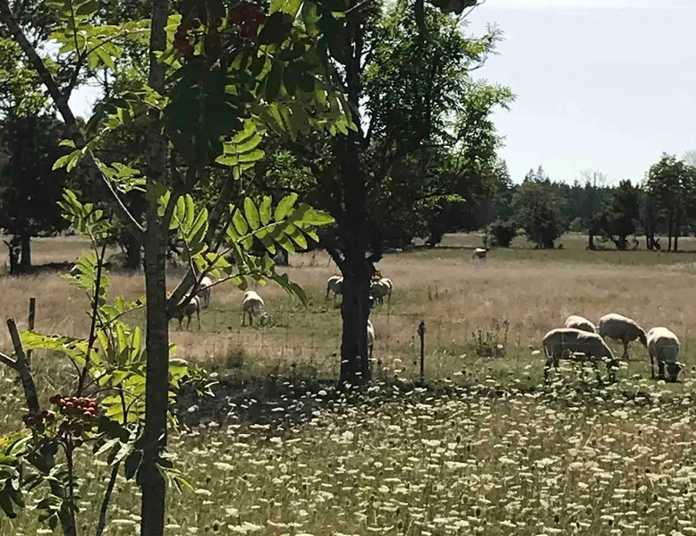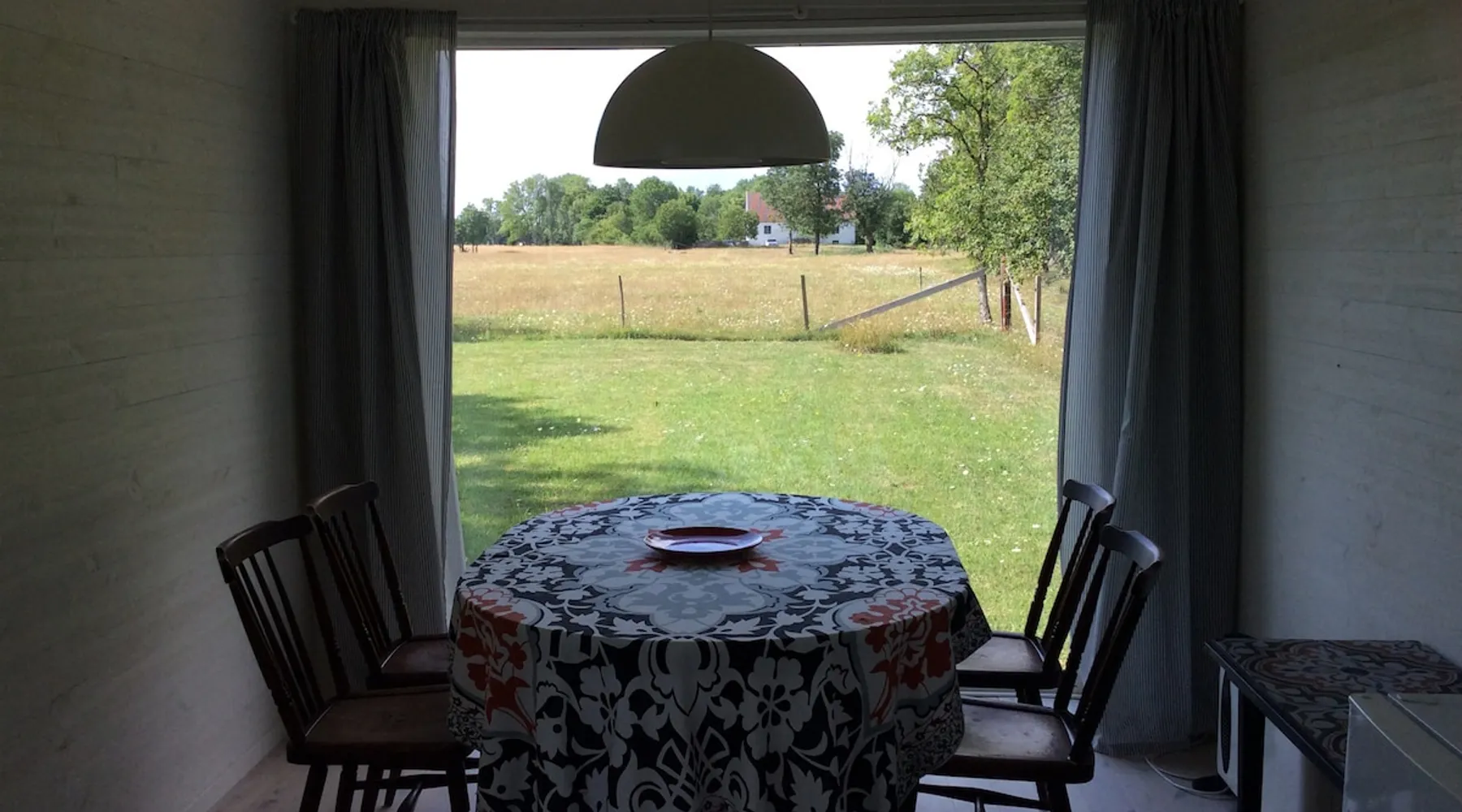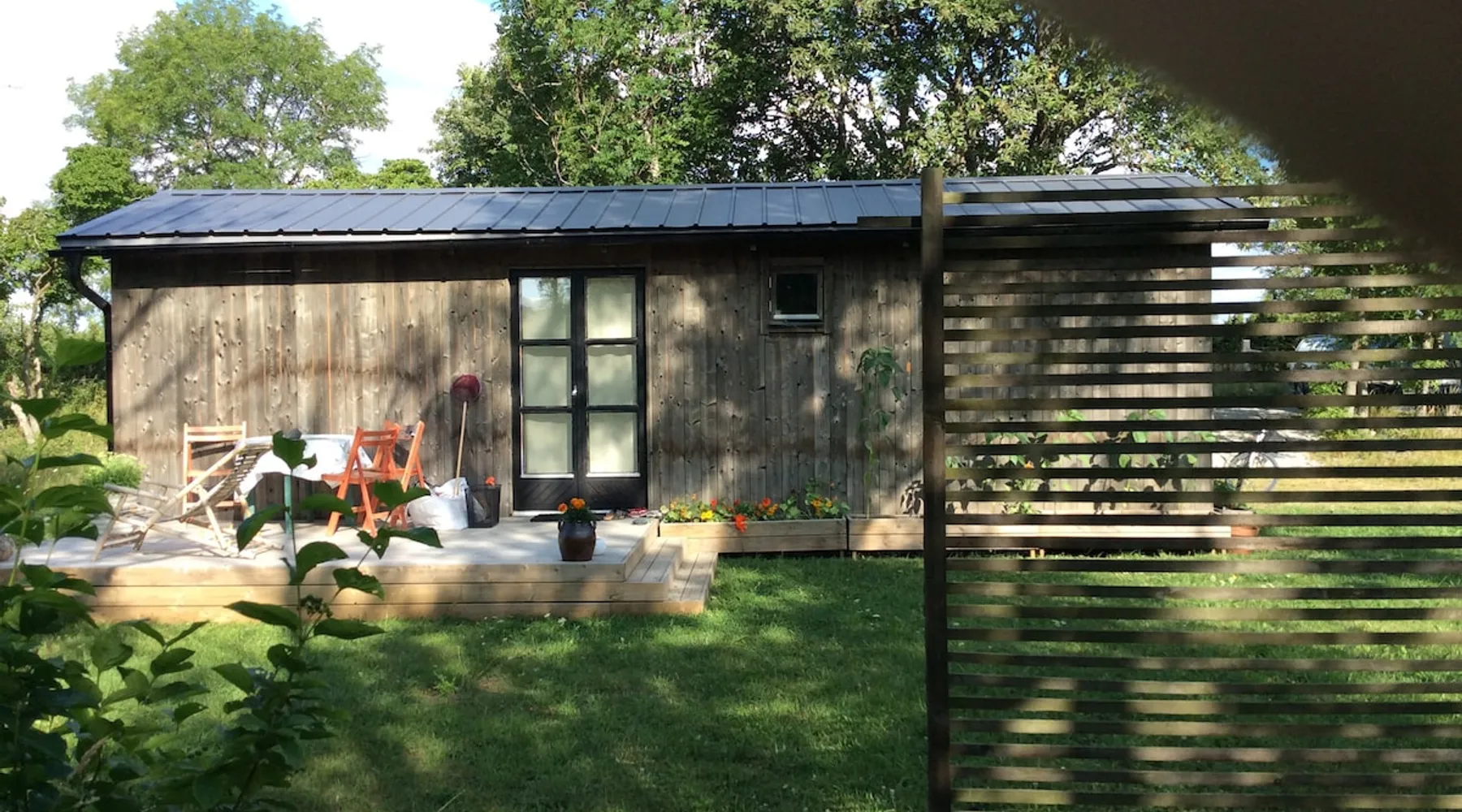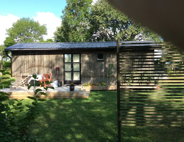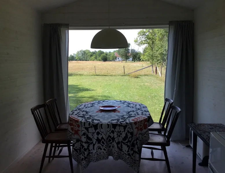 Gäststugan is located in beautiful Östergarnslandet, where some of Gotland's best beaches are located. It is close to the sea, forest and lovely bike paths. The area is characterized by lamb farms and old buildings. It is close to shops, restaurants and several farm shops. From the cottage you have a view over a garden where there are usually lambs or horses. The cottage is 27 sqm and very efficiently planned with sleeping alcove, wc and shower and kitchen. I myself live in a nearby house. Sheets and towels can be rented(250 SEK/set) The space One gable of the house consists of a panoramic window, which causes the border between outside and inside to disappear. Guest access A piece of garden and parking. Other things to note In the summer of 2023, the cottage will be equipped with another nice mattress, a microwave oven and bug net
