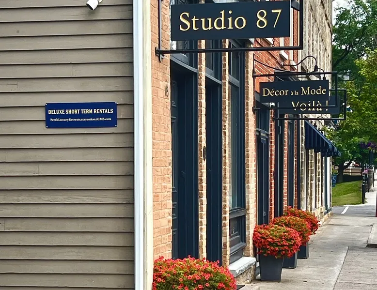 Enjoy a stylish, Fully equipped luxurious 1 Bedroom Maisonette(2 floors)stunning waterfront views/ fireplace/Contemporary design, by Randa Khoury One King-Size bed, An optional foldable single bed is available on request for a third person. Extra fee of $65 per night is applicable. located in the heart of downtown Perth above our Studio 87 Art Gallery. https://www.airbnb.com/l/Hdf7zJZb https://www.airbnb.com/l/j2bWTs3g https://www.airbnb.com/l/QmYOmU0B https://www.airbnb.com/l/QYIA0iUg The space This very special Maisonette apartment, built in an 1864 historic property in Downtown Heritage Perth. There is a private entryway and one flight of stairs leading to this beautiful Parisian style maisonette apartment. The kitchen and a sitting nook are on the lower level and the upper level is the entire third floor of the building. Living/ dining room, bathroom, bedroom & balcony. The third floor living room has sweeping water views over the Tay Basin. There is a 170-year-old exposed stone wall in the Living room. The apartment is centrally located. We provide all of the necessities including linens, etc. The kitchen is fully equipped with fridge, stove, microwave, dishwasher and coffee machine. All utensils, cookware etc is provided. Internet is free and we provide an HD Smart TV The apartment is adjacent to our Art Gallery, Studio 87, Decor a la Mode and voilà Design and fashion boutique Guest access The entrance door to the building on Gore st, E, that you access via a keypad. The apartment has a door that you access with a keypad that we will provide. Since the apartment is on the second floor, it is very private. The entire apartment is yours. For short term stays up to one week cleaning fee is included. Long term stay will have additional cleaning fee $90weekly there are no other costs. Parking and wifi are included. Other things to note We offer the following: ...air conditioning ...free on-site reserved parking space …free on-site level-2 EV charging - NEW ...free high-speed WiFi …Smart TV - for guests to use with their own streaming services ...Nespresso (OriginalLine capsules) or French Press coffee options ...contemporary design We are AirBNB superhosts with a perfect 5-Star rating. See links to other available airbnb units available all in the same location in downtown Perth with the Tay river water view https://abnb.me/Ekjhmd5SkCb Rental unit in Perth · (1) ★New · 1 bedroom ·cozy Studio https://abnb.me/Ekjhmd5SkCb (2) 85 #2 (1 bedroom 1 bath apartment) https://www.airbnb.ca/rooms/12544217 (3) 89 #1 (1 bedroom/1 Bath apartment) https://abnb.me/NMpkrAlbp0 (4) 89 #2 (Maisonette 1 bedroom apartment) Loft in Perth · ★4.85 · 1 bedroom · 1 bed · 1 bath https://www.airbnb.ca/rooms/21649614