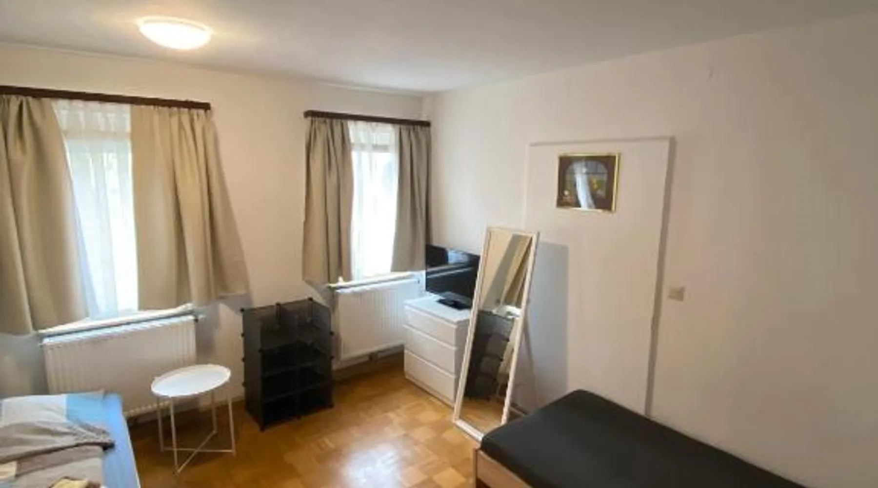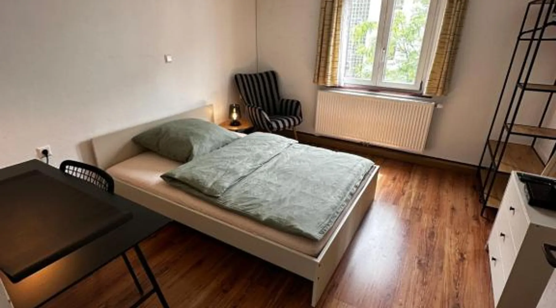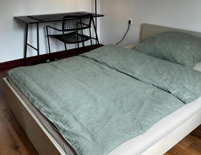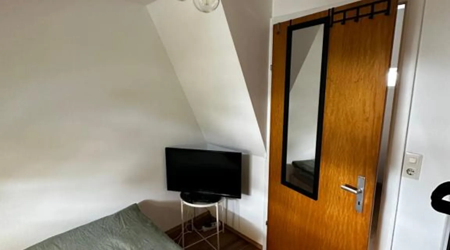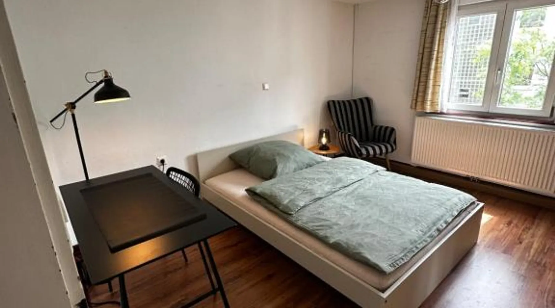 Comfortable Accommodations: Einfaches Haus mit Privatzimmern und Gemeinschaftsräumen in Heilbronn offers comfortable rooms with private bathrooms and shared kitchen facilities. Guests enjoy free WiFi and a terrace for relaxation. Modern Amenities: The homestay features a washing machine, dishwasher, microwave, and coffee machine. Additional amenities include a work desk, TV, and wardrobe. Carpeted floors provide a cozy atmosphere. Convenient Location: Located 2.5 mi from Kolbenschmidt Arena and Theater Heilbronn, 3.1 mi from Market Square and Städtische Museen Heilbronn Museums, and 17 mi from Messe Sinsheim. Heilbronn Central Station and Ludwigsburg Train Station are 3.1 mi away. Guest Satisfaction: Highly rated for bed and room comfort, the property ensures a pleasant stay for all guests. Guests can make meals in the kitchen that is equipped with a stovetop, a refrigerator, a dishwasher and kitchenware. The twin room provides a washing machine, a coffee machine, as well as a shared bathroom featuring a bath and a shower. The unit offers 2 beds.