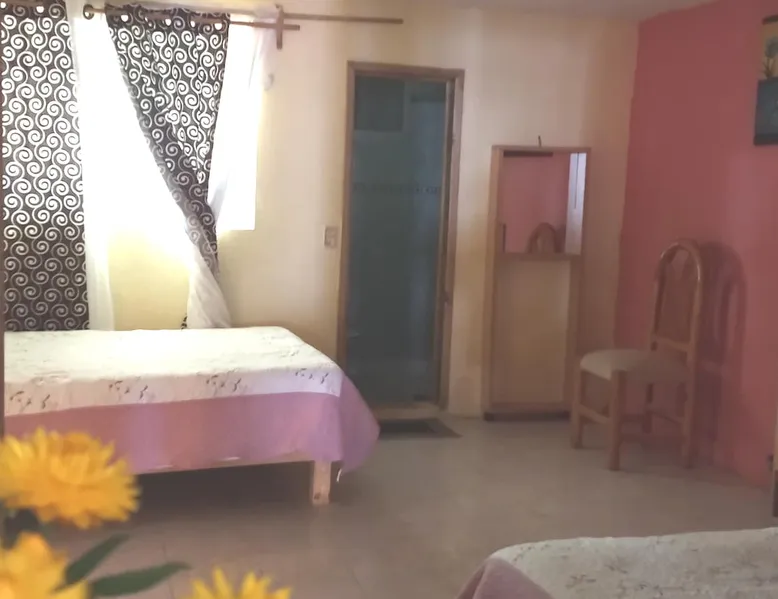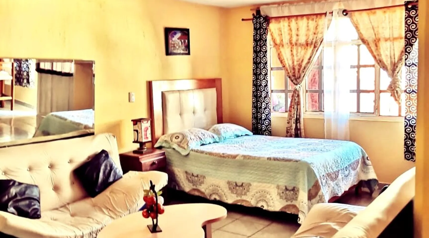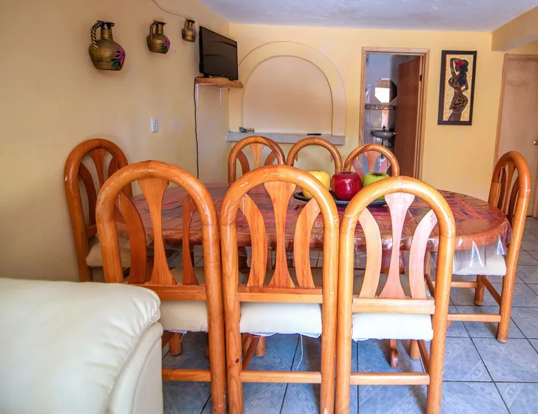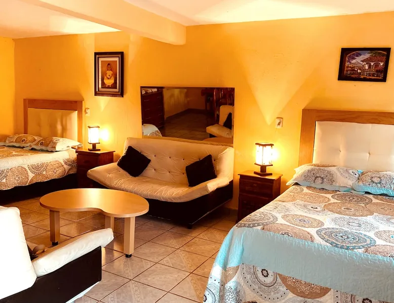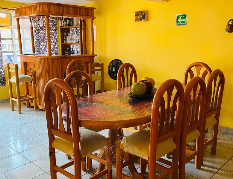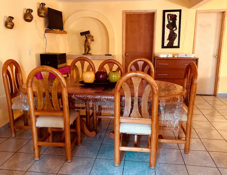 APARTMENT is part of a home. NICE, CENTRAL, nine blocks from downtown Zacatlán. With living room, dining room, kitchen, 6 matri beds, 2 bathrooms. It has garden and Lumbrera with swings for Fogata. Sports at 40 m. FREE WiFi .GARAJE PAID $40 x night. A person receives them. Payment is by number of Guests. The apartment IS not SHARED. No toilet room only + 3 nights. We are Pet friendly pet cost $50 x NIGHT. SANITIZED and super clean. Yes, we did. The space We offer you a cozy and comfortable accommodation with excellent attention. We are only 9 streets from downtown Zacatlán, with spaces such as Lumbrera, a rest space always thinking about the tranquility, rest and coexistence of guests. The apartment sleeps up to 11 people. In a VERY LARGE SPACE there are 2 double beds, living room, dining room and 1 bathroom complete WITH HOT WATER this space will be given if they are 1 to 4 people and IT IS PRIVATE. In another large space there are 2 double beds and 1 single with full bathroom with hot water and in another space there is the kitchen with the basics to prepare simple food. Does not include a stove oven. It is an apartment that has liked it very much because the spacious, comfortable and beautiful! In the back there is a garden and a Lumbrera with hanging chairs. If the apartment is reserved for at least 4 people they will be given half a private apartment with a door. BOOKING FOR MORE THAN 5 PEOPLE YOU WILL BE GIVEN FULL APARTMENT! No breakfast. There are exclusive smoking areas. IF WE ACCEPT POLITE PETS maximum 3 pets per booking extra COST. There is parking in the Accommodation but if it is filled almost next door there is a Pension for cars and you will only pay $40 per car/night, for your understanding! Thank you. We have ALL the basic amenities like hot water 24 hours a day. If we issue Invoices. We support you with your Itinerary and Reservation to visit places such as Fabrica de cider and wine, Castillo de la Sfera, etc. External tour service, Tour with Guide. Guest access We are a few streets from the center of Zacatlán, 25 meters from the Sports Unit "El Bicentenario' with areas for various games and a space for walks and races. We have cabins, rooms and apartments, all furnished! Other things to note We have Packages including Accommodation, Tour, Breakfast, Transportation and more...I asked for PROMOTIONS!
