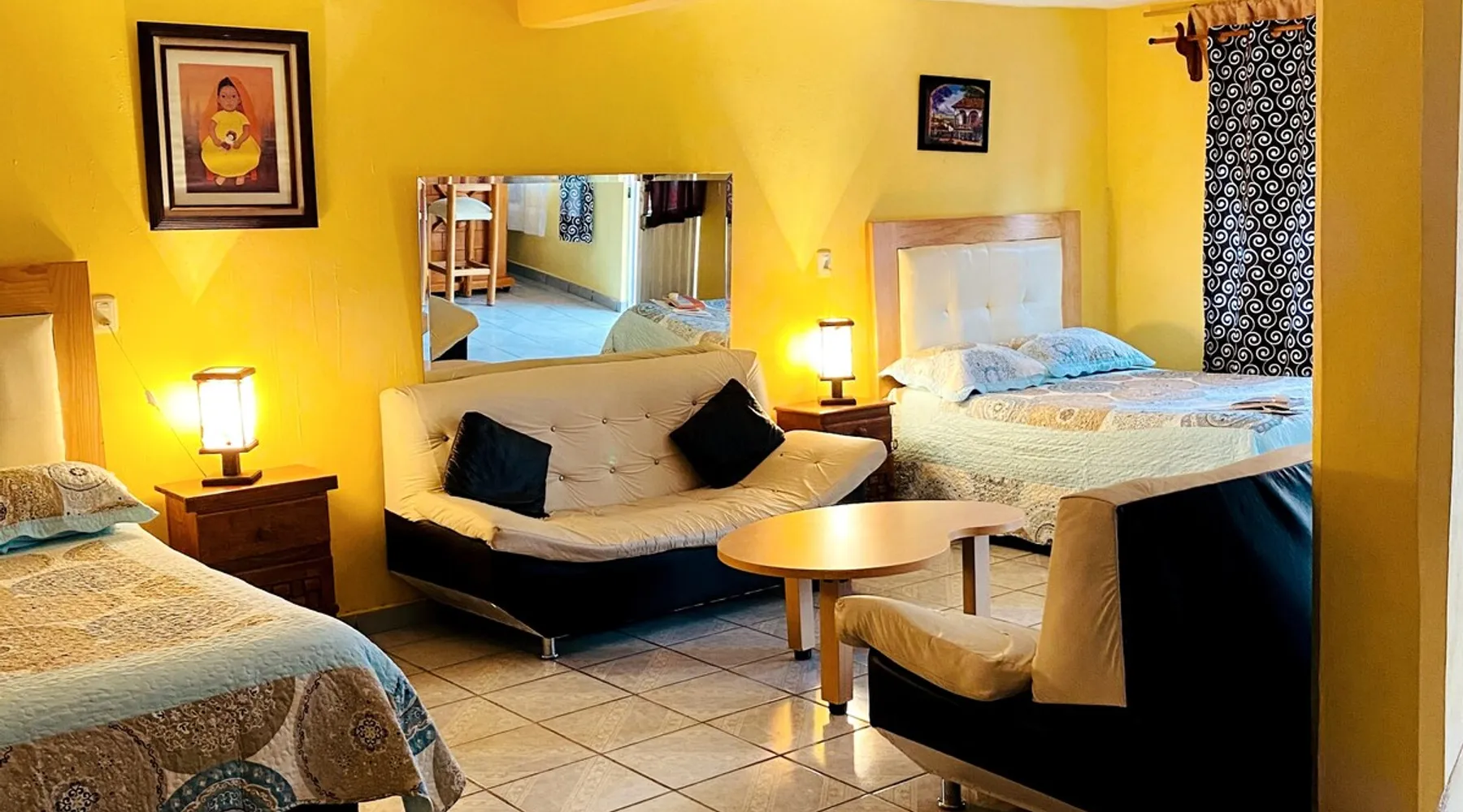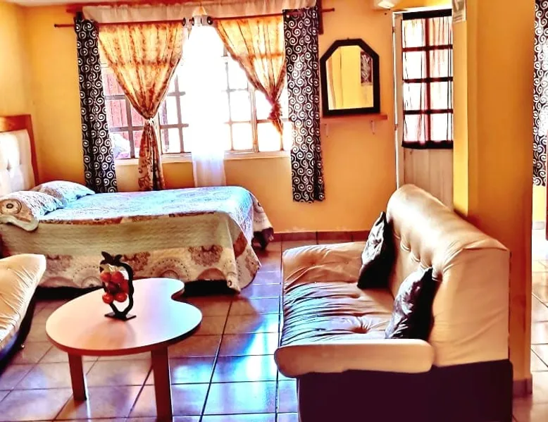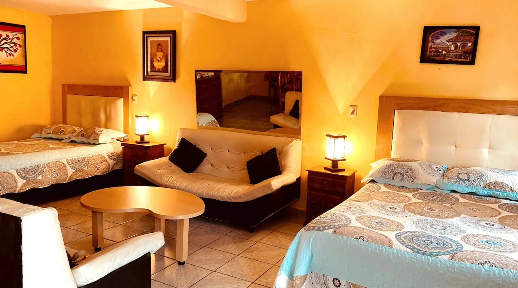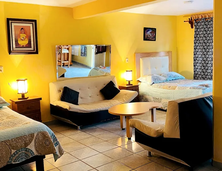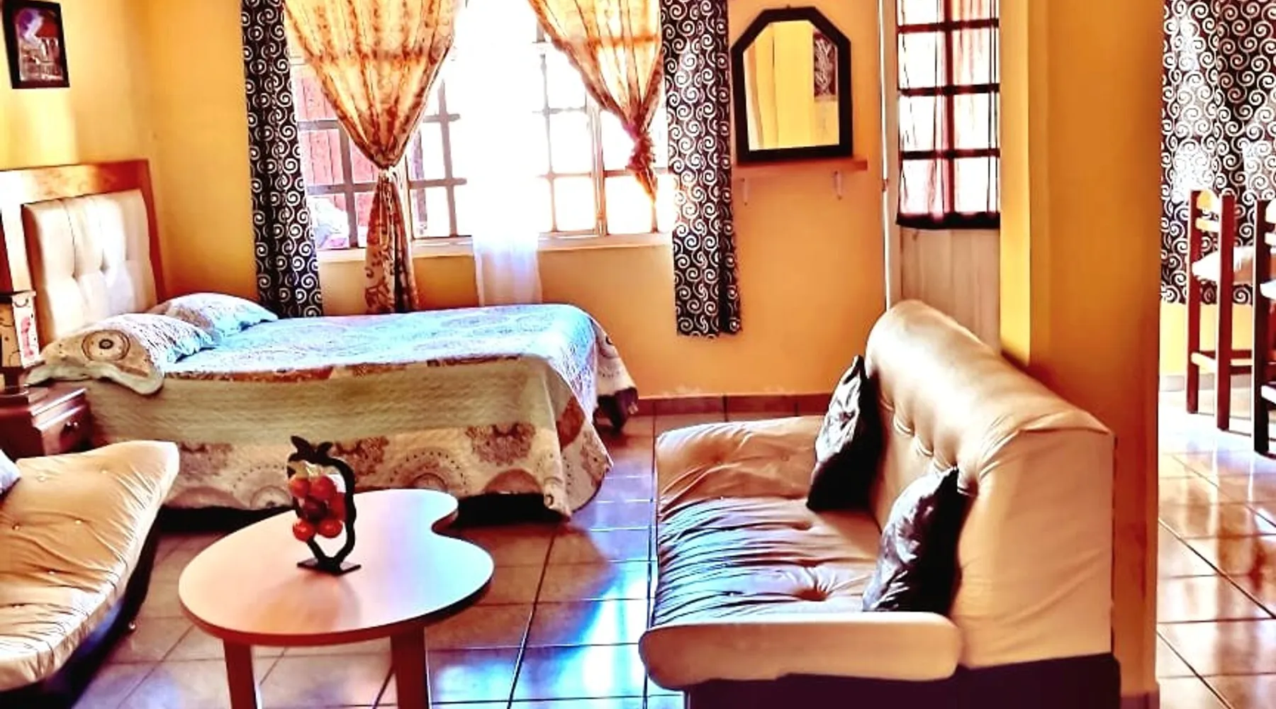APARTMENT is part of a home. NICE, CENTRAL, nine blocks from downtown Zacatlán. With living room, dining room, kitchen, 6 matri beds, 2 bathrooms. It has garden and Lumbrera with swings for Fogata. Sports at 40 m. FREE WiFi .GARAJE PAID $40 x night. A person receives them. Payment is by number of Guests. The apartment IS not SHARED. No toilet room only + 3 nights. We are Pet friendly pet cost $50 x NIGHT. SANITIZED and super clean. Yes, we did. The space We offer you a cozy and comfortable accommodation with excellent attention. We are only 9 streets from downtown Zacatlán, with spaces such as Lumbrera, a rest space always thinking about the tranquility, rest and coexistence of guests. The apartment sleeps up to 11 people. In a VERY LARGE SPACE there are 2 double beds, living room, dining room and 1 bathroom complete WITH HOT WATER this space will be given if they are 1 to 4 people and IT IS PRIVATE. In another large space there are 2 double beds and 1 single with full bathroom with hot water and in another space there is the kitchen with the basics to prepare simple food. Does not include a stove oven. It is an apartment that has liked it very much because the spacious, comfortable and beautiful! In the back there is a garden and a Lumbrera with hanging chairs. If the apartment is reserved for at least 4 people they will be given half a private apartment with a door. BOOKING FOR MORE THAN 5 PEOPLE YOU WILL BE GIVEN FULL APARTMENT! No breakfast. There are exclusive smoking areas. IF WE ACCEPT POLITE PETS maximum 3 pets per booking extra COST. There is parking in the Accommodation but if it is filled almost next door there is a Pension for cars and you will only pay $40 per car/night, for your understanding! Thank you. We have ALL the basic amenities like hot water 24 hours a day. If we issue Invoices. We support you with your Itinerary and Reservation to visit places such as Fabrica de cider and wine, Castillo de la Sfera, etc. External tour service, Tour with Guide. Guest access We are a few streets from the center of Zacatlán, 25 meters from the Sports Unit "El Bicentenario' with areas for various games and a space for walks and races. We have cabins, rooms and apartments, all furnished! Other things to note We have Packages including Accommodation, Tour, Breakfast, Transportation and more...I asked for PROMOTIONS!