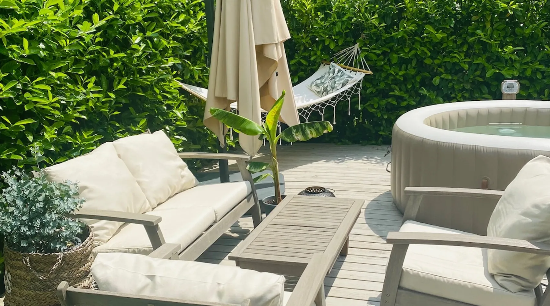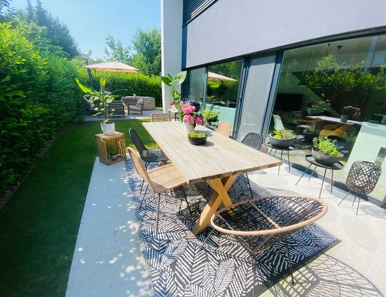 Our cosy home is located in Lavrica, 2km from AC exit, 7 km from Ljubljana city centre. There is a covered parking space right in front of the house. You will have the comfort of fully equipped home with 1 bedroom and 2 kids rooms, outdoor space with hot tub, outdoor shower, hammock, lounge, outdoor kitchen with grill. The space You can enjoy in one of the outdoor corners - relax in Jacuzzi, chill in hammock, do some yoga on wooden terrace or play some sports on grass or in front of the house.