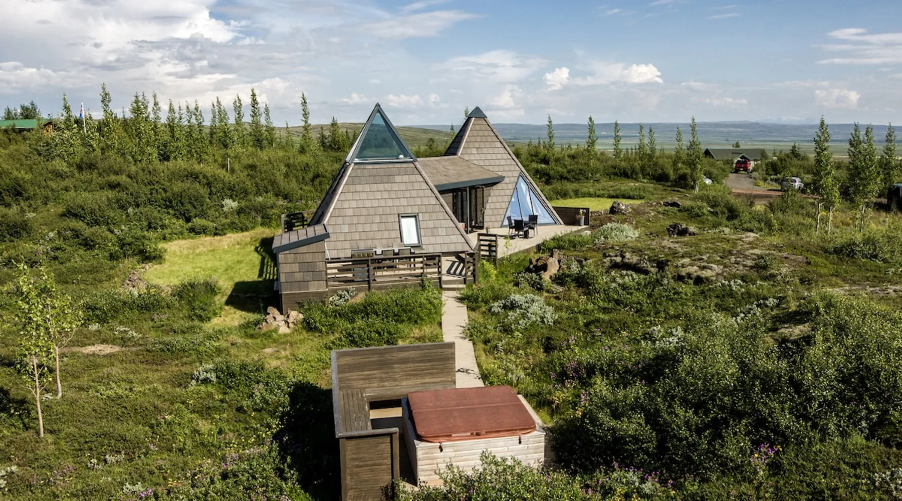This Unique Summer House was finished in 2010. This location is in one of the best vacation areas in the country. It is in the middle of the famous Golden Circle Route. The house was built to reflect the Icelandic landscape and complement the small vegetation of moss and trees in the old lava-field. It is a beautiful little gem within a great area of the country. 10 minutes to Geysir 20 minutes to Gullfoss 20 minutes to Skalholt 30 minutes to Kerid 40 minutes to Thingvellir The space This unique property was built to reflect the Icelandic landscape and complement the small vegetation of moss and trees in the old lava-field. The property is also very green and sustainable. The house is kept warm by geothermal water that runs through pipes in the floor keeping it warm and comfortable year-round. For those extremely cold days in the winter, we also have additional heaters that can be placed in the sleeping area and living room to further heat the house. All warm water in the house comes from a local geothermal hot-spring and the cold water is natural cold spring water from a nearby well. The electricity in the house is generated by geothermal energy from a nearby power-station. Please note that we do not have a landline at the house so we cannot offer WiFi included in our rates. The house has 2 bedrooms with queen size beds as well as 1 small bedroom for a single child or possibly an adult that is under 5.5 ft or 165 cm. The house also has a washer and dryer as well as a full kitchen with dishwasher/stove/oven. The property is quite spacious and has a small children playground in the back. From mid-August the property has crow berries and wild blueberries growing all around the cottage. Laugarvatn is 15 minutes drive (Fontana Spa, Lindin Restaurant, N1 Gas Station and a small grocery store). Geysir is 10 minutes away (Geysir, Strokkur, Geothermal area, Geysir Center, Camping ground, Souvenir Shop). Gullfoss is 25 minutes away. Þingvellir (Parliament Plains) is 40 minutes away. Skalholt is 25 minutes away. Kerid is 30 minutes away. Service Center with a small grocery store, pool, restaurant, camping ground, mini-golf, 9-hole golf course, horseback riding and much more is 2 minutes away. This is a unique property for travelers wanting to have a one of a kind vacation. Guest access All areas are open to guests. Please note that you will need to have a cell/phone access to call us in advance and when you arrive so we can let you into the community. Other things to note Please note that you will need to have a cell/phone access to call us in advance and when you arrive so we can let you into the community. Without a cellphone, your access to the house will be challenging.