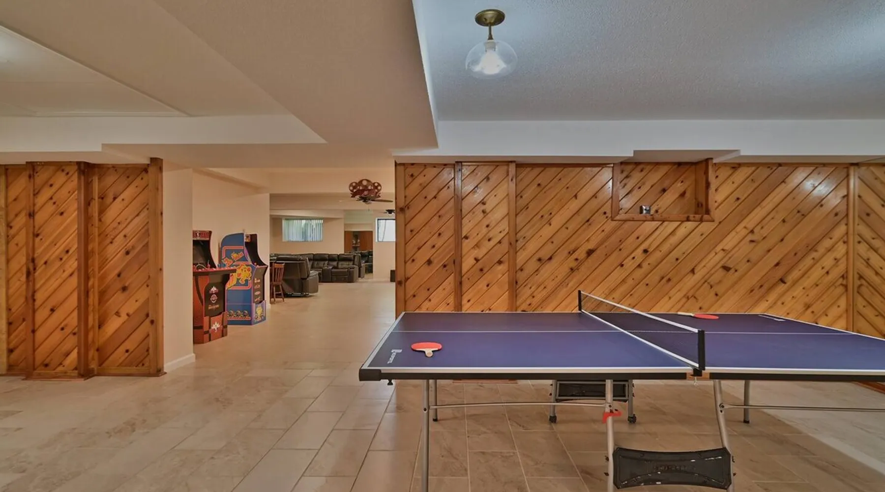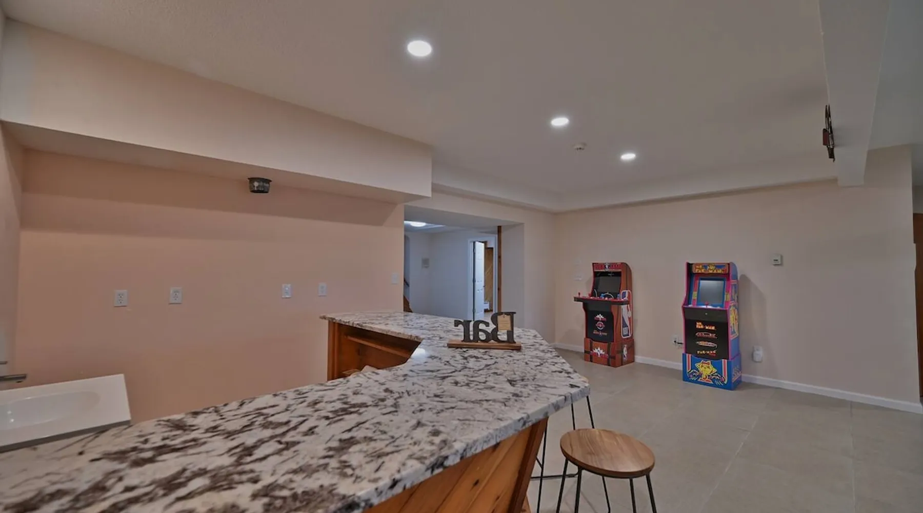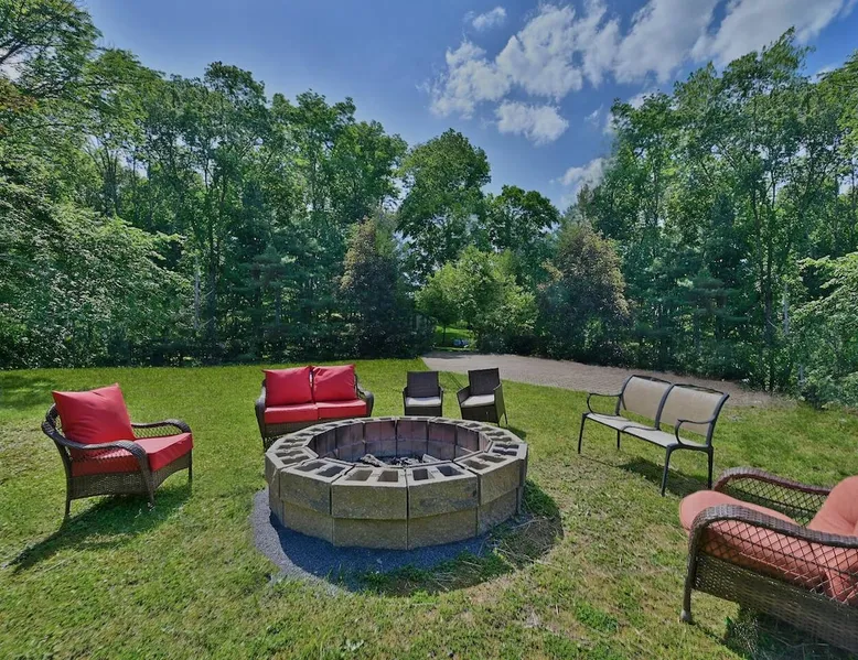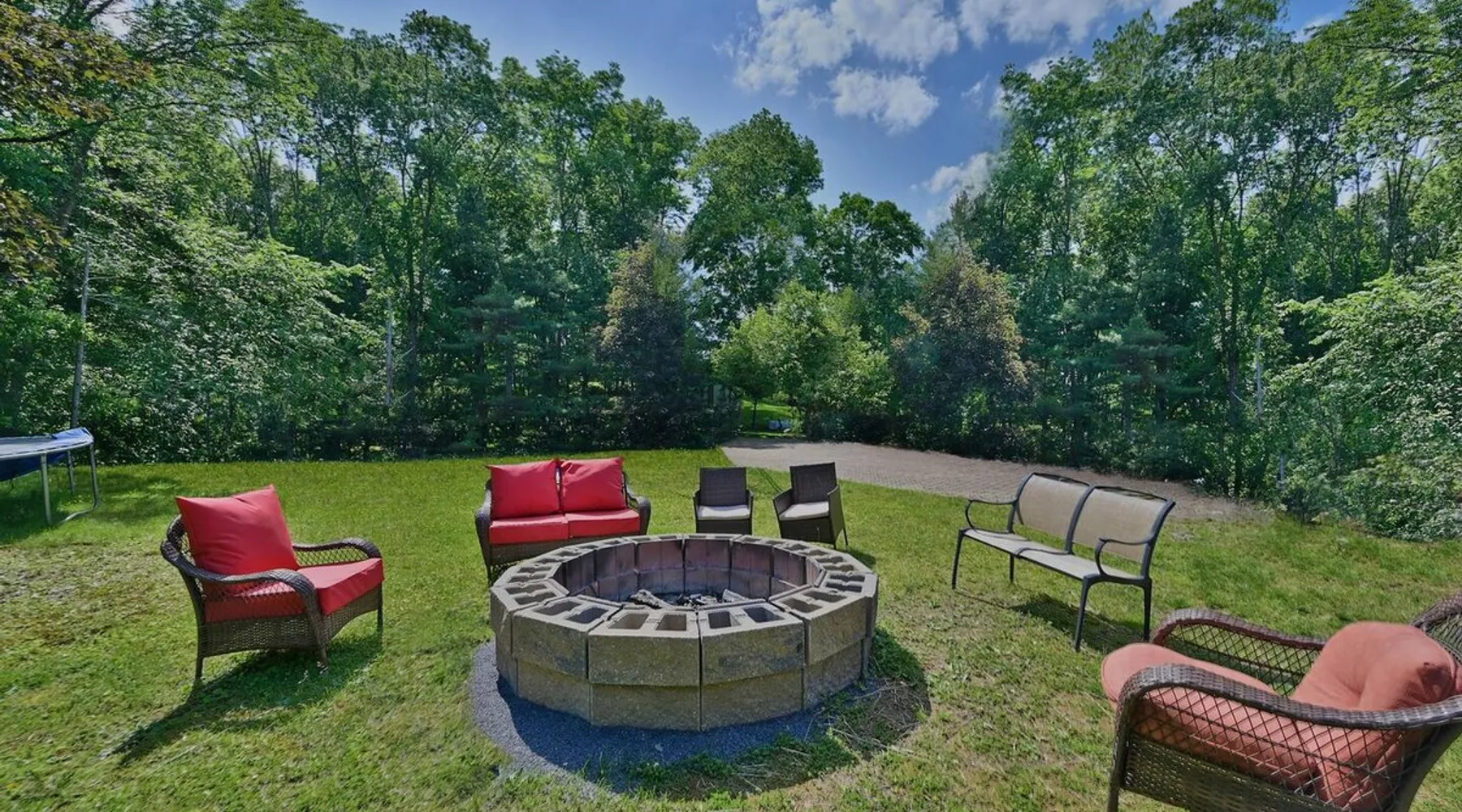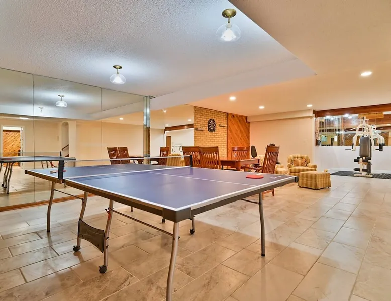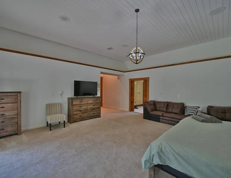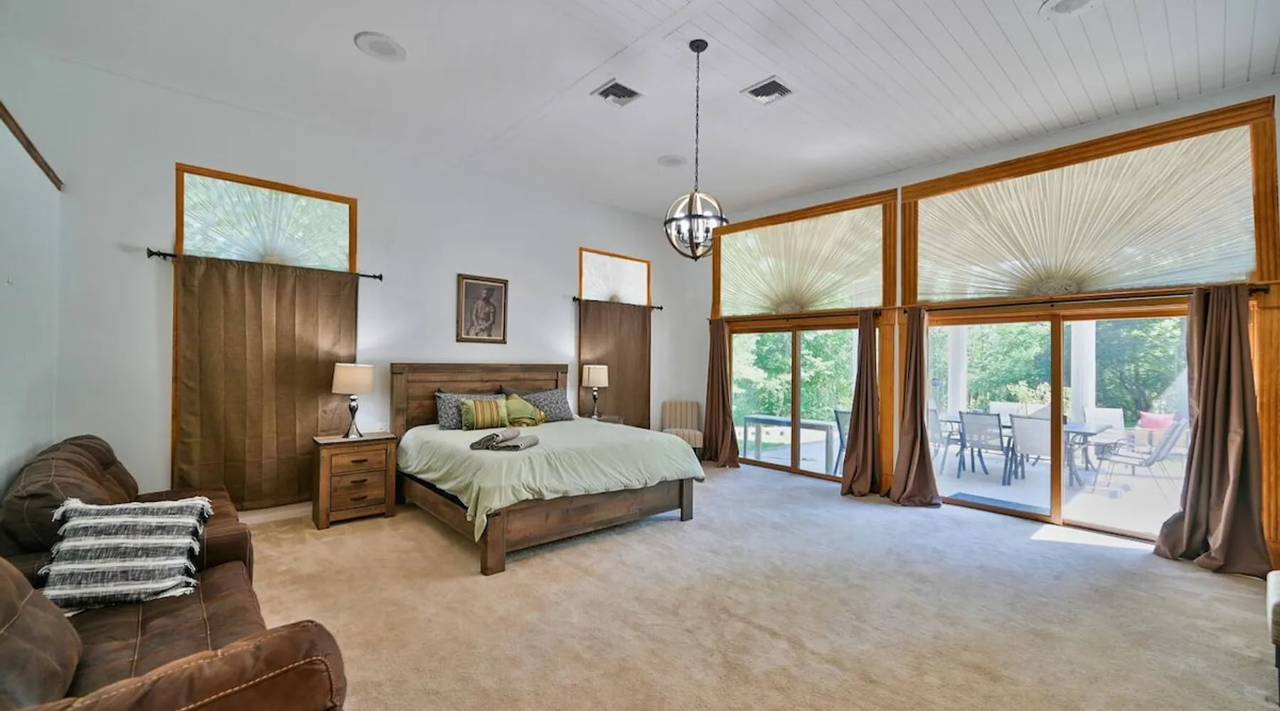 Swimming pool is open from May 10th to October 13 Experience the abundance of this 8 bedroom, 5 full and 2 half bathroom villa that is 8700 SQF in the tranquil area of Poconos Mountains. This villa offers a cozy, entertaining, and family-friendly getaway close to the various sights, activities, and famous spots of the Poconos Mountains. A private outdoor pool, hot tub, gym, sauna, and many more amenities exist. This villa has just been refurbished with new furniture, cozy beds & bedding The space As soon as you step foot in the luxury three-floor pool villa, you're welcomed by a very stylish yet highly comfortable open-plan living area. It is designed and decorated in an elegant manner that compliments the breathtaking vacation setting of the Poconos Mountains! The fully equipped kitchen and its adjacent dining area open onto the entertaining living room, setting the tone for many memorable evenings. Plenty of natural light coming through the large windows and glass doors makes the whole villa very bright during the entire day. Retreat to eight comfortable bedrooms, which feature 5☆-resort comforts that allow you to rest after an exciting day of adventuring throughout the region. But wait! The best is yet to come! Step outside to the private pool area equipped with luxury amenities for ultimate relaxation or come down to the spacious game room and enjoy hours of endless fun. ✔ 8 Comfortable Bedrooms ✔ Open Design Living ✔ Fully Equipped Kitchen ✔ Swimming Pool ✔ Backyard (Seating, Fire Pit, BBQ) ✔ Game Room ✔ Sauna ✔ Gym ✔ Smart TVs ✔ High-Speed Wi-Fi ✔ Free Parking ★ LIVING ROOM ★ It immediately feels like home, with comfy sofas, a coffee table for snacks and drinks, and a smart TV. ✔ Three Comfortable Leather Sofas with Pillows ✔ Smart TV ✔ Coffee Table ✔ Comfy Sofa Chair ★ KITCHEN & DINING ★ It is fully equipped with state-of-the-art cooking appliances that make it suitable for preparing any meal, whether it is a simple breakfast, quick snack, or a three-course gourmet dinner. Spacious granite countertops and a vast kitchen island provide plenty of room for you to work your MasterChef magic. ✔ Microwave ✔ Stove ✔ Oven ✔ Refrigerator/Freezer ✔ Dishwasher ✔ Coffee Maker ✔ Toaster ✔ Blender ✔ Sink - Hot & Cold Water ✔ Trays ✔ Glasses ✔ Silverware ✔ Pots & Pans The dining area is perfectly nestled by the backyard entrance allowing you to gaze at the gorgeous natural surroundings while having delicious homemade meals. Another ✔ Custom Wood Slab Dining Table with Seating for 16 ★ SLEEPING ARRANGEMENTS – 8 BEDROOMS ★ After an exciting day of adventuring throughout the Pocono Mountains, you will be looking to rest for an equally entertaining tomorrow. Once you are ready to relax, please make your way to these comfortable bedrooms. ♛ Master Bedroom 1 - King-Size Bed + Sofa Bed ♛ Master Bedroom 2 - King-Size Bed + Crib ♛ Bedroom 3 - Queen-Size Bed + Bunk Bed (Twin over Twin) ♛ Bedroom 4 - Two Bunks Beds (Double over Double) ♛ Bedroom 5 - Queen-Size Bed ♛ Bedroom 6 - Bunk Bed (Double over Double) ♛ Bedroom 7 - Bunk Bed (Twin over Twin) ♛ Bedroom 8 - Queen-Size Bed Each bedroom is equipped with a similar set of amenities. ✔ Smart TV (only in Master Bedrooms) ✔ Pillows, Linens, and Sheets ✔ Closet with Hangers and Shelves ✔ Cabinet with Spacious Drawers ✔ Night Stands with Reading Lights ★ BATHROOMS ★ A total of seven full bathrooms can be found within the villa. All are stocked with fresh towels and essential toiletries, so you don't have to worry about bringing your own. ✔ Bath with a Shower ✔ Shower Cabin ✔ Vanity ✔ Mirror ✔ Toilet ✔ Towels ✔ Hair Dryer ✔ Essential Toiletries ★ GAME ROOM ★ Enjoy playing with your family and friends in the fully furnished basement floor used as a game room. We have prepared an abundance of entertaining activities that will make you lose track of time. The large comfortable sofa and the smart TV are perfect for unforgettable family movie nights! ✔ Pool Table ✔ Ping-Pong Table ✔ Arcade Machines ✔ Bar Area ✔ Smart TV ✔ Large U-Shaped Leather Sofa ★ BACKYARD + POOL AREA ★ Soak up the sun in complete privacy, surrounded by many entertaining and comfortable amenities for children and adults. Besides the luxurious pool area, you can enjoy the serenity of the lush green surroundings. ✔ Swimming Pool ✔ Fire Pit ✔ BBQ Grill ✔ Sun Lounges ✔ Covered Seating Area with Table and Chairs Guest access The entire villa is exclusively yours, without interruption for the duration of your stay, so relax, unwind, and make yourself at home. Other than the already mentioned amenities, the house also features: ✔ Sauna ✔ Gym ✔ High-Speed Wi-Fi ✔ Air Conditioning ✔ Heating ✔ Washer+ Dryer ✔ Free Parking