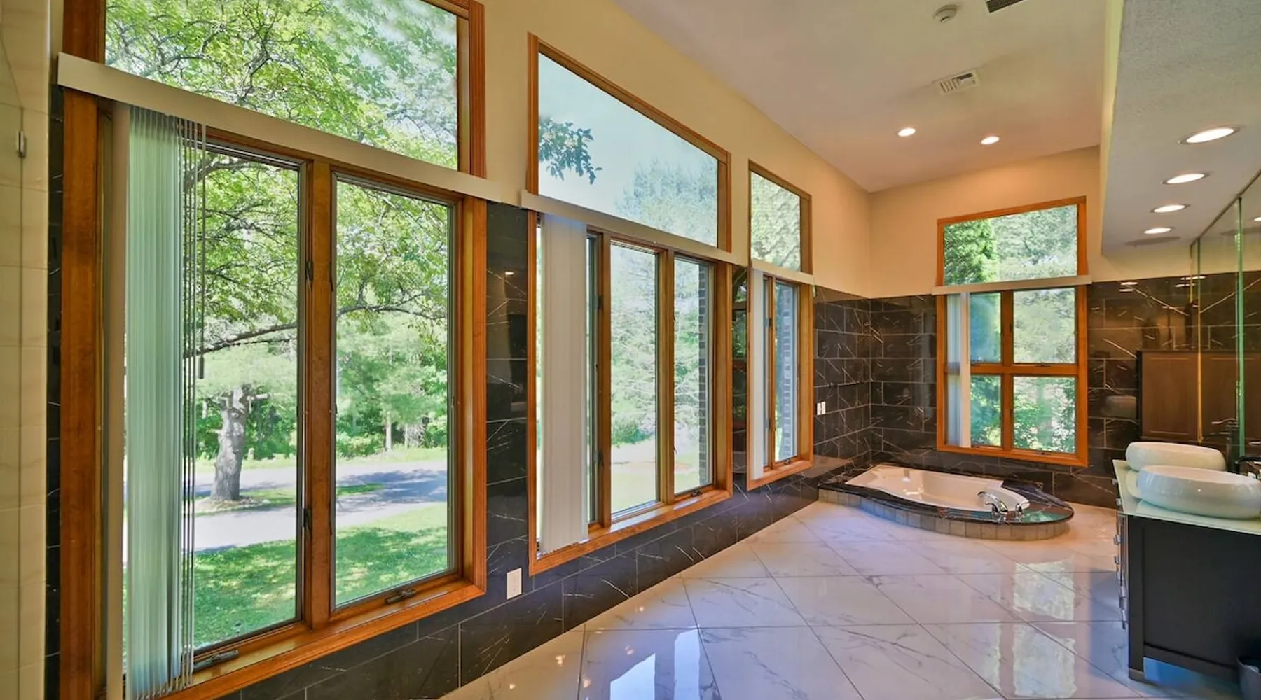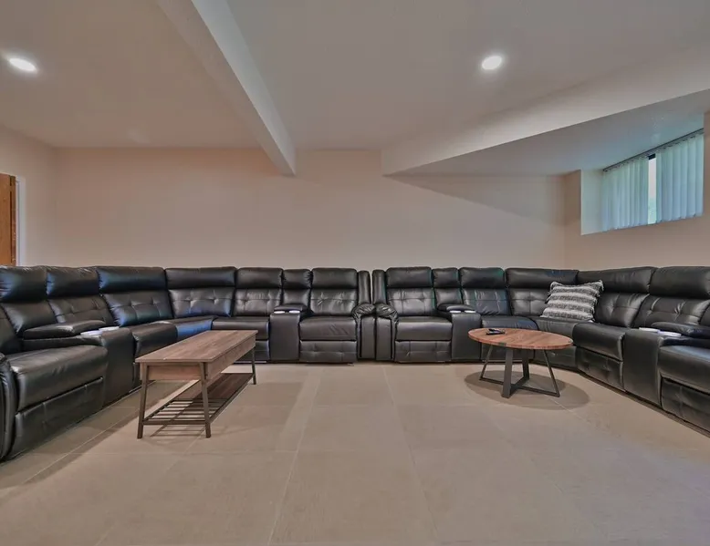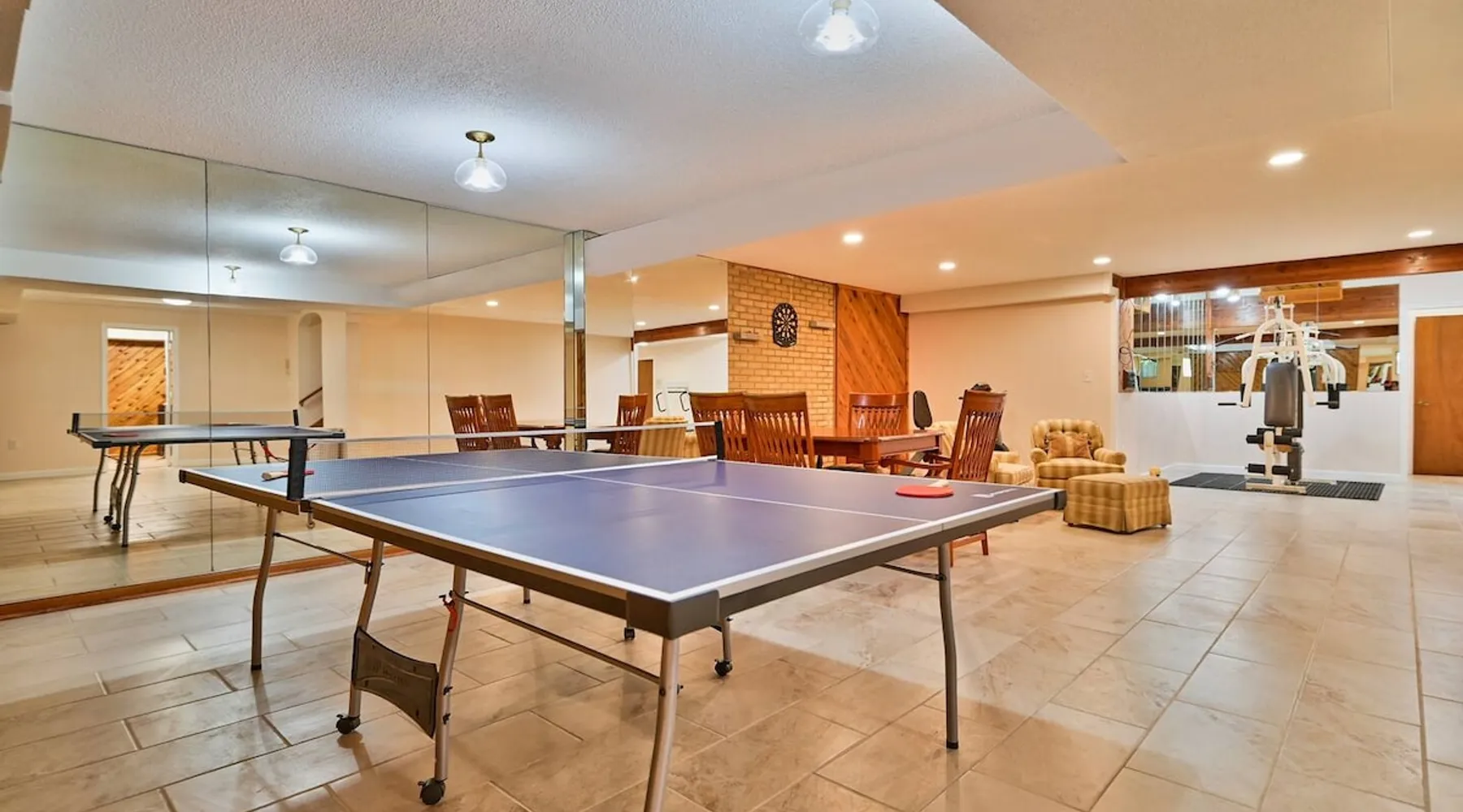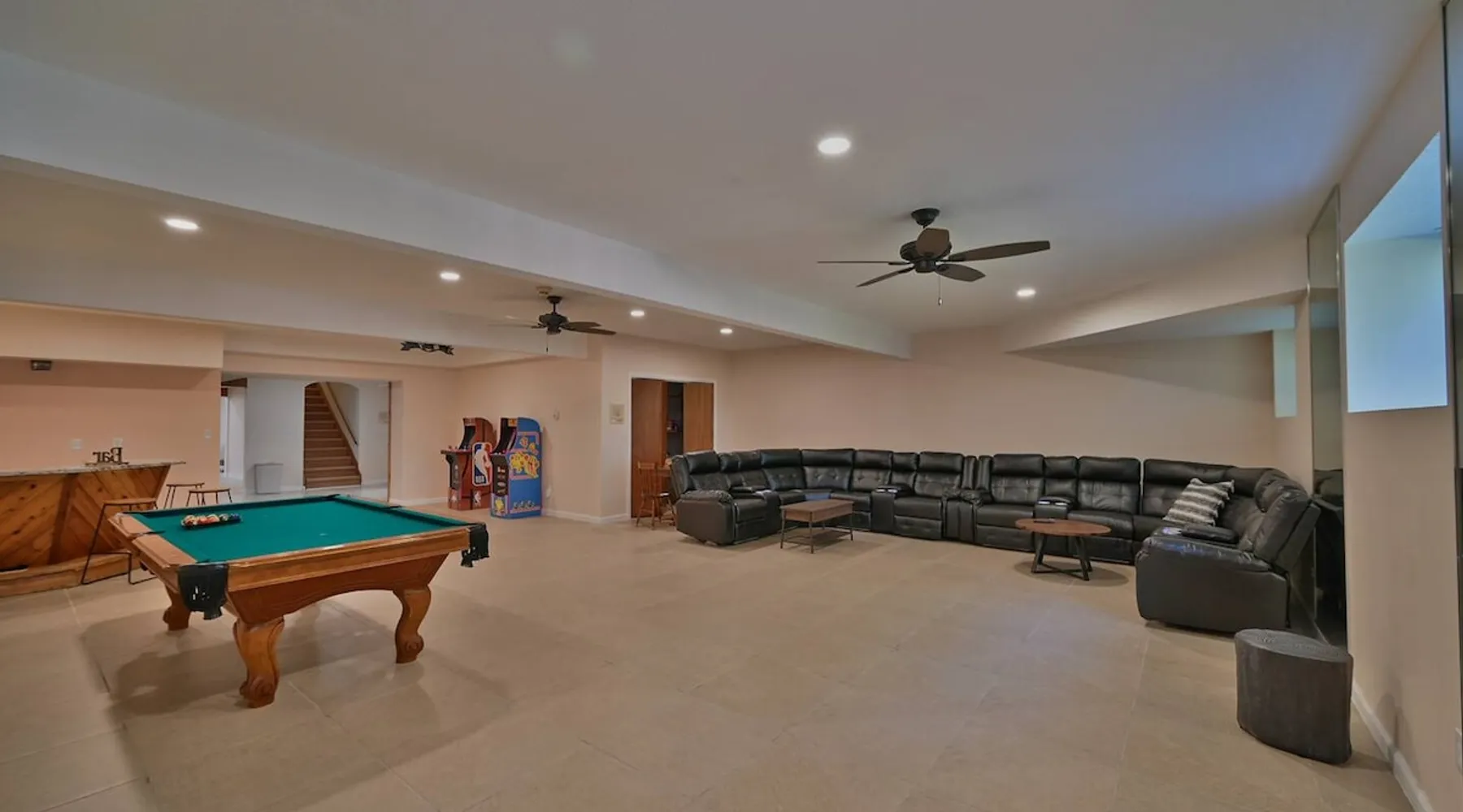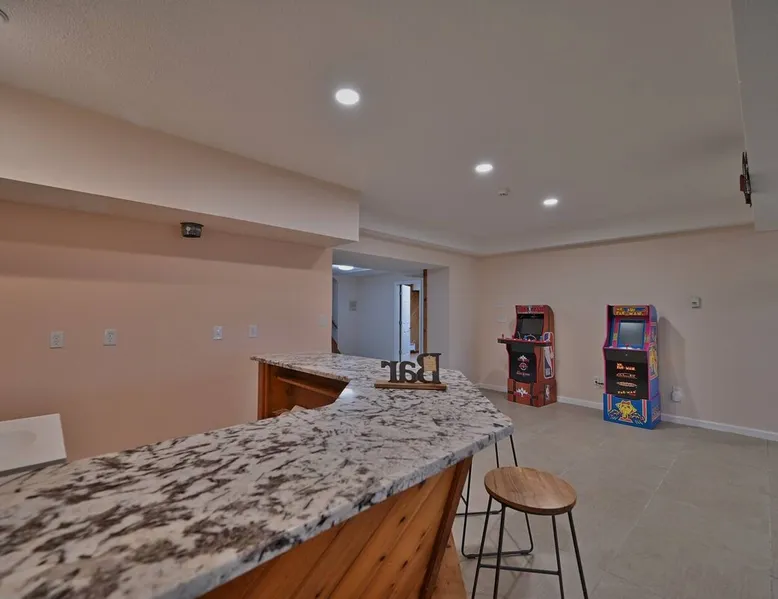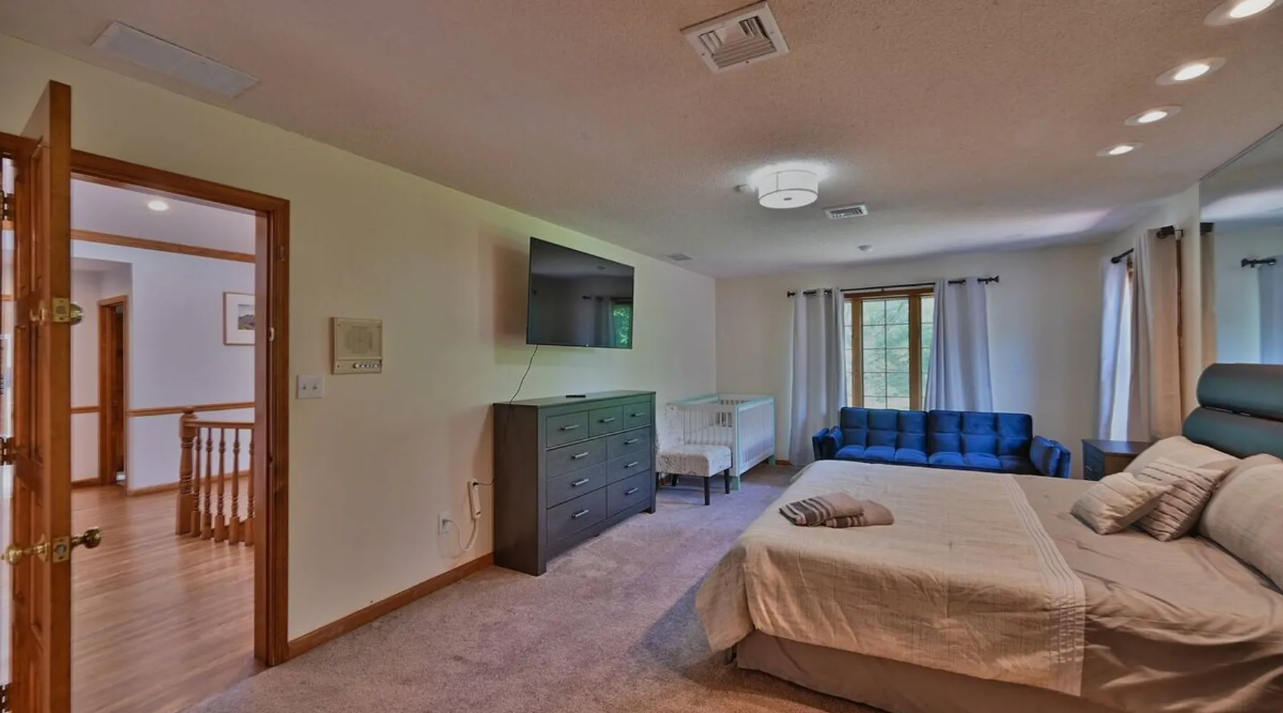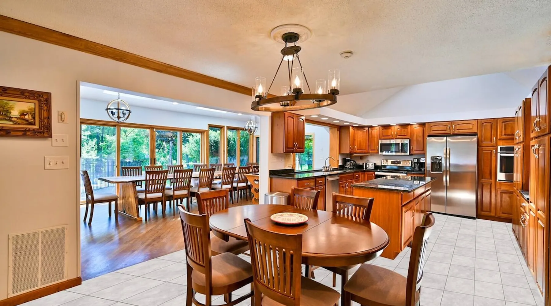 Swimming pool is open from May 10th to October 13 Experience the abundance of this 8 bedroom, 5 full and 2 half bathroom villa that is 8700 SQF in the tranquil area of Poconos Mountains. This villa offers a cozy, entertaining, and family-friendly getaway close to the various sights, activities, and famous spots of the Poconos Mountains. A private outdoor pool, hot tub, gym, sauna, and many more amenities exist. This villa has just been refurbished with new furniture, cozy beds & bedding The space As soon as you step foot in the luxury three-floor pool villa, you're welcomed by a very stylish yet highly comfortable open-plan living area. It is designed and decorated in an elegant manner that compliments the breathtaking vacation setting of the Poconos Mountains! The fully equipped kitchen and its adjacent dining area open onto the entertaining living room, setting the tone for many memorable evenings. Plenty of natural light coming through the large windows and glass doors makes the whole villa very bright during the entire day. Retreat to eight comfortable bedrooms, which feature 5☆-resort comforts that allow you to rest after an exciting day of adventuring throughout the region. But wait! The best is yet to come! Step outside to the private pool area equipped with luxury amenities for ultimate relaxation or come down to the spacious game room and enjoy hours of endless fun. ✔ 8 Comfortable Bedrooms ✔ Open Design Living ✔ Fully Equipped Kitchen ✔ Swimming Pool ✔ Backyard (Seating, Fire Pit, BBQ) ✔ Game Room ✔ Sauna ✔ Gym ✔ Smart TVs ✔ High-Speed Wi-Fi ✔ Free Parking ★ LIVING ROOM ★ It immediately feels like home, with comfy sofas, a coffee table for snacks and drinks, and a smart TV. ✔ Three Comfortable Leather Sofas with Pillows ✔ Smart TV ✔ Coffee Table ✔ Comfy Sofa Chair ★ KITCHEN & DINING ★ It is fully equipped with state-of-the-art cooking appliances that make it suitable for preparing any meal, whether it is a simple breakfast, quick snack, or a three-course gourmet dinner. Spacious granite countertops and a vast kitchen island provide plenty of room for you to work your MasterChef magic. ✔ Microwave ✔ Stove ✔ Oven ✔ Refrigerator/Freezer ✔ Dishwasher ✔ Coffee Maker ✔ Toaster ✔ Blender ✔ Sink - Hot & Cold Water ✔ Trays ✔ Glasses ✔ Silverware ✔ Pots & Pans The dining area is perfectly nestled by the backyard entrance allowing you to gaze at the gorgeous natural surroundings while having delicious homemade meals. Another ✔ Custom Wood Slab Dining Table with Seating for 16 ★ SLEEPING ARRANGEMENTS – 8 BEDROOMS ★ After an exciting day of adventuring throughout the Pocono Mountains, you will be looking to rest for an equally entertaining tomorrow. Once you are ready to relax, please make your way to these comfortable bedrooms. ♛ Master Bedroom 1 - King-Size Bed + Sofa Bed ♛ Master Bedroom 2 - King-Size Bed + Crib ♛ Bedroom 3 - Queen-Size Bed + Bunk Bed (Twin over Twin) ♛ Bedroom 4 - Two Bunks Beds (Double over Double) ♛ Bedroom 5 - Queen-Size Bed ♛ Bedroom 6 - Bunk Bed (Double over Double) ♛ Bedroom 7 - Bunk Bed (Twin over Twin) ♛ Bedroom 8 - Queen-Size Bed Each bedroom is equipped with a similar set of amenities. ✔ Smart TV (only in Master Bedrooms) ✔ Pillows, Linens, and Sheets ✔ Closet with Hangers and Shelves ✔ Cabinet with Spacious Drawers ✔ Night Stands with Reading Lights ★ BATHROOMS ★ A total of seven full bathrooms can be found within the villa. All are stocked with fresh towels and essential toiletries, so you don't have to worry about bringing your own. ✔ Bath with a Shower ✔ Shower Cabin ✔ Vanity ✔ Mirror ✔ Toilet ✔ Towels ✔ Hair Dryer ✔ Essential Toiletries ★ GAME ROOM ★ Enjoy playing with your family and friends in the fully furnished basement floor used as a game room. We have prepared an abundance of entertaining activities that will make you lose track of time. The large comfortable sofa and the smart TV are perfect for unforgettable family movie nights! ✔ Pool Table ✔ Ping-Pong Table ✔ Arcade Machines ✔ Bar Area ✔ Smart TV ✔ Large U-Shaped Leather Sofa ★ BACKYARD + POOL AREA ★ Soak up the sun in complete privacy, surrounded by many entertaining and comfortable amenities for children and adults. Besides the luxurious pool area, you can enjoy the serenity of the lush green surroundings. ✔ Swimming Pool ✔ Fire Pit ✔ BBQ Grill ✔ Sun Lounges ✔ Covered Seating Area with Table and Chairs Guest access The entire villa is exclusively yours, without interruption for the duration of your stay, so relax, unwind, and make yourself at home. Other than the already mentioned amenities, the house also features: ✔ Sauna ✔ Gym ✔ High-Speed Wi-Fi ✔ Air Conditioning ✔ Heating ✔ Washer+ Dryer ✔ Free Parking