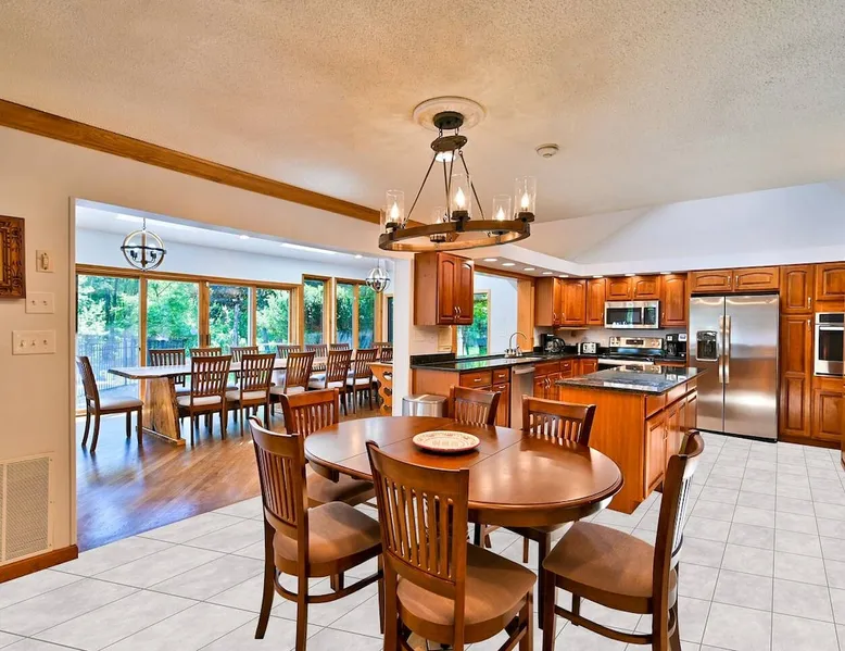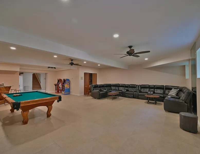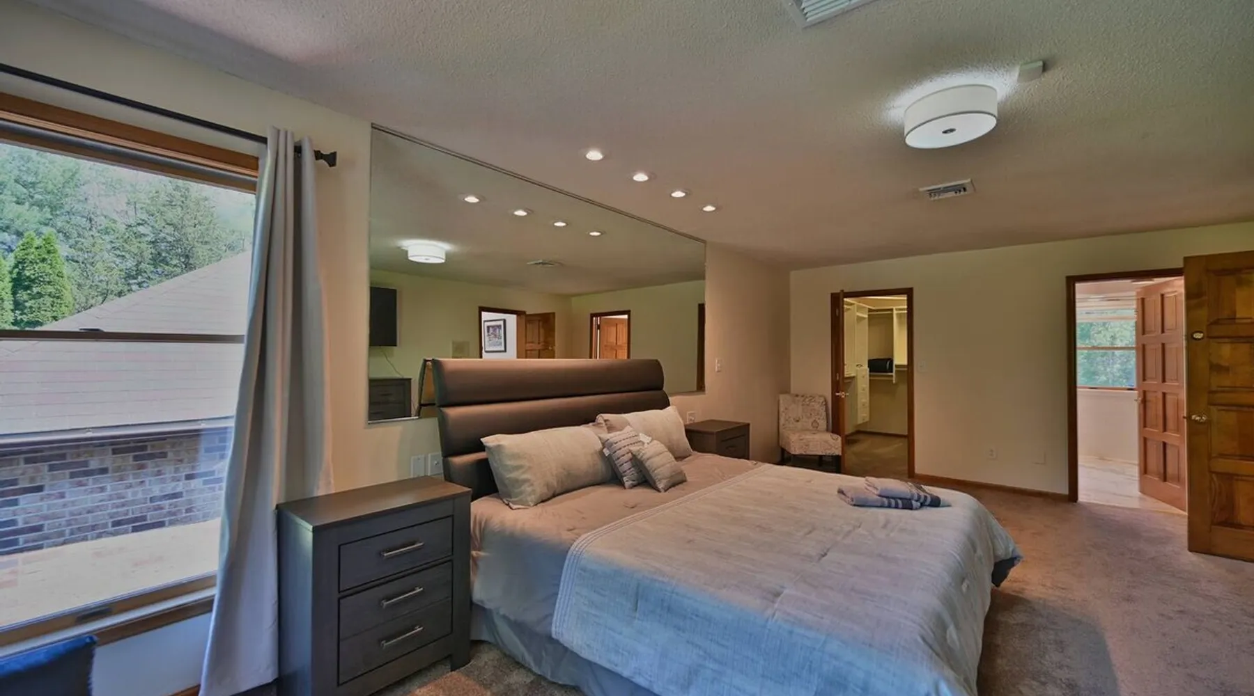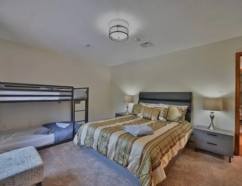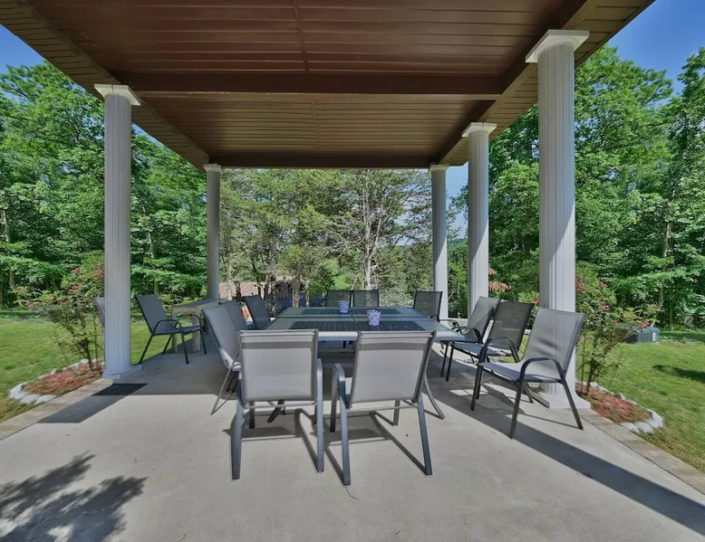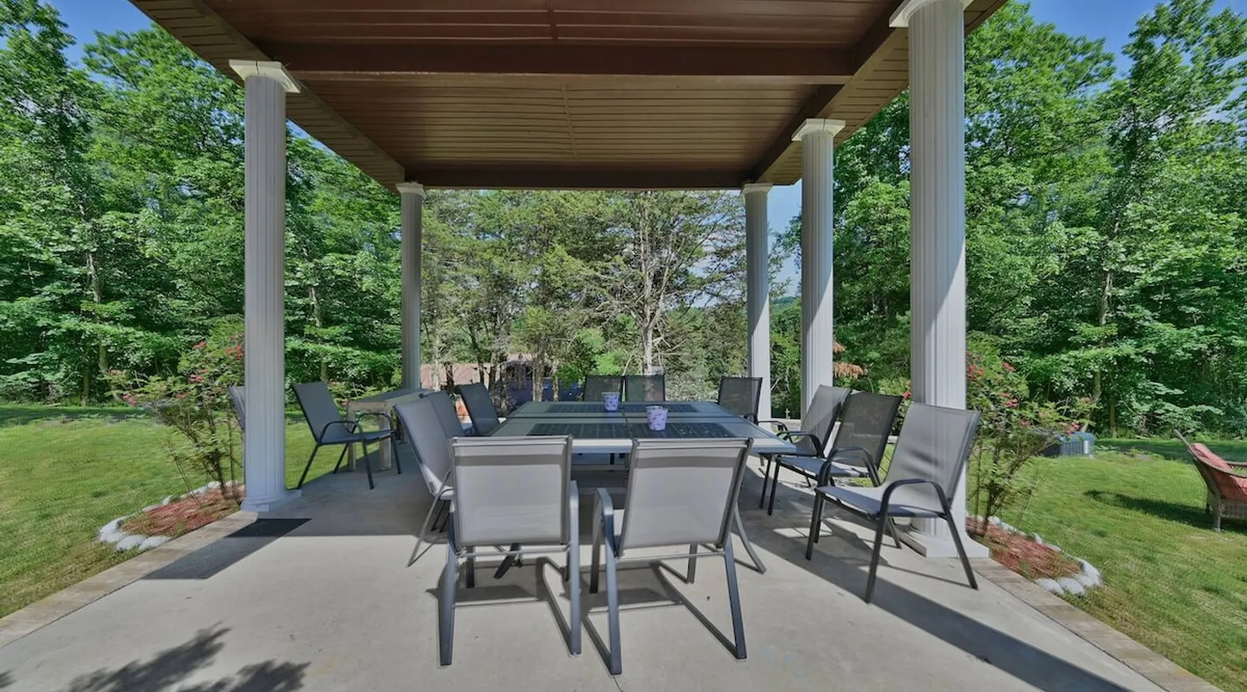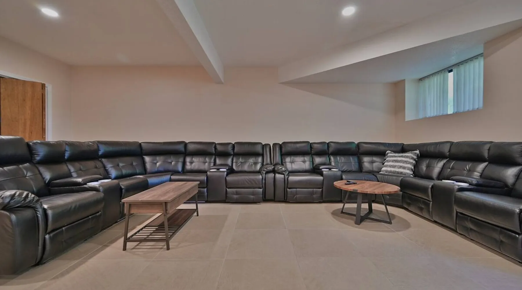 Swimming pool is open from May 10th to October 13 Experience the abundance of this 8 bedroom, 5 full and 2 half bathroom villa that is 8700 SQF in the tranquil area of Poconos Mountains. This villa offers a cozy, entertaining, and family-friendly getaway close to the various sights, activities, and famous spots of the Poconos Mountains. A private outdoor pool, hot tub, gym, sauna, and many more amenities exist. This villa has just been refurbished with new furniture, cozy beds & bedding The space As soon as you step foot in the luxury three-floor pool villa, you're welcomed by a very stylish yet highly comfortable open-plan living area. It is designed and decorated in an elegant manner that compliments the breathtaking vacation setting of the Poconos Mountains! The fully equipped kitchen and its adjacent dining area open onto the entertaining living room, setting the tone for many memorable evenings. Plenty of natural light coming through the large windows and glass doors makes the whole villa very bright during the entire day. Retreat to eight comfortable bedrooms, which feature 5☆-resort comforts that allow you to rest after an exciting day of adventuring throughout the region. But wait! The best is yet to come! Step outside to the private pool area equipped with luxury amenities for ultimate relaxation or come down to the spacious game room and enjoy hours of endless fun. ✔ 8 Comfortable Bedrooms ✔ Open Design Living ✔ Fully Equipped Kitchen ✔ Swimming Pool ✔ Backyard (Seating, Fire Pit, BBQ) ✔ Game Room ✔ Sauna ✔ Gym ✔ Smart TVs ✔ High-Speed Wi-Fi ✔ Free Parking ★ LIVING ROOM ★ It immediately feels like home, with comfy sofas, a coffee table for snacks and drinks, and a smart TV. ✔ Three Comfortable Leather Sofas with Pillows ✔ Smart TV ✔ Coffee Table ✔ Comfy Sofa Chair ★ KITCHEN & DINING ★ It is fully equipped with state-of-the-art cooking appliances that make it suitable for preparing any meal, whether it is a simple breakfast, quick snack, or a three-course gourmet dinner. Spacious granite countertops and a vast kitchen island provide plenty of room for you to work your MasterChef magic. ✔ Microwave ✔ Stove ✔ Oven ✔ Refrigerator/Freezer ✔ Dishwasher ✔ Coffee Maker ✔ Toaster ✔ Blender ✔ Sink - Hot & Cold Water ✔ Trays ✔ Glasses ✔ Silverware ✔ Pots & Pans The dining area is perfectly nestled by the backyard entrance allowing you to gaze at the gorgeous natural surroundings while having delicious homemade meals. Another ✔ Custom Wood Slab Dining Table with Seating for 16 ★ SLEEPING ARRANGEMENTS – 8 BEDROOMS ★ After an exciting day of adventuring throughout the Pocono Mountains, you will be looking to rest for an equally entertaining tomorrow. Once you are ready to relax, please make your way to these comfortable bedrooms. ♛ Master Bedroom 1 - King-Size Bed + Sofa Bed ♛ Master Bedroom 2 - King-Size Bed + Crib ♛ Bedroom 3 - Queen-Size Bed + Bunk Bed (Twin over Twin) ♛ Bedroom 4 - Two Bunks Beds (Double over Double) ♛ Bedroom 5 - Queen-Size Bed ♛ Bedroom 6 - Bunk Bed (Double over Double) ♛ Bedroom 7 - Bunk Bed (Twin over Twin) ♛ Bedroom 8 - Queen-Size Bed Each bedroom is equipped with a similar set of amenities. ✔ Smart TV (only in Master Bedrooms) ✔ Pillows, Linens, and Sheets ✔ Closet with Hangers and Shelves ✔ Cabinet with Spacious Drawers ✔ Night Stands with Reading Lights ★ BATHROOMS ★ A total of seven full bathrooms can be found within the villa. All are stocked with fresh towels and essential toiletries, so you don't have to worry about bringing your own. ✔ Bath with a Shower ✔ Shower Cabin ✔ Vanity ✔ Mirror ✔ Toilet ✔ Towels ✔ Hair Dryer ✔ Essential Toiletries ★ GAME ROOM ★ Enjoy playing with your family and friends in the fully furnished basement floor used as a game room. We have prepared an abundance of entertaining activities that will make you lose track of time. The large comfortable sofa and the smart TV are perfect for unforgettable family movie nights! ✔ Pool Table ✔ Ping-Pong Table ✔ Arcade Machines ✔ Bar Area ✔ Smart TV ✔ Large U-Shaped Leather Sofa ★ BACKYARD + POOL AREA ★ Soak up the sun in complete privacy, surrounded by many entertaining and comfortable amenities for children and adults. Besides the luxurious pool area, you can enjoy the serenity of the lush green surroundings. ✔ Swimming Pool ✔ Fire Pit ✔ BBQ Grill ✔ Sun Lounges ✔ Covered Seating Area with Table and Chairs Guest access The entire villa is exclusively yours, without interruption for the duration of your stay, so relax, unwind, and make yourself at home. Other than the already mentioned amenities, the house also features: ✔ Sauna ✔ Gym ✔ High-Speed Wi-Fi ✔ Air Conditioning ✔ Heating ✔ Washer+ Dryer ✔ Free Parking