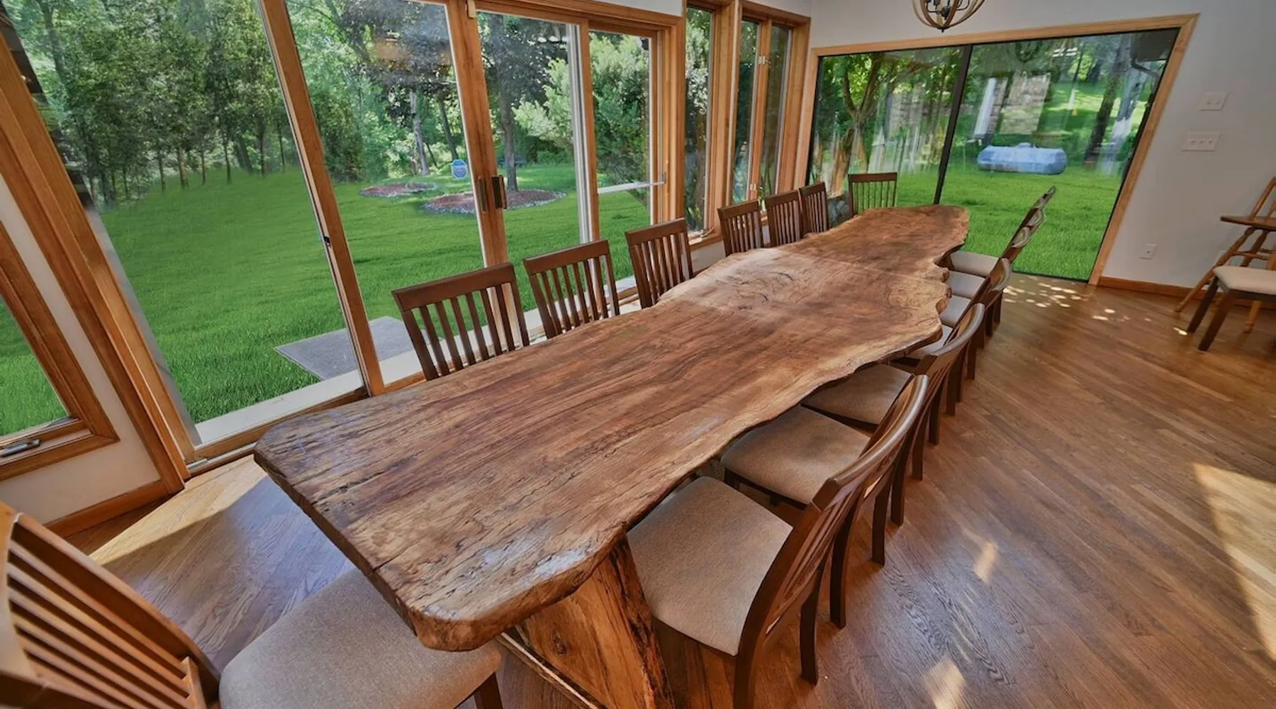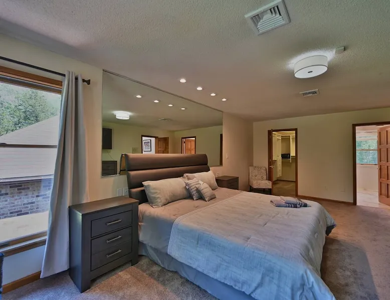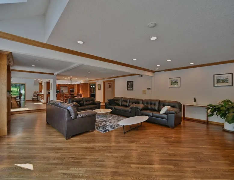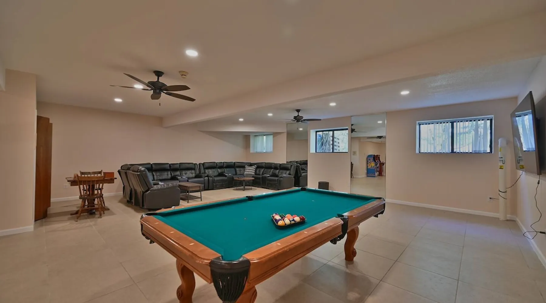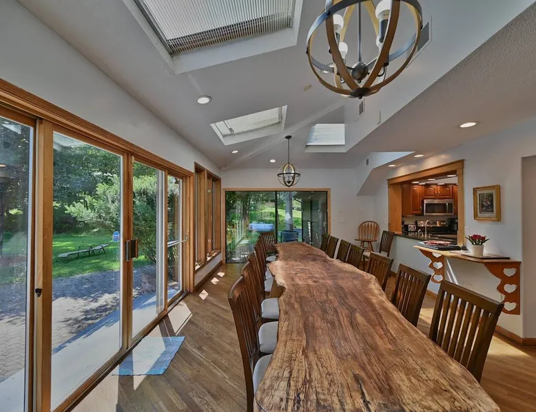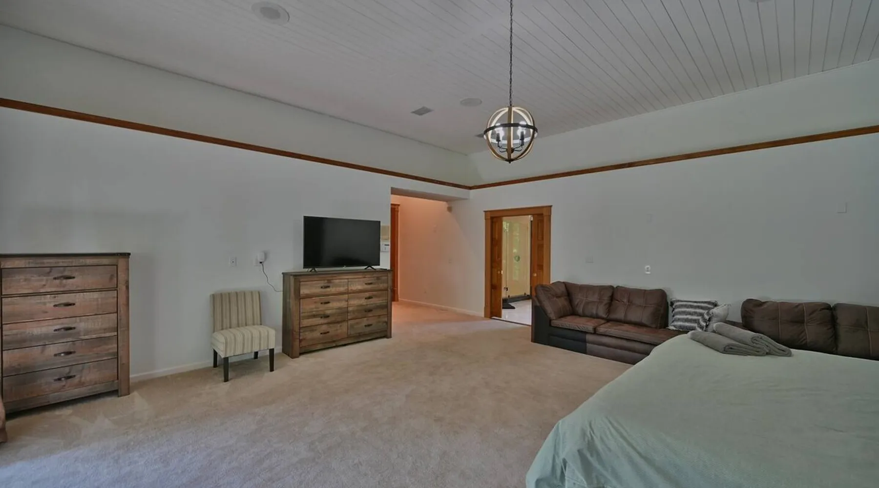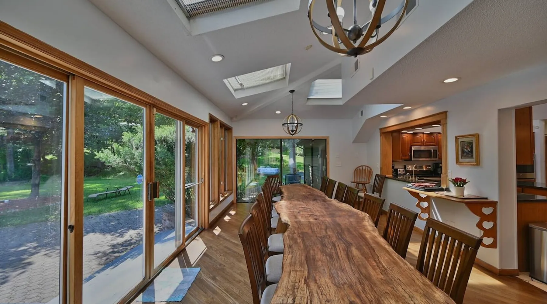 Swimming pool is open from May 10th to October 13 Experience the abundance of this 8 bedroom, 5 full and 2 half bathroom villa that is 8700 SQF in the tranquil area of Poconos Mountains. This villa offers a cozy, entertaining, and family-friendly getaway close to the various sights, activities, and famous spots of the Poconos Mountains. A private outdoor pool, hot tub, gym, sauna, and many more amenities exist. This villa has just been refurbished with new furniture, cozy beds & bedding The space As soon as you step foot in the luxury three-floor pool villa, you're welcomed by a very stylish yet highly comfortable open-plan living area. It is designed and decorated in an elegant manner that compliments the breathtaking vacation setting of the Poconos Mountains! The fully equipped kitchen and its adjacent dining area open onto the entertaining living room, setting the tone for many memorable evenings. Plenty of natural light coming through the large windows and glass doors makes the whole villa very bright during the entire day. Retreat to eight comfortable bedrooms, which feature 5☆-resort comforts that allow you to rest after an exciting day of adventuring throughout the region. But wait! The best is yet to come! Step outside to the private pool area equipped with luxury amenities for ultimate relaxation or come down to the spacious game room and enjoy hours of endless fun. ✔ 8 Comfortable Bedrooms ✔ Open Design Living ✔ Fully Equipped Kitchen ✔ Swimming Pool ✔ Backyard (Seating, Fire Pit, BBQ) ✔ Game Room ✔ Sauna ✔ Gym ✔ Smart TVs ✔ High-Speed Wi-Fi ✔ Free Parking ★ LIVING ROOM ★ It immediately feels like home, with comfy sofas, a coffee table for snacks and drinks, and a smart TV. ✔ Three Comfortable Leather Sofas with Pillows ✔ Smart TV ✔ Coffee Table ✔ Comfy Sofa Chair ★ KITCHEN & DINING ★ It is fully equipped with state-of-the-art cooking appliances that make it suitable for preparing any meal, whether it is a simple breakfast, quick snack, or a three-course gourmet dinner. Spacious granite countertops and a vast kitchen island provide plenty of room for you to work your MasterChef magic. ✔ Microwave ✔ Stove ✔ Oven ✔ Refrigerator/Freezer ✔ Dishwasher ✔ Coffee Maker ✔ Toaster ✔ Blender ✔ Sink - Hot & Cold Water ✔ Trays ✔ Glasses ✔ Silverware ✔ Pots & Pans The dining area is perfectly nestled by the backyard entrance allowing you to gaze at the gorgeous natural surroundings while having delicious homemade meals. Another ✔ Custom Wood Slab Dining Table with Seating for 16 ★ SLEEPING ARRANGEMENTS – 8 BEDROOMS ★ After an exciting day of adventuring throughout the Pocono Mountains, you will be looking to rest for an equally entertaining tomorrow. Once you are ready to relax, please make your way to these comfortable bedrooms. ♛ Master Bedroom 1 - King-Size Bed + Sofa Bed ♛ Master Bedroom 2 - King-Size Bed + Crib ♛ Bedroom 3 - Queen-Size Bed + Bunk Bed (Twin over Twin) ♛ Bedroom 4 - Two Bunks Beds (Double over Double) ♛ Bedroom 5 - Queen-Size Bed ♛ Bedroom 6 - Bunk Bed (Double over Double) ♛ Bedroom 7 - Bunk Bed (Twin over Twin) ♛ Bedroom 8 - Queen-Size Bed Each bedroom is equipped with a similar set of amenities. ✔ Smart TV (only in Master Bedrooms) ✔ Pillows, Linens, and Sheets ✔ Closet with Hangers and Shelves ✔ Cabinet with Spacious Drawers ✔ Night Stands with Reading Lights ★ BATHROOMS ★ A total of seven full bathrooms can be found within the villa. All are stocked with fresh towels and essential toiletries, so you don't have to worry about bringing your own. ✔ Bath with a Shower ✔ Shower Cabin ✔ Vanity ✔ Mirror ✔ Toilet ✔ Towels ✔ Hair Dryer ✔ Essential Toiletries ★ GAME ROOM ★ Enjoy playing with your family and friends in the fully furnished basement floor used as a game room. We have prepared an abundance of entertaining activities that will make you lose track of time. The large comfortable sofa and the smart TV are perfect for unforgettable family movie nights! ✔ Pool Table ✔ Ping-Pong Table ✔ Arcade Machines ✔ Bar Area ✔ Smart TV ✔ Large U-Shaped Leather Sofa ★ BACKYARD + POOL AREA ★ Soak up the sun in complete privacy, surrounded by many entertaining and comfortable amenities for children and adults. Besides the luxurious pool area, you can enjoy the serenity of the lush green surroundings. ✔ Swimming Pool ✔ Fire Pit ✔ BBQ Grill ✔ Sun Lounges ✔ Covered Seating Area with Table and Chairs Guest access The entire villa is exclusively yours, without interruption for the duration of your stay, so relax, unwind, and make yourself at home. Other than the already mentioned amenities, the house also features: ✔ Sauna ✔ Gym ✔ High-Speed Wi-Fi ✔ Air Conditioning ✔ Heating ✔ Washer+ Dryer ✔ Free Parking