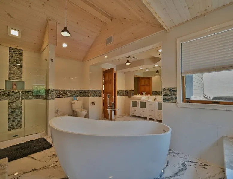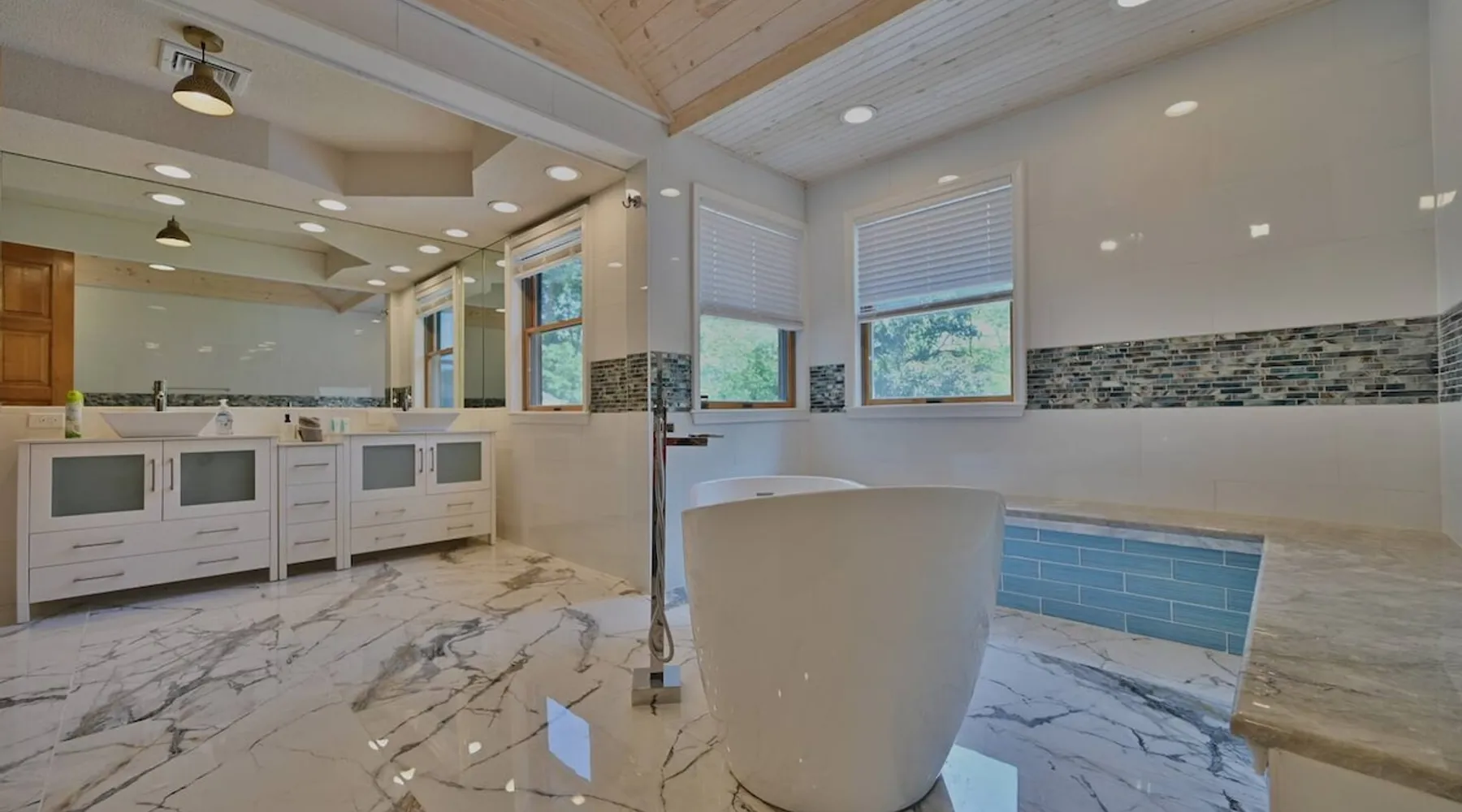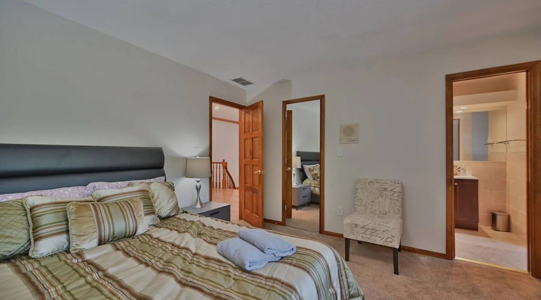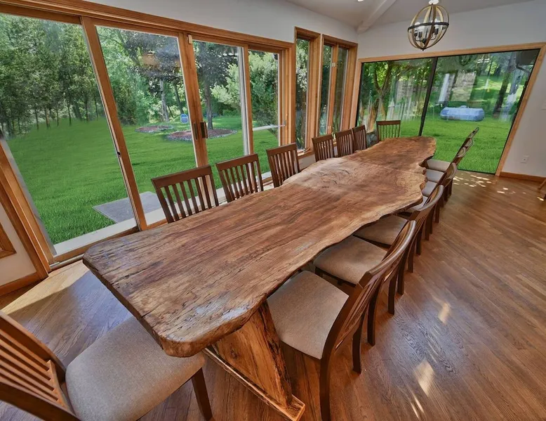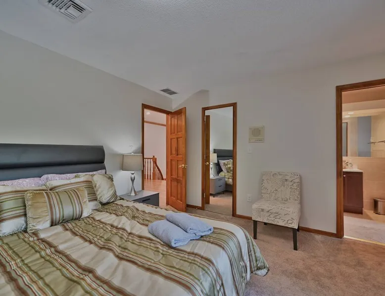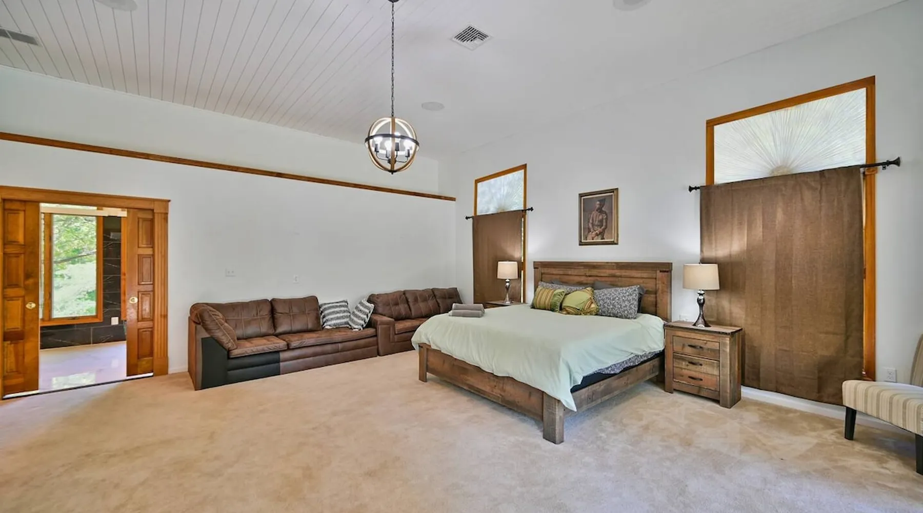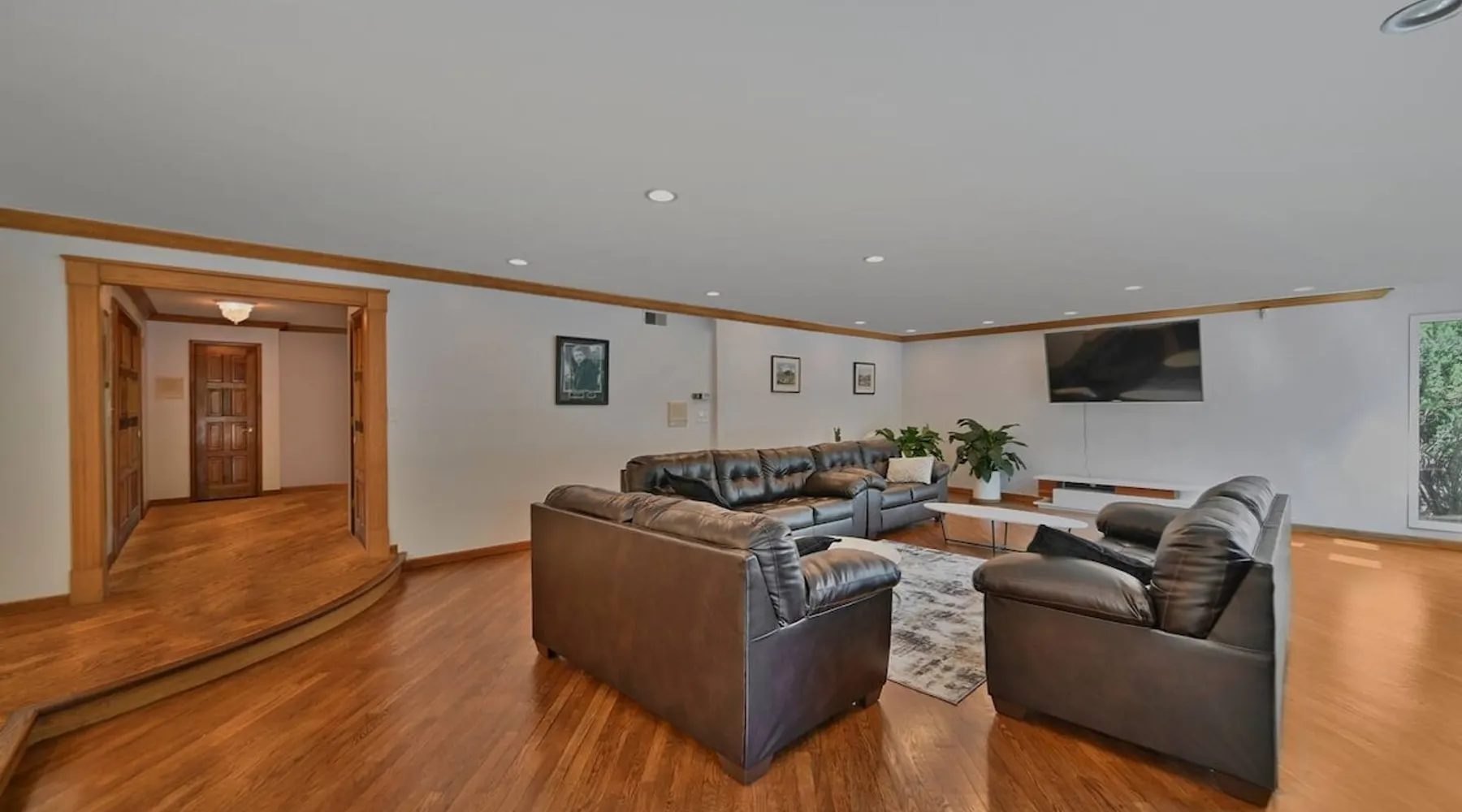 Swimming pool is open from May 10th to October 13 Experience the abundance of this 8 bedroom, 5 full and 2 half bathroom villa that is 8700 SQF in the tranquil area of Poconos Mountains. This villa offers a cozy, entertaining, and family-friendly getaway close to the various sights, activities, and famous spots of the Poconos Mountains. A private outdoor pool, hot tub, gym, sauna, and many more amenities exist. This villa has just been refurbished with new furniture, cozy beds & bedding The space As soon as you step foot in the luxury three-floor pool villa, you're welcomed by a very stylish yet highly comfortable open-plan living area. It is designed and decorated in an elegant manner that compliments the breathtaking vacation setting of the Poconos Mountains! The fully equipped kitchen and its adjacent dining area open onto the entertaining living room, setting the tone for many memorable evenings. Plenty of natural light coming through the large windows and glass doors makes the whole villa very bright during the entire day. Retreat to eight comfortable bedrooms, which feature 5☆-resort comforts that allow you to rest after an exciting day of adventuring throughout the region. But wait! The best is yet to come! Step outside to the private pool area equipped with luxury amenities for ultimate relaxation or come down to the spacious game room and enjoy hours of endless fun. ✔ 8 Comfortable Bedrooms ✔ Open Design Living ✔ Fully Equipped Kitchen ✔ Swimming Pool ✔ Backyard (Seating, Fire Pit, BBQ) ✔ Game Room ✔ Sauna ✔ Gym ✔ Smart TVs ✔ High-Speed Wi-Fi ✔ Free Parking ★ LIVING ROOM ★ It immediately feels like home, with comfy sofas, a coffee table for snacks and drinks, and a smart TV. ✔ Three Comfortable Leather Sofas with Pillows ✔ Smart TV ✔ Coffee Table ✔ Comfy Sofa Chair ★ KITCHEN & DINING ★ It is fully equipped with state-of-the-art cooking appliances that make it suitable for preparing any meal, whether it is a simple breakfast, quick snack, or a three-course gourmet dinner. Spacious granite countertops and a vast kitchen island provide plenty of room for you to work your MasterChef magic. ✔ Microwave ✔ Stove ✔ Oven ✔ Refrigerator/Freezer ✔ Dishwasher ✔ Coffee Maker ✔ Toaster ✔ Blender ✔ Sink - Hot & Cold Water ✔ Trays ✔ Glasses ✔ Silverware ✔ Pots & Pans The dining area is perfectly nestled by the backyard entrance allowing you to gaze at the gorgeous natural surroundings while having delicious homemade meals. Another ✔ Custom Wood Slab Dining Table with Seating for 16 ★ SLEEPING ARRANGEMENTS – 8 BEDROOMS ★ After an exciting day of adventuring throughout the Pocono Mountains, you will be looking to rest for an equally entertaining tomorrow. Once you are ready to relax, please make your way to these comfortable bedrooms. ♛ Master Bedroom 1 - King-Size Bed + Sofa Bed ♛ Master Bedroom 2 - King-Size Bed + Crib ♛ Bedroom 3 - Queen-Size Bed + Bunk Bed (Twin over Twin) ♛ Bedroom 4 - Two Bunks Beds (Double over Double) ♛ Bedroom 5 - Queen-Size Bed ♛ Bedroom 6 - Bunk Bed (Double over Double) ♛ Bedroom 7 - Bunk Bed (Twin over Twin) ♛ Bedroom 8 - Queen-Size Bed Each bedroom is equipped with a similar set of amenities. ✔ Smart TV (only in Master Bedrooms) ✔ Pillows, Linens, and Sheets ✔ Closet with Hangers and Shelves ✔ Cabinet with Spacious Drawers ✔ Night Stands with Reading Lights ★ BATHROOMS ★ A total of seven full bathrooms can be found within the villa. All are stocked with fresh towels and essential toiletries, so you don't have to worry about bringing your own. ✔ Bath with a Shower ✔ Shower Cabin ✔ Vanity ✔ Mirror ✔ Toilet ✔ Towels ✔ Hair Dryer ✔ Essential Toiletries ★ GAME ROOM ★ Enjoy playing with your family and friends in the fully furnished basement floor used as a game room. We have prepared an abundance of entertaining activities that will make you lose track of time. The large comfortable sofa and the smart TV are perfect for unforgettable family movie nights! ✔ Pool Table ✔ Ping-Pong Table ✔ Arcade Machines ✔ Bar Area ✔ Smart TV ✔ Large U-Shaped Leather Sofa ★ BACKYARD + POOL AREA ★ Soak up the sun in complete privacy, surrounded by many entertaining and comfortable amenities for children and adults. Besides the luxurious pool area, you can enjoy the serenity of the lush green surroundings. ✔ Swimming Pool ✔ Fire Pit ✔ BBQ Grill ✔ Sun Lounges ✔ Covered Seating Area with Table and Chairs Guest access The entire villa is exclusively yours, without interruption for the duration of your stay, so relax, unwind, and make yourself at home. Other than the already mentioned amenities, the house also features: ✔ Sauna ✔ Gym ✔ High-Speed Wi-Fi ✔ Air Conditioning ✔ Heating ✔ Washer+ Dryer ✔ Free Parking
