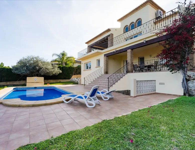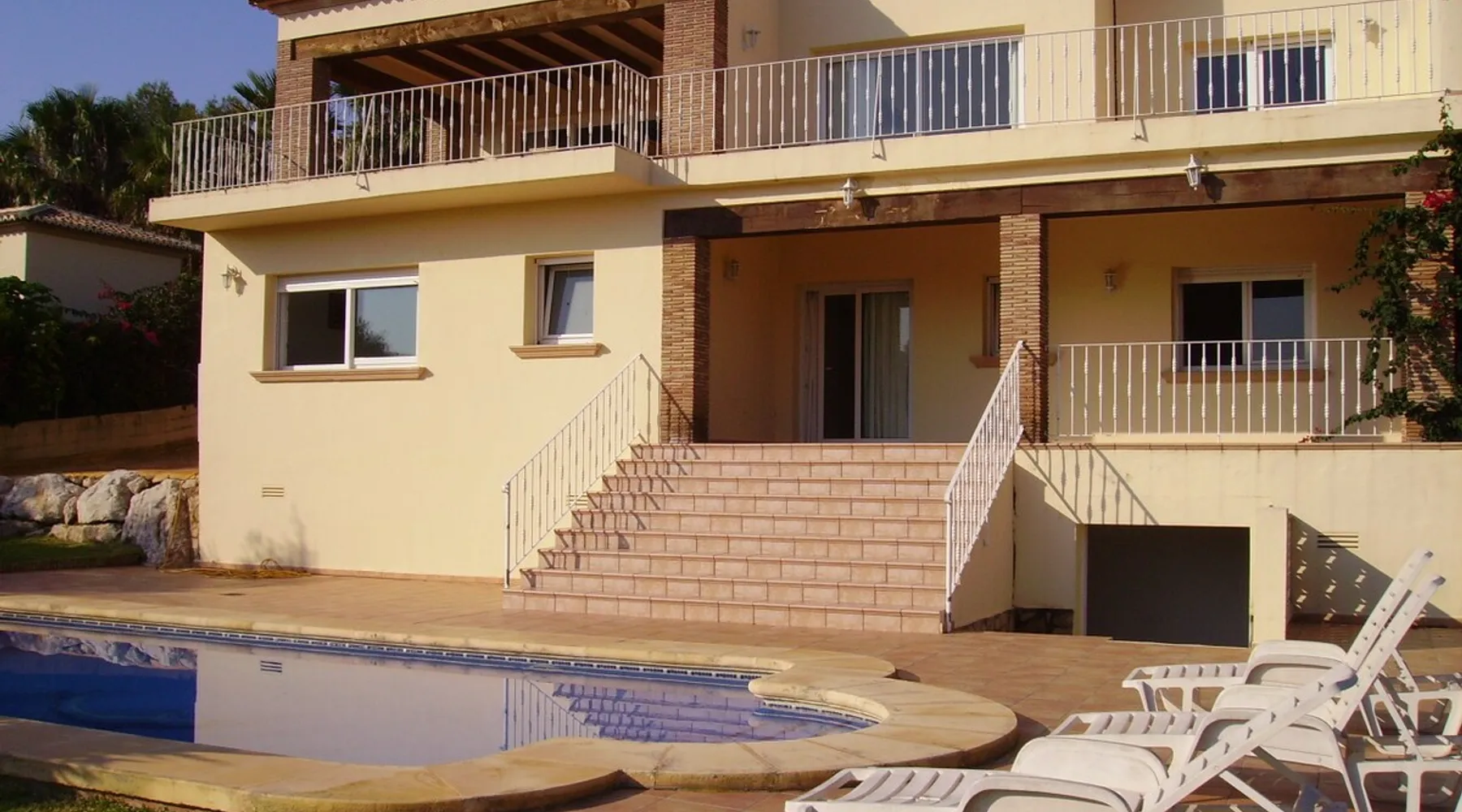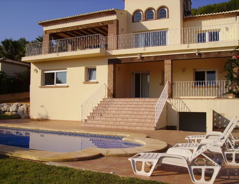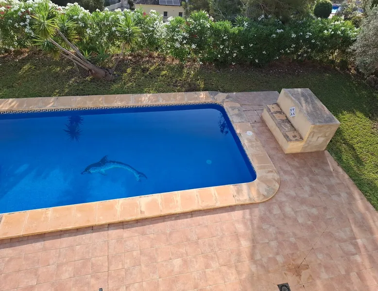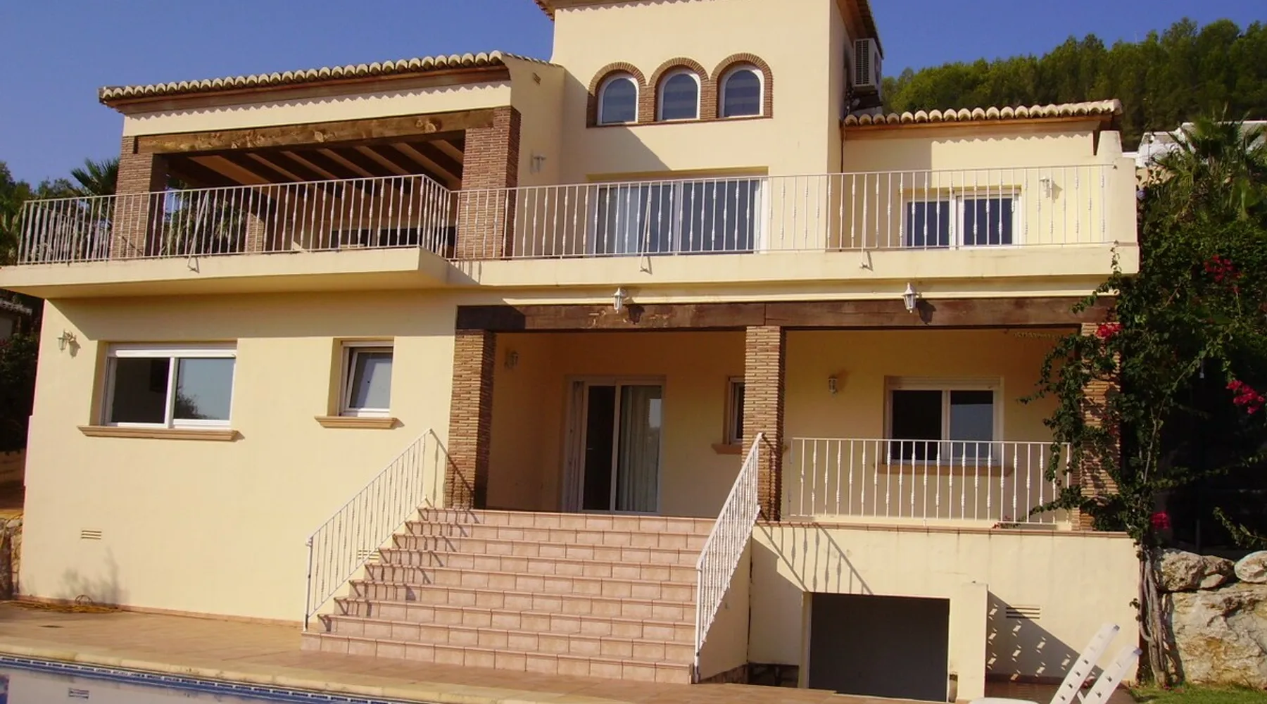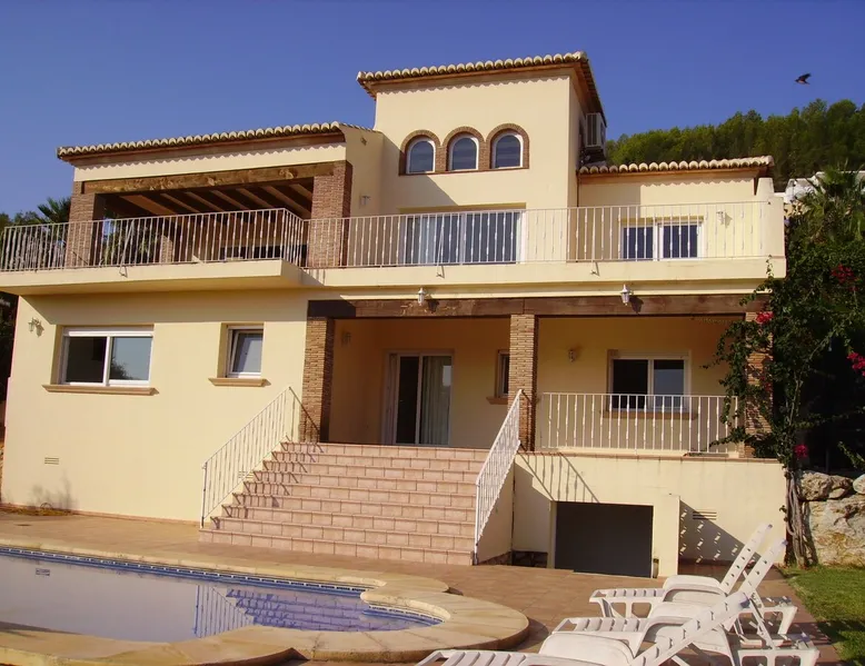 244 sqm villa just 5 minutes from Javea beaches and all its amenities. The house is divided into 2 levels. The upper level has a large living room with fireplace, dining room, equipped kitchen (washing machine, dishwasher), bath, covered and open terraces with panoramic sea views. The lower level has 4 double bedrooms, 3 bathrooms (2 en-suite), and a terrace with direct access to the pool (9 x 4 meters, WITHOUT PROTECTIONS FOR CHILDREN). Registration Details Spain - National registration number ESFCTU00000307100000000000000000000000000VT-447382-A7
