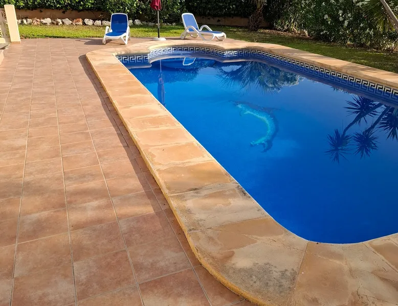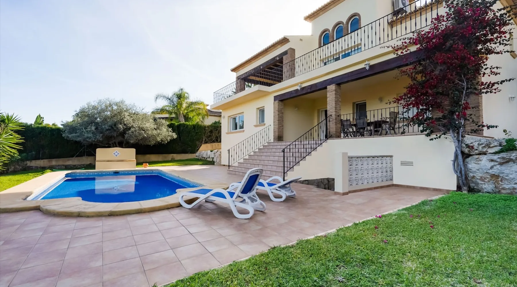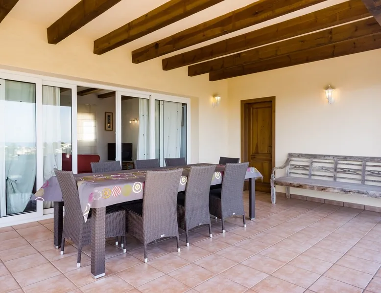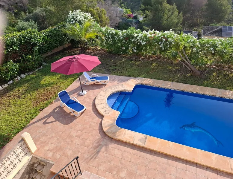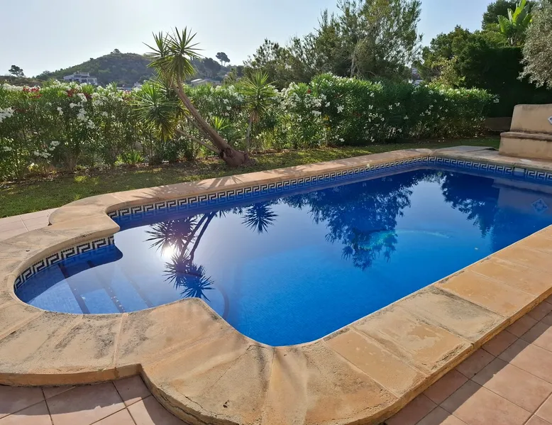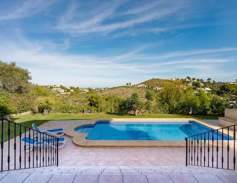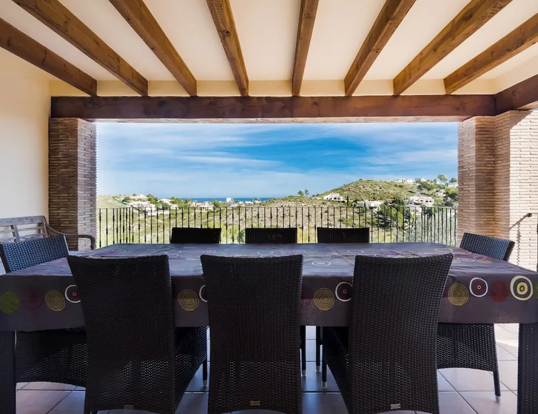 244 sqm villa just 5 minutes from Javea beaches and all its amenities. The house is divided into 2 levels. The upper level has a large living room with fireplace, dining room, equipped kitchen (washing machine, dishwasher), bath, covered and open terraces with panoramic sea views. The lower level has 4 double bedrooms, 3 bathrooms (2 en-suite), and a terrace with direct access to the pool (9 x 4 meters, WITHOUT PROTECTIONS FOR CHILDREN). Registration Details Spain - National registration number ESFCTU00000307100000000000000000000000000VT-447382-A7