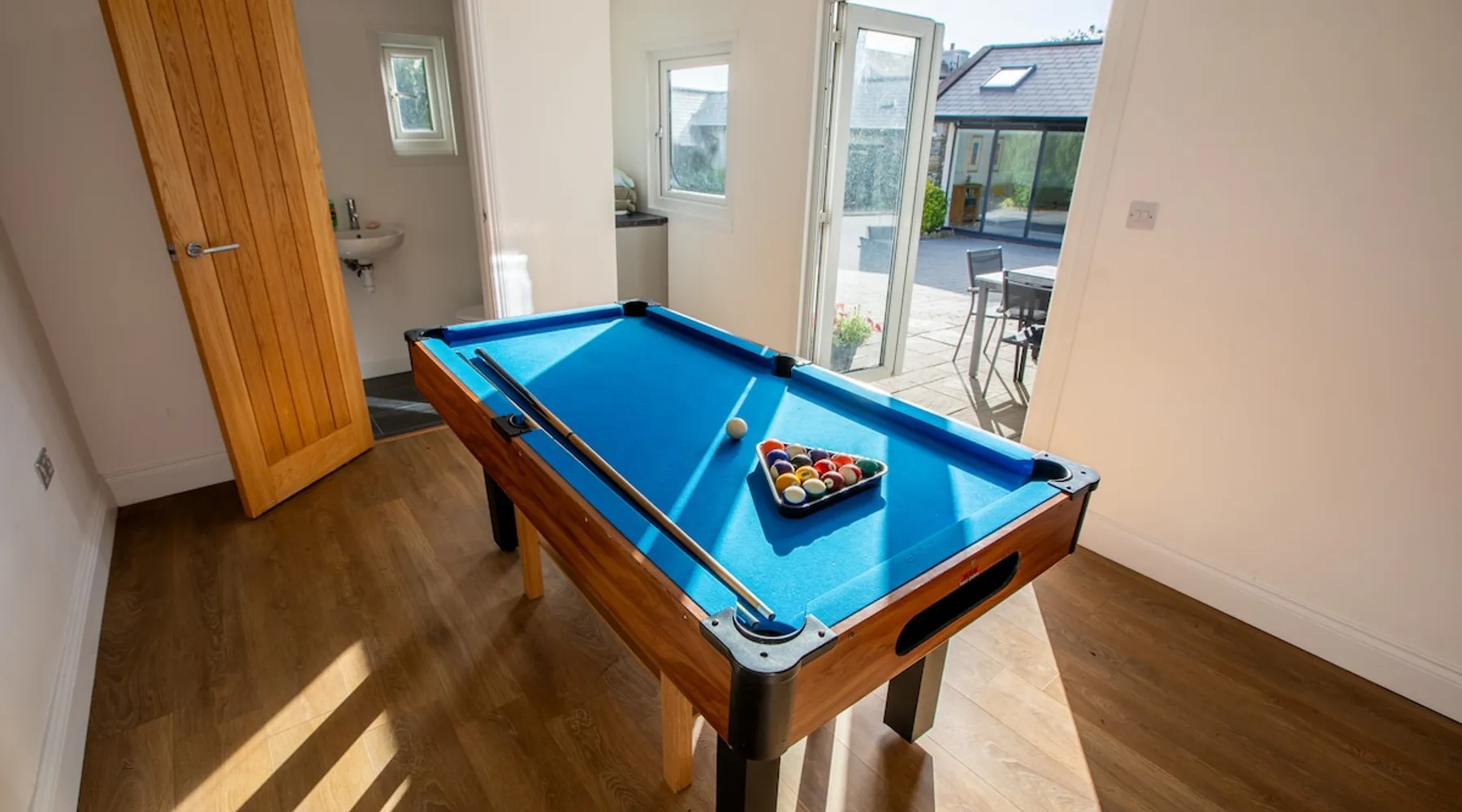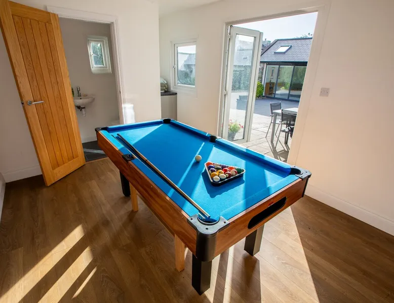 Surby Croft is a luxury 5 Star Gold detached 3 bedroom cottage near Port Erin. Newly built in 2018 and finished to a high contemporary standard. Private parking and surrounded by beautiful countryside. Perfect location for mountain bikers, walkers, families. Sleeps 6, can be singles or superking beds. One small dog welcome per booking. All towels, bedding and wifi included. 3 bedrooms (2 ensuite) large lounge with underfloor heating and modern kitchen with all appliances. No smoking throughout. The space Surby Croft is a delightful 5 Star detached property enjoying wonderful rural views. Perfect for families and those looking to enjoy walking and cycling. There is a fully equipped detached games room with a pool table and outdoor games and beach equipment. The patio area is a real suntrap on summer evenings where you can relax and enjoy the peace and tranquility. Guest access There is private parking available. The nearest bus stop is a 5-10 minute walk away at Ballafesson. Other things to note Please advise in advance if the beds are required as singles or superking. Registration Details 640943