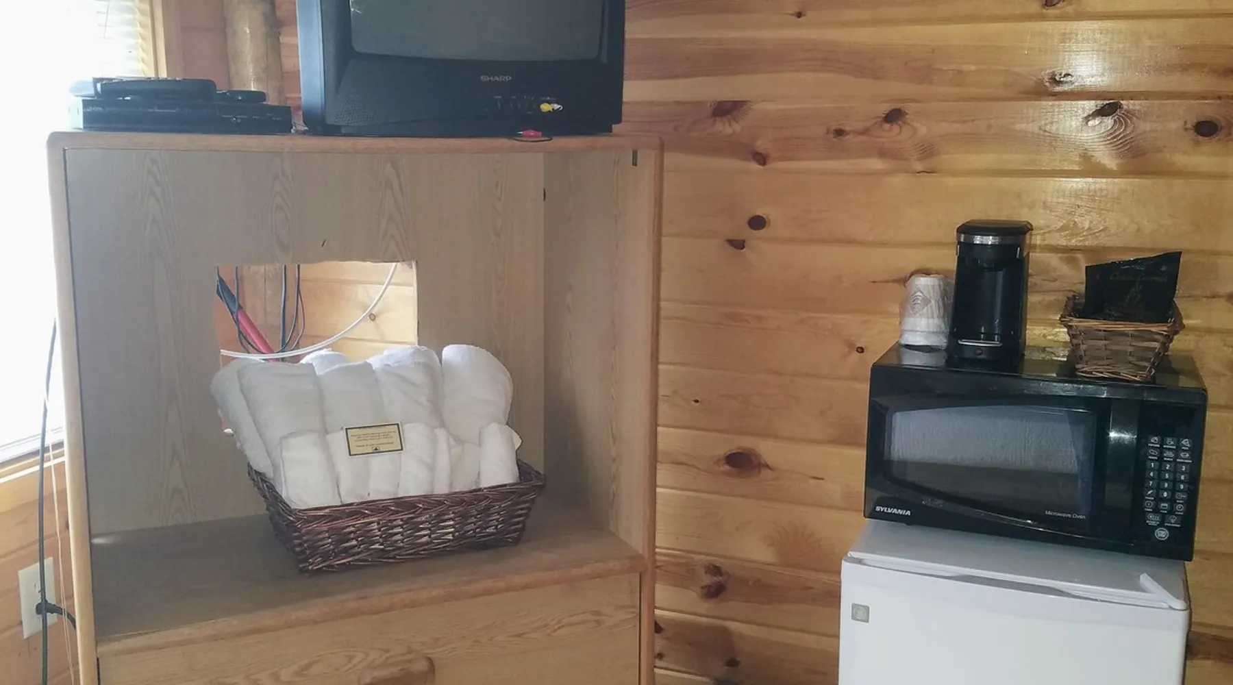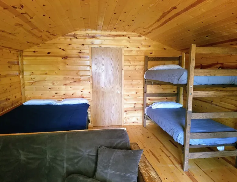 Come enjoy a peaceful stay in this cozy cabin. The cabin is located near the bath/shower houses, the bar and grill and a short walk to the pool. The space Cabin 15 is equipped with a queen bed, 2 sets of bunk beds and a futon that folds out into a full. A dorm fridge, microwave, coffee pot (with condiments, coffee and cups), cable TV, pillows and air conditioning is also included. This cabin comes with professionally pressed linens and towels for a fresh, clean feel. You will also have your own picnic table to enjoy meals on. THIS CABIN DOES NOT HAVE A BATHROOM BUT IS LOCATED WITHIN WALKING DISTANCE TO THE BATHHOUSE. Guest access During your stay at our campground, enjoy all of the amenities we have to offer, breakfast (fee applies), a heated pool, above-ground hot tub, playground area, WIFI, coin-operated laundry facilities, shower house and bathhouse, on-site propane services, pool table, dart board, bar area and community natural gas fire pit. We also border the Black Hills National Forest giving you access to miles of hiking, biking and 4-wheeling trails. Other things to note FYI...We do have a train that comes thru twice a day, once in the morning and again in the evening. Some guests claim it a nuisance where as others never even hear it.
