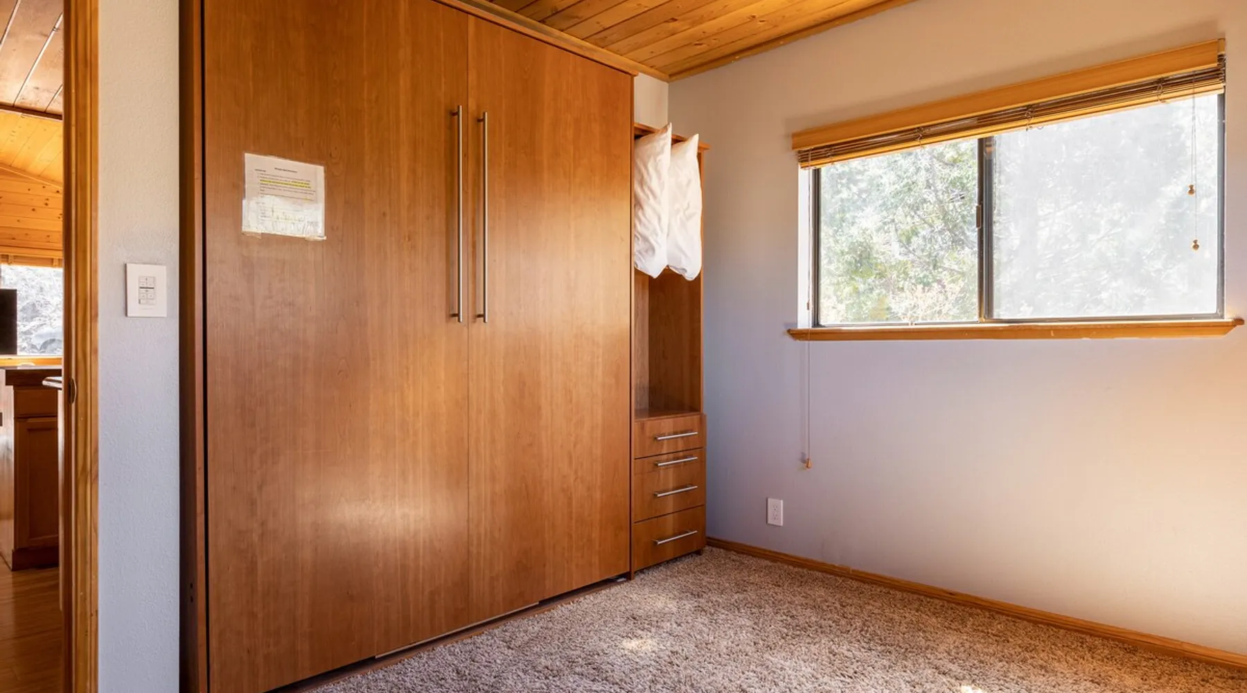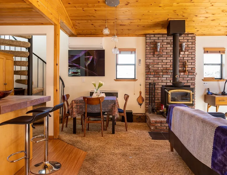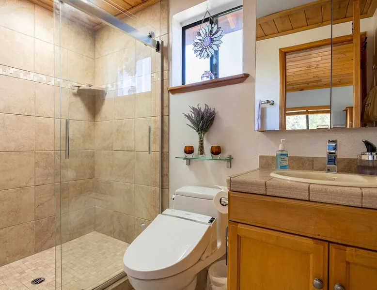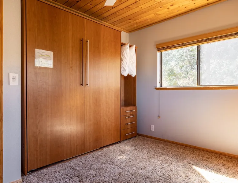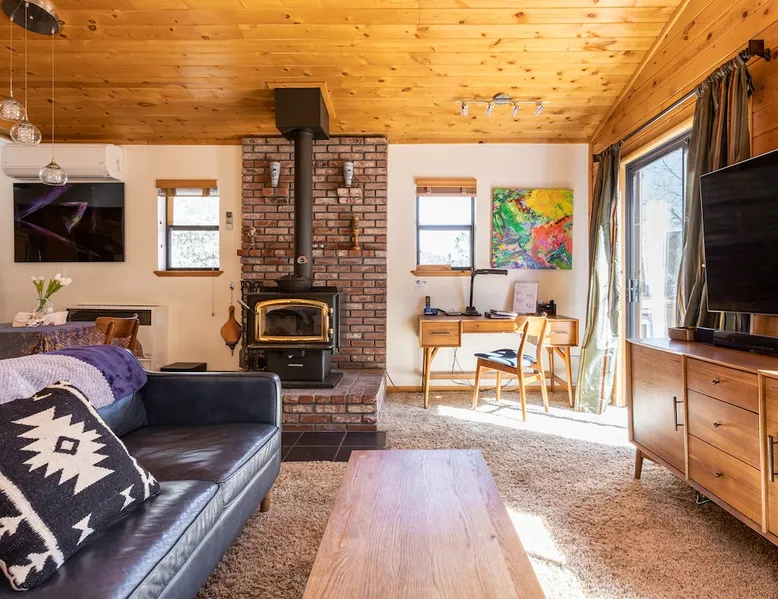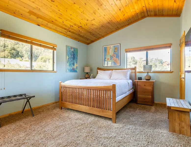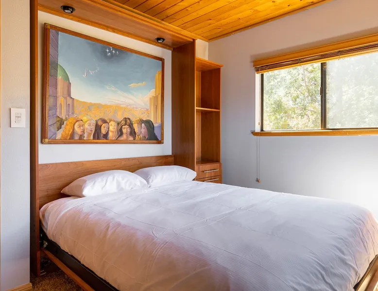 Our cabin is all about relaxation and reconnecting with nature. Breathe in the fresh forest air and enjoy the peaceful atmosphere that Pine Mountain Club offers. There are also many opportunities for new adventures golfing, hiking trails, exploring waterfalls and fishing on a lake. Public pool and hot tub with seasonal use. Our modern mountain cabin sleeps 4 and has a cozy woodstove with 2 sunny decks with mountain views. Wifi and bbq, gourmet kitchen. The space Cozy yet modern mountain cabin in the Los Padres National Forest just 45 minutes from Bakersfield and 75 minutes from the San Fernando Valley. Pine Mountain is one of Southern California's best-kept secrets--a small alpine village with a four-season climate. We have light snow in the Winter, spectacular wildflowers in Spring, and gorgeous Fall colors. It's a wonderful getaway—and yet so close! Our two-story home is located on a quiet street at 5771 feet. Lovely pine ceilings throughout the cabin contribute to the warm ambience. The 1000 sq. ft. interior is furnished in a modern style with a leather sofa and some cool abstract art on the walls. The living room has a wood stove and 50" smart HDTV with direct satellite & Blu Ray DVD. A skylight in the living room brings in lots of light. The master bedroom (queen bed) is separate from the downstairs and reached via a spiral staircase leading up to French doors. The master bathroom adjoins the bedroom and has a skylight over the double length tiled shower. A second bedroom downstairs has a murphy bed with a queen size mattress. There is air conditioning in the living room as well as in the upstairs bedroom and 2 fans are provided-- although generally temps are not above 85 degrees on a hot day and generally drop into the 60's in the evening. Upper and lower decks offer lovely views of Mt. Pinos and the San Emigdio range. Relax on the sunny decks or in the Adirondack chair near the pond surrounded by pine trees. Plan to do some bbqing--it is so pleasant to do some grilling on the upper deck bbq and dine outdoors. Our cabin is clean and well-kept. It can comfortably accommodate 4 people. Please NO smoking or pets! Mt. Pinos has the best view of the stars in So. California—star parties are common whenever there is a new moon. In addition, since we are in the Padres National Forest - wildlife (deer, raccoons, bobcat, fox, bunnies, squirrels, quail, stellar and scrub jays) abounds. Rare California Condor preserve located on Cerro Noroeste Road (main road through town) approximately 15 miles west. We have an extraordinary number of sunny days—it is rare to have a gloomy day. Since SNOW may be present during cooler months be sure to carry chains. Our roads are well-maintained but the CHP is strict about safety when snow is possible. Sledding awaits at Mt. Pinos just 15-20 minutes away, GREAT for cross-country skiing and snow-play destination! The local Village Commercial Center is 2 miles away and offers access to a market, gift shops, and several restaurants. Mount Abel and Mt. Pinos are nearby offering cross country skiing in the winter and hiking in the summer. Catch and release fishing is available at Fern's Lake which is just a mile away. Borrow a fishing pole at the Association office. Or simply relax on the deck and enjoy the fresh mountain air-- you won't want to leave! It is very peaceful to spend a few days here-- and also comfortable. We LOVE being here with time to read, hike, relax.....did I mention slowing down and enjoying life? BREATHE! Guest access The entire cabin and both decks are for your private use. Guest passes allow access to the pool, golf, tennis and other homeowner amenities POOL & HOT TUB ACCESS (SEASONAL) To enter the pool/hot tube area, use the pool gate card and a guest card hanging by the front door. You'll need your I.D. at the pool to pay the small fee. ($5/day/guest). The pool hours allow lap swims from 8 am to 10 am. The pool is closed from 10 am to noon. Open swim is from noon to 7 pm and lap swims from 7 pm to 8 pm. Please obey the rules for the pool. Rinse before entering the pool. There are restrooms, water fountains and a changing room. Please don’t lose the pool and guest cards since we will need them for the next guests. There will be $150 replacement charge per lost card. Other things to note -Verizon is the only cell phone service in Pine Mountain Club. Please save directions and door passcode. - Arrival required by 8PM unless prior approval provided - NO smoking inside the cabin -Not accessibility-friendly: the cabin has a spiral staircase to the master bedroom. The second bedroom is entry level. -Not ideal for young kids because of the design of the spiral staircase. -No pets allowed. -There is no hospital in PMC and the nearest hospital is about an hour away. -This area is at high risk for wildfires. No open fires outside! -Conserve water, please. -BEARS: Important to note that we share this environment with a lot of wildlife. Between March and October you may see California black bears. For the safety of you and the wildlife please do not feed or interact with them. All trash must be taken with you or disposed of at the Transfer Site at 16143 Aleutian Dr, (All the way to the end of the road, past the horses, at the top of the hill). SAFETY ITEMS NO smoking inside. If smoking is detected in the Cabin, there will be a $1000 fine. NO open fires anywhere outside or on the property NO discharging of any firearms or use of launching devices, including BB guns, air pistols, paintball, pellet, and air soft guns, bows, crossbows, slingshots NO parking on streets unless listed as specific exceptions Do NOT feed wildlife DO NOT keep any trash outside NO loud noise or music past 10P PLEASE NOTE: Violations can be cited and fines range from $1000 to $4500. Any Homeowner Association violations during your stay will be paid by the guest.