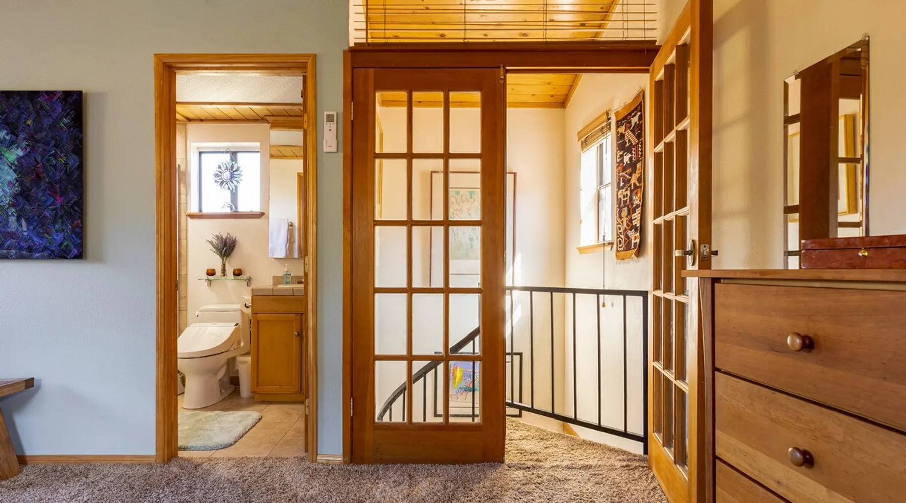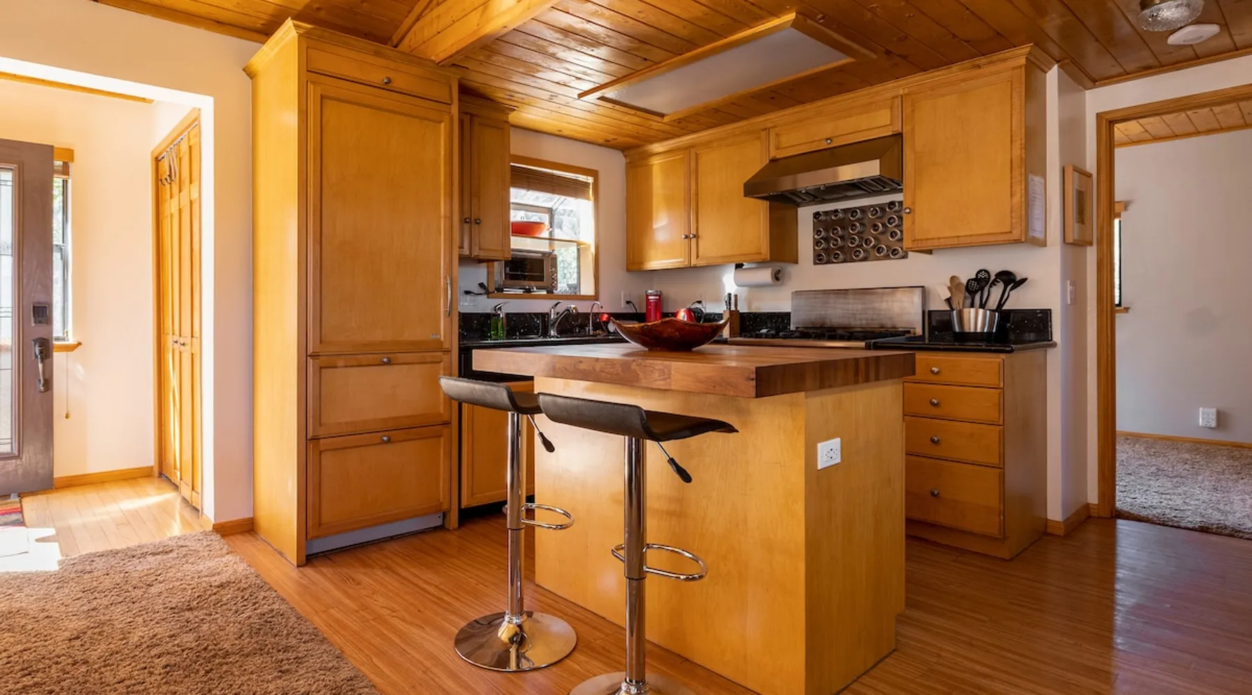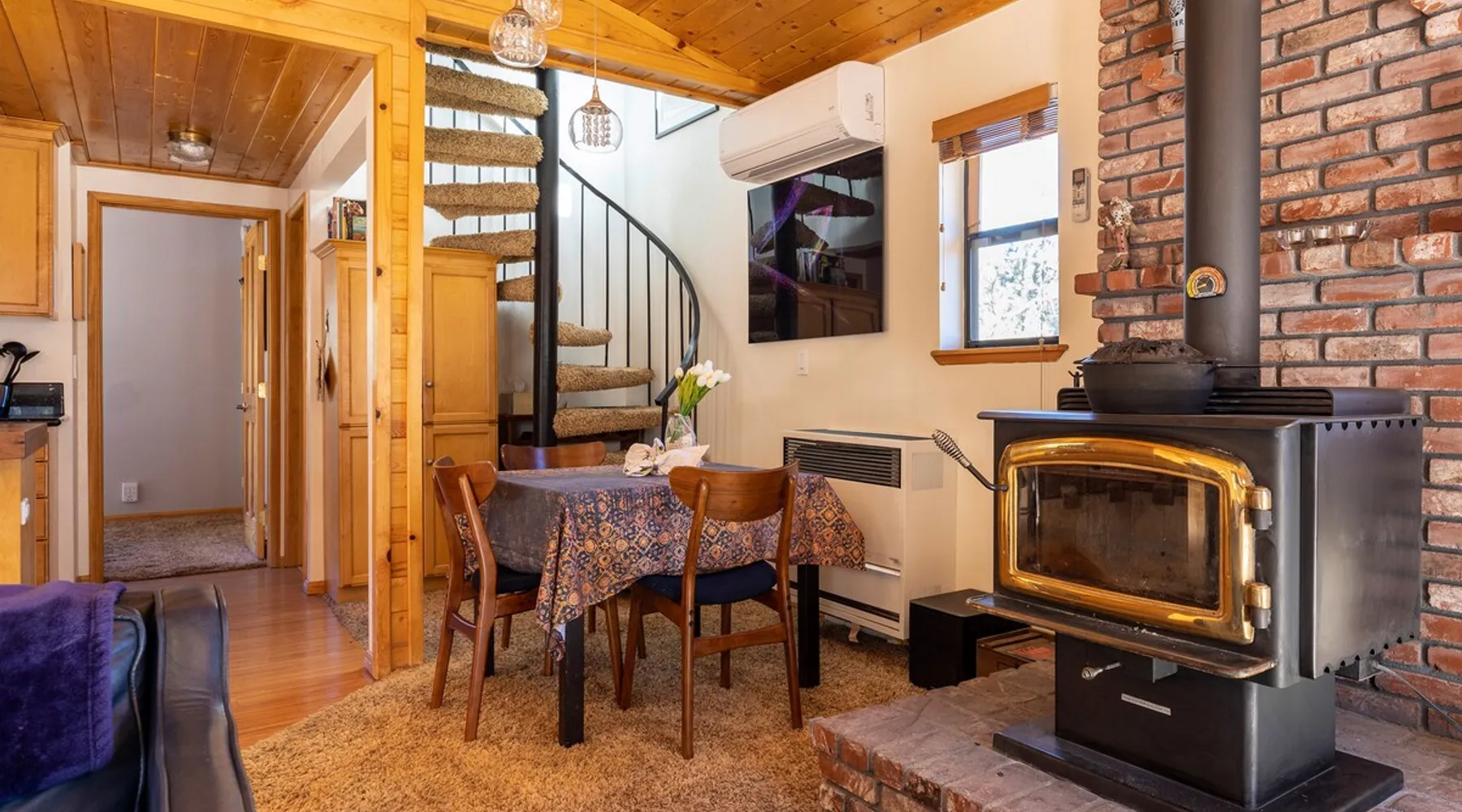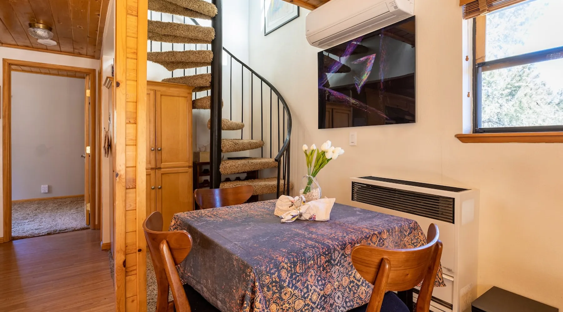 Our cabin is all about relaxation and reconnecting with nature. Breathe in the fresh forest air and enjoy the peaceful atmosphere that Pine Mountain Club offers. There are also many opportunities for new adventures golfing, hiking trails, exploring waterfalls and fishing on a lake. Public pool and hot tub with seasonal use. Our modern mountain cabin sleeps 4 and has a cozy woodstove with 2 sunny decks with mountain views. Wifi and bbq, gourmet kitchen. The space Cozy yet modern mountain cabin in the Los Padres National Forest just 45 minutes from Bakersfield and 75 minutes from the San Fernando Valley. Pine Mountain is one of Southern California's best-kept secrets--a small alpine village with a four-season climate. We have light snow in the Winter, spectacular wildflowers in Spring, and gorgeous Fall colors. It's a wonderful getaway—and yet so close! Our two-story home is located on a quiet street at 5771 feet. Lovely pine ceilings throughout the cabin contribute to the warm ambience. The 1000 sq. ft. interior is furnished in a modern style with a leather sofa and some cool abstract art on the walls. The living room has a wood stove and 50" smart HDTV with direct satellite & Blu Ray DVD. A skylight in the living room brings in lots of light. The master bedroom (queen bed) is separate from the downstairs and reached via a spiral staircase leading up to French doors. The master bathroom adjoins the bedroom and has a skylight over the double length tiled shower. A second bedroom downstairs has a murphy bed with a queen size mattress. There is air conditioning in the living room as well as in the upstairs bedroom and 2 fans are provided-- although generally temps are not above 85 degrees on a hot day and generally drop into the 60's in the evening. Upper and lower decks offer lovely views of Mt. Pinos and the San Emigdio range. Relax on the sunny decks or in the Adirondack chair near the pond surrounded by pine trees. Plan to do some bbqing--it is so pleasant to do some grilling on the upper deck bbq and dine outdoors. Our cabin is clean and well-kept. It can comfortably accommodate 4 people. Please NO smoking or pets! Mt. Pinos has the best view of the stars in So. California—star parties are common whenever there is a new moon. In addition, since we are in the Padres National Forest - wildlife (deer, raccoons, bobcat, fox, bunnies, squirrels, quail, stellar and scrub jays) abounds. Rare California Condor preserve located on Cerro Noroeste Road (main road through town) approximately 15 miles west. We have an extraordinary number of sunny days—it is rare to have a gloomy day. Since SNOW may be present during cooler months be sure to carry chains. Our roads are well-maintained but the CHP is strict about safety when snow is possible. Sledding awaits at Mt. Pinos just 15-20 minutes away, GREAT for cross-country skiing and snow-play destination! The local Village Commercial Center is 2 miles away and offers access to a market, gift shops, and several restaurants. Mount Abel and Mt. Pinos are nearby offering cross country skiing in the winter and hiking in the summer. Catch and release fishing is available at Fern's Lake which is just a mile away. Borrow a fishing pole at the Association office. Or simply relax on the deck and enjoy the fresh mountain air-- you won't want to leave! It is very peaceful to spend a few days here-- and also comfortable. We LOVE being here with time to read, hike, relax.....did I mention slowing down and enjoying life? BREATHE! Guest access The entire cabin and both decks are for your private use. Guest passes allow access to the pool, golf, tennis and other homeowner amenities POOL & HOT TUB ACCESS (SEASONAL) To enter the pool/hot tube area, use the pool gate card and a guest card hanging by the front door. You'll need your I.D. at the pool to pay the small fee. ($5/day/guest). The pool hours allow lap swims from 8 am to 10 am. The pool is closed from 10 am to noon. Open swim is from noon to 7 pm and lap swims from 7 pm to 8 pm. Please obey the rules for the pool. Rinse before entering the pool. There are restrooms, water fountains and a changing room. Please don’t lose the pool and guest cards since we will need them for the next guests. There will be $150 replacement charge per lost card. Other things to note -Verizon is the only cell phone service in Pine Mountain Club. Please save directions and door passcode. - Arrival required by 8PM unless prior approval provided - NO smoking inside the cabin -Not accessibility-friendly: the cabin has a spiral staircase to the master bedroom. The second bedroom is entry level. -Not ideal for young kids because of the design of the spiral staircase. -No pets allowed. -There is no hospital in PMC and the nearest hospital is about an hour away. -This area is at high risk for wildfires. No open fires outside! -Conserve water, please. -BEARS: Important to note that we share this environment with a lot of wildlife. Between March and October you may see California black bears. For the safety of you and the wildlife please do not feed or interact with them. All trash must be taken with you or disposed of at the Transfer Site at 16143 Aleutian Dr, (All the way to the end of the road, past the horses, at the top of the hill). SAFETY ITEMS NO smoking inside. If smoking is detected in the Cabin, there will be a $1000 fine. NO open fires anywhere outside or on the property NO discharging of any firearms or use of launching devices, including BB guns, air pistols, paintball, pellet, and air soft guns, bows, crossbows, slingshots NO parking on streets unless listed as specific exceptions Do NOT feed wildlife DO NOT keep any trash outside NO loud noise or music past 10P PLEASE NOTE: Violations can be cited and fines range from $1000 to $4500. Any Homeowner Association violations during your stay will be paid by the guest.