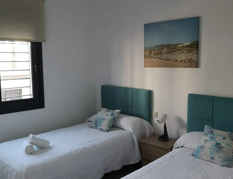 Enjoy a stylish experience at this centrally-located place. Located 30 meters from the Puerta de Jerez and a 10-minute walk to Los Lance beach. Quiet residential area with private parking, surrounded by shops with local products. The apartment has a (brand new) nautical style which has WIFI, two 55" and 42" TVs, air conditioning, hair dryer, washing machine and ironing board. The space Newly constructed modern building. The apartment is perfect for 4 people, but we give the option to be occupied by 5 people due to the sofa bed. It consists of: 2 bedrooms. Living room-kitchen-dining room. A nice private patio. Master bedroom has a double bed with built-in closet and 42' TV. Second bedroom with two twin beds and a closet. 65m2 apartment with a beautiful living room and fully-equipped kitchen, remote control for private parking. It is perfect for 4 people, but can be occupied by 5 people due to the sofa bed Guest access Community interior patio Other things to note Tarifa is one of the best places in the world for wind sports (kitesurfing, windsurfing, and surfing) and its clear waters are ideal for diving, snorkeling, or spearfishing.