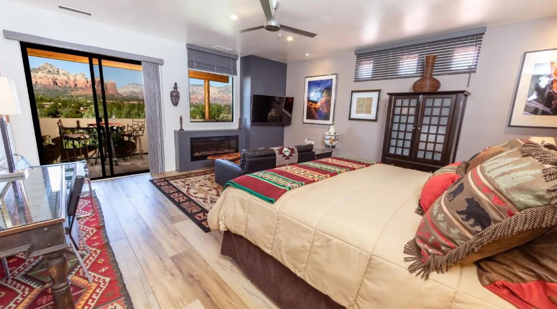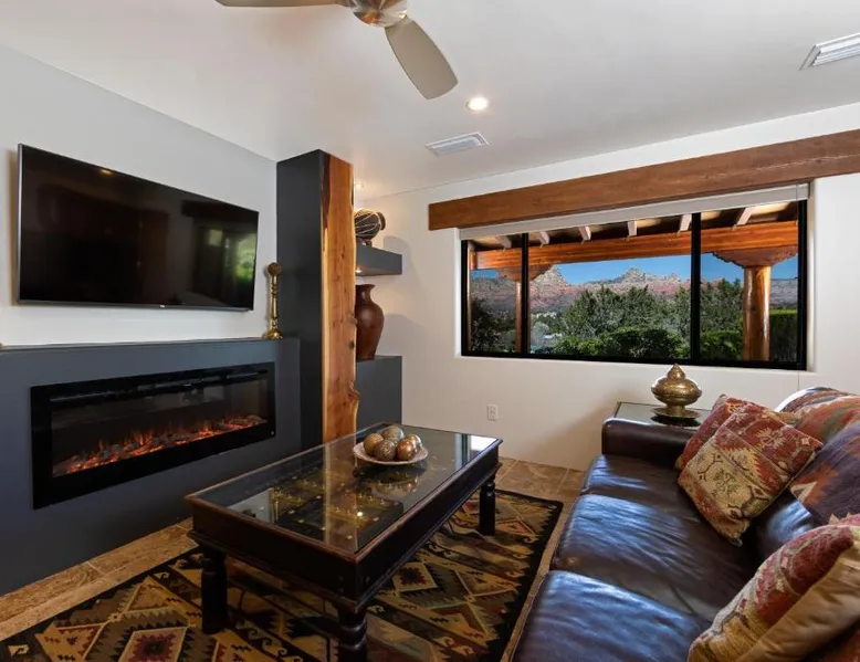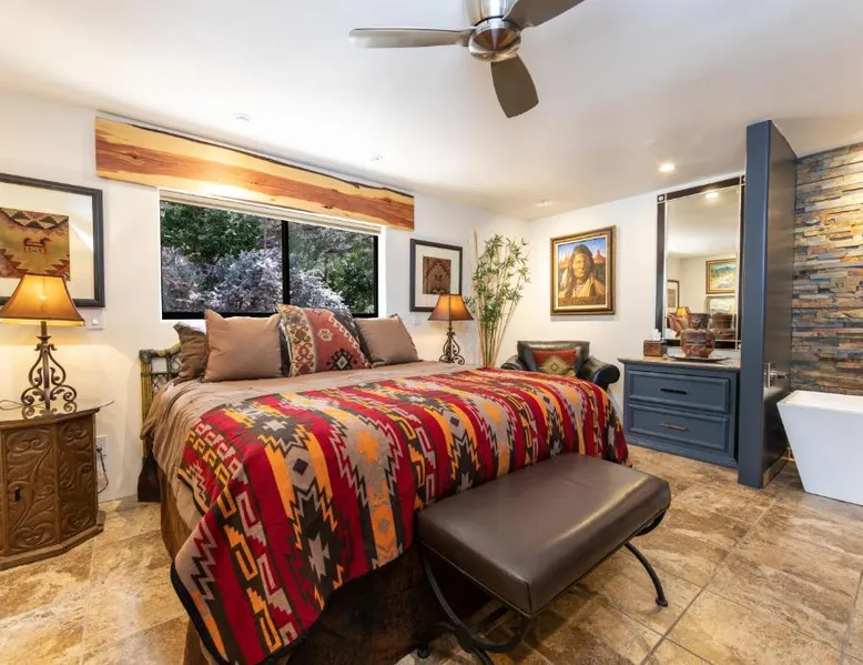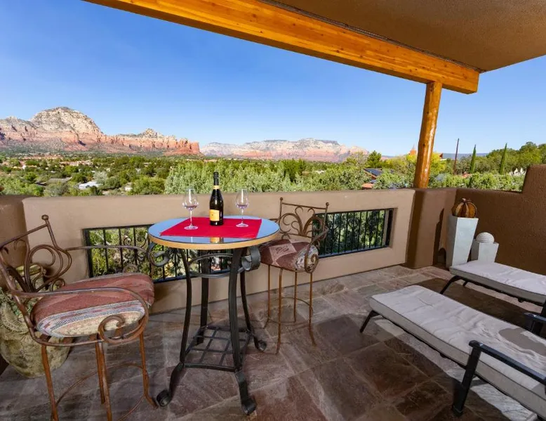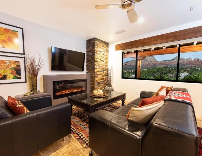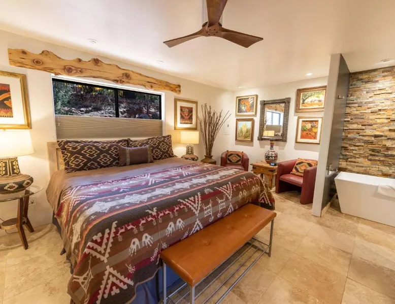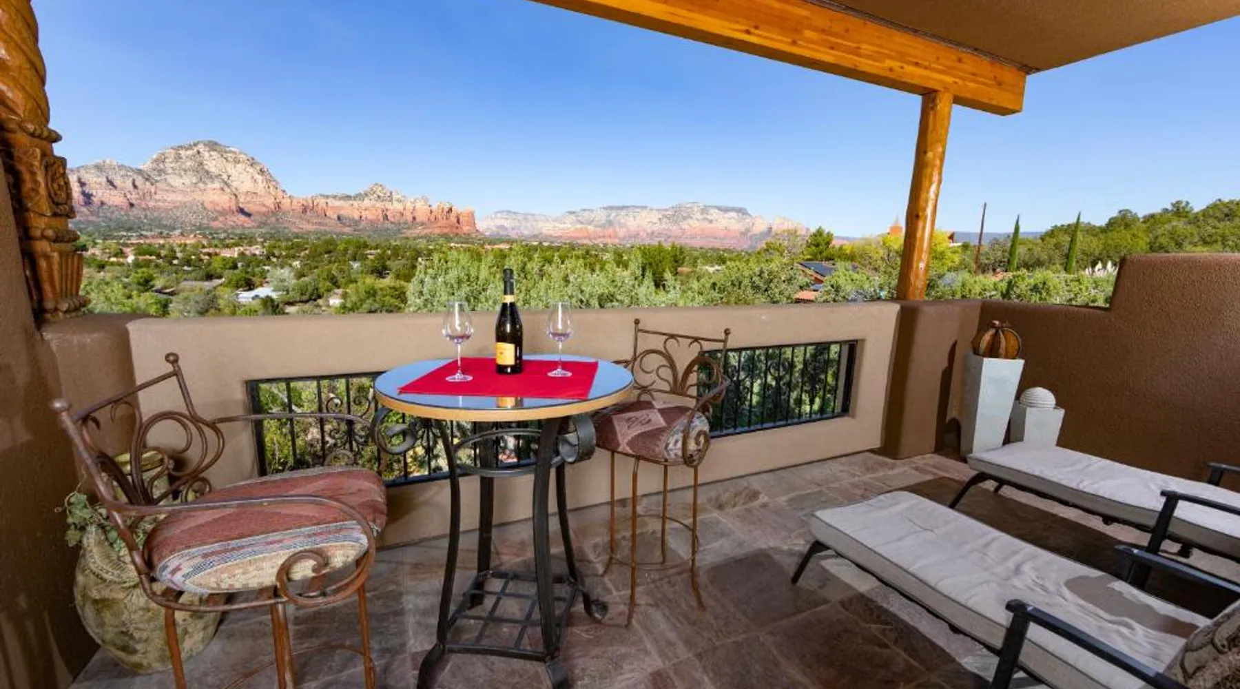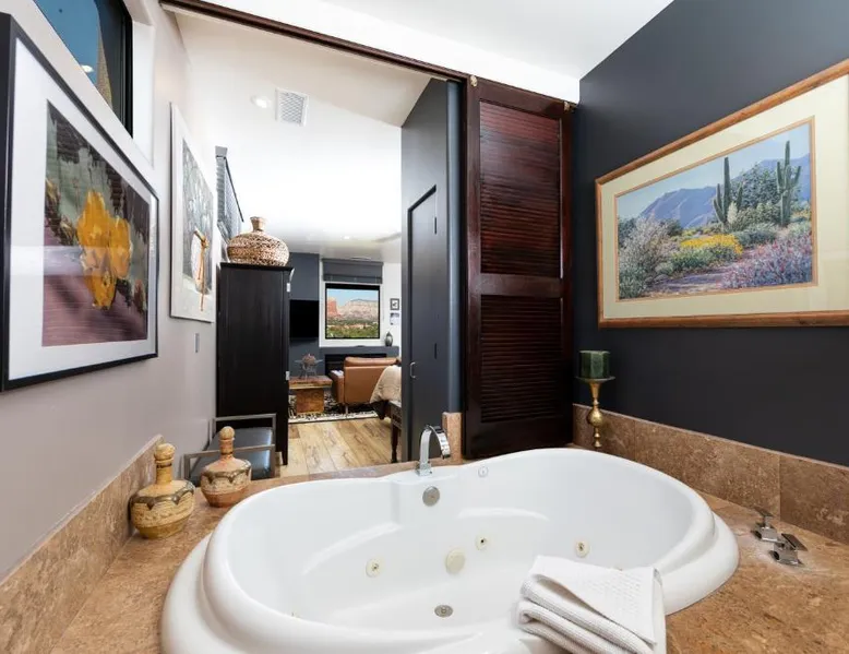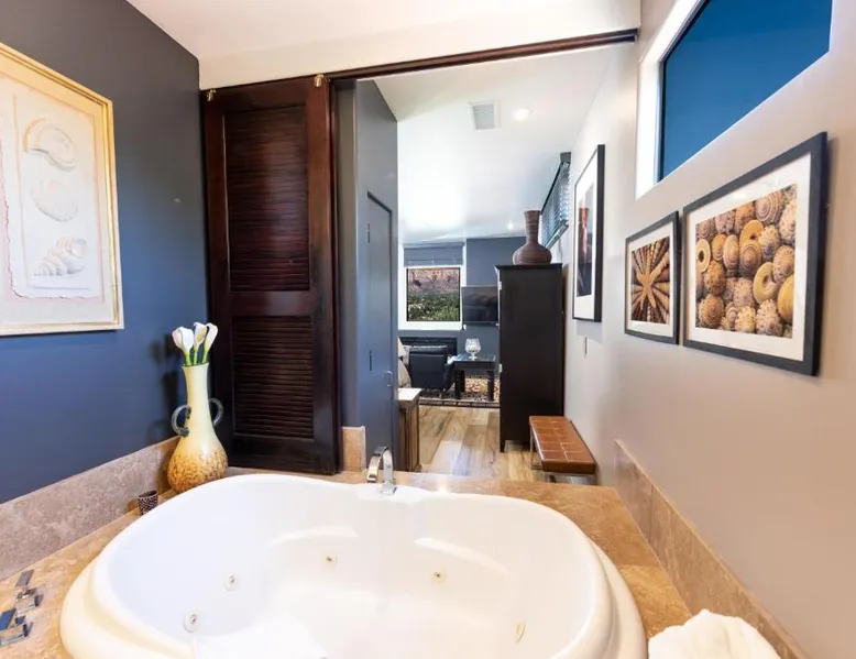 Located in Sedona, Arizona, this bed and breakfast features an outdoor pool and hot tub as well as an on-site tennis court. A full breakfast and free WiFi access are available. A fully equipped kitchenette and a flat-screen cable TV come standard in each room at A Sunset Chateau. Every private, private bathroom features a hairdryer, free toiletries and towels. You can enjoy a mountain view from select rooms. A garden, terrace, and waterfall with pond are available to guests at A Sunset Chateau. Hiking is possible in the nearby area. The property offers free parking. Red Rock Crossing is 5.5 miles away. Guests will be 7 minutes’ drive from the historic city of Tlaquepaque and 15 minutes’ drive from the Chapel of the Holy Cross. Also known as the Vista Montana, this suite features a fully equipped kitchenette, an electric fireplace and as soaking tub.