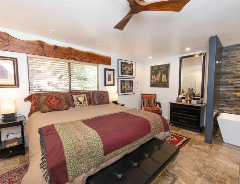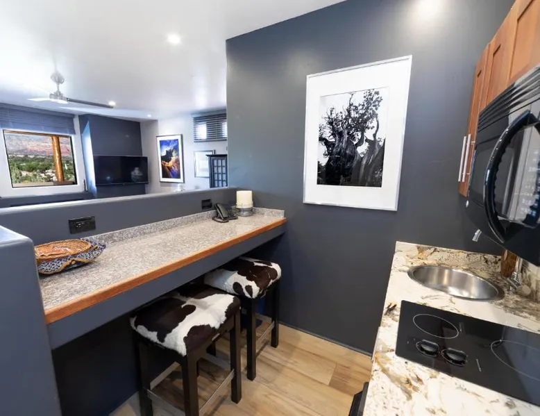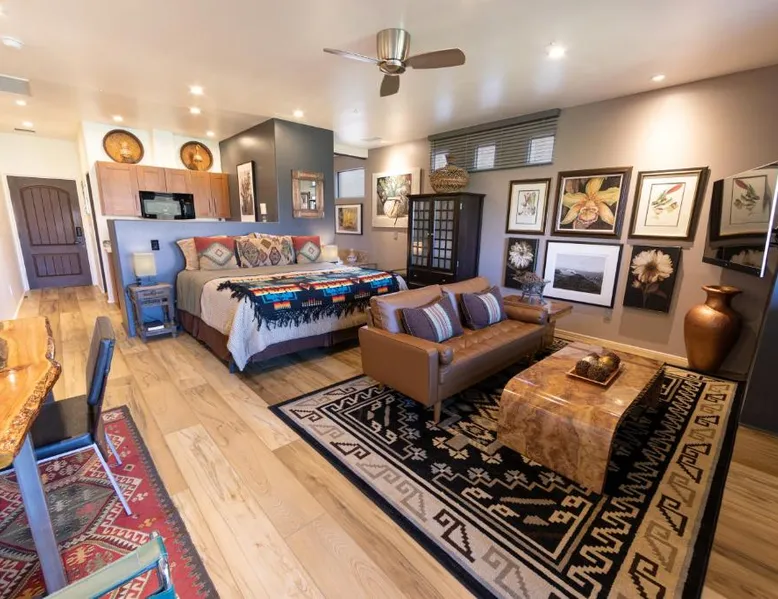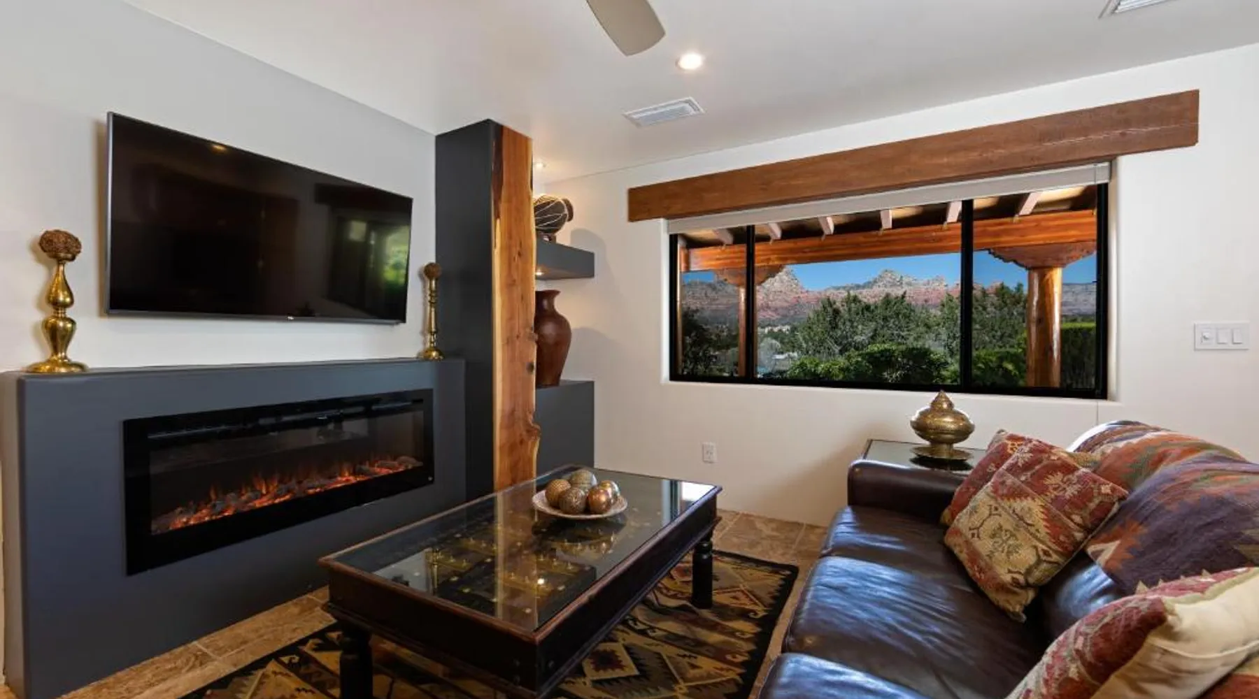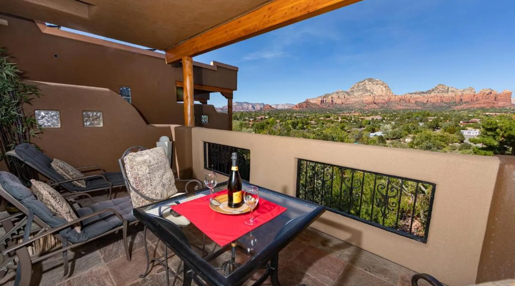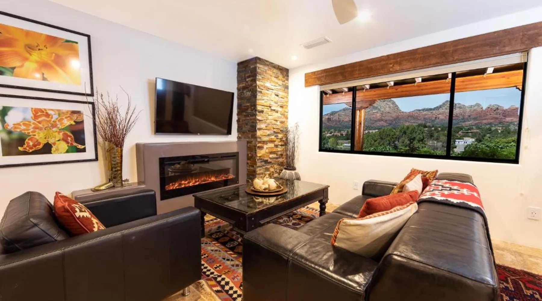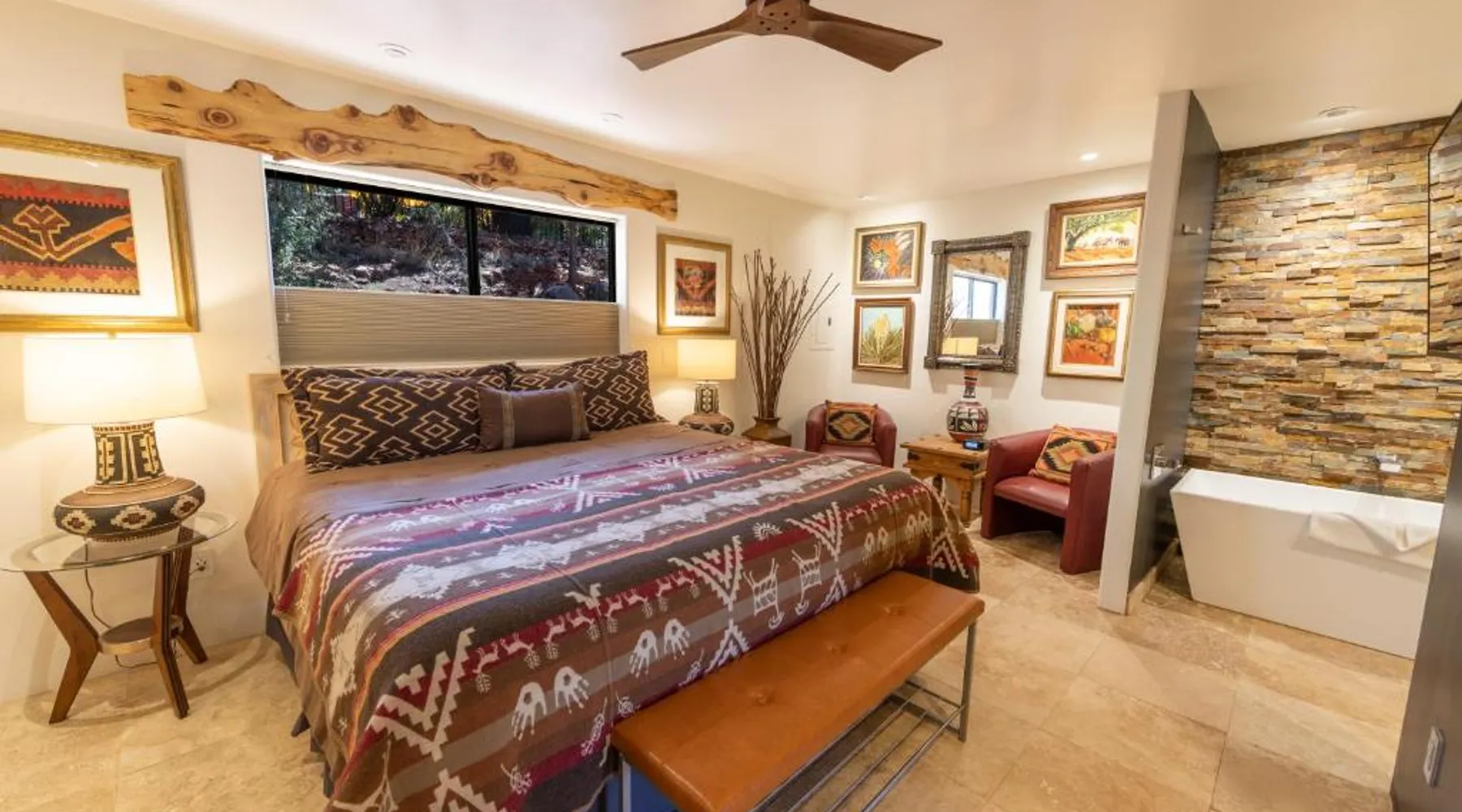 Located in Sedona, Arizona, this bed and breakfast features an outdoor pool and hot tub as well as an on-site tennis court. A full breakfast and free WiFi access are available. A fully equipped kitchenette and a flat-screen cable TV come standard in each room at A Sunset Chateau. Every private, private bathroom features a hairdryer, free toiletries and towels. You can enjoy a mountain view from select rooms. A garden, terrace, and waterfall with pond are available to guests at A Sunset Chateau. Hiking is possible in the nearby area. The property offers free parking. Red Rock Crossing is 5.5 miles away. Guests will be 7 minutes’ drive from the historic city of Tlaquepaque and 15 minutes’ drive from the Chapel of the Holy Cross. Also known as the Vista Montana, this suite features a fully equipped kitchenette, an electric fireplace and as soaking tub.